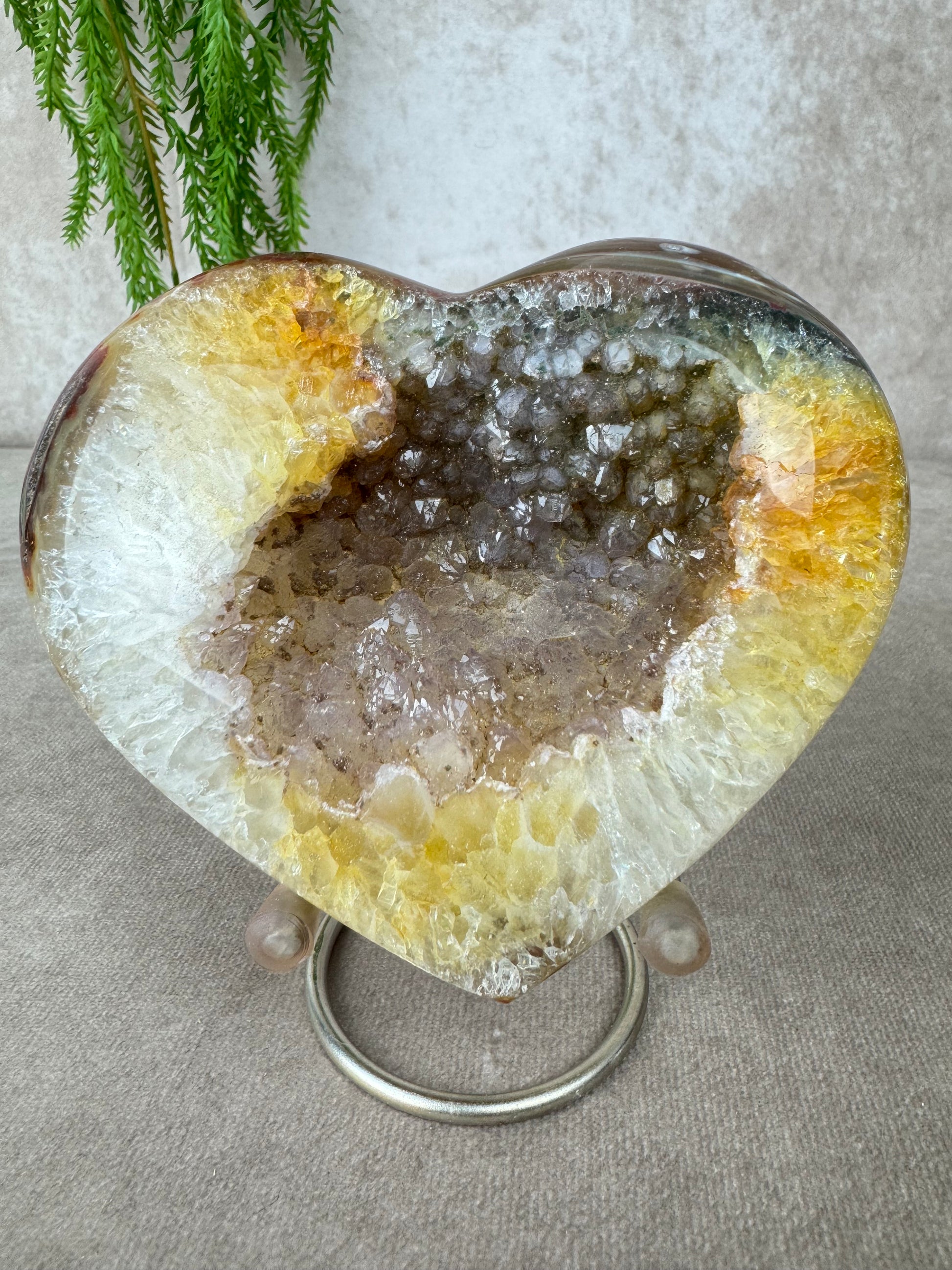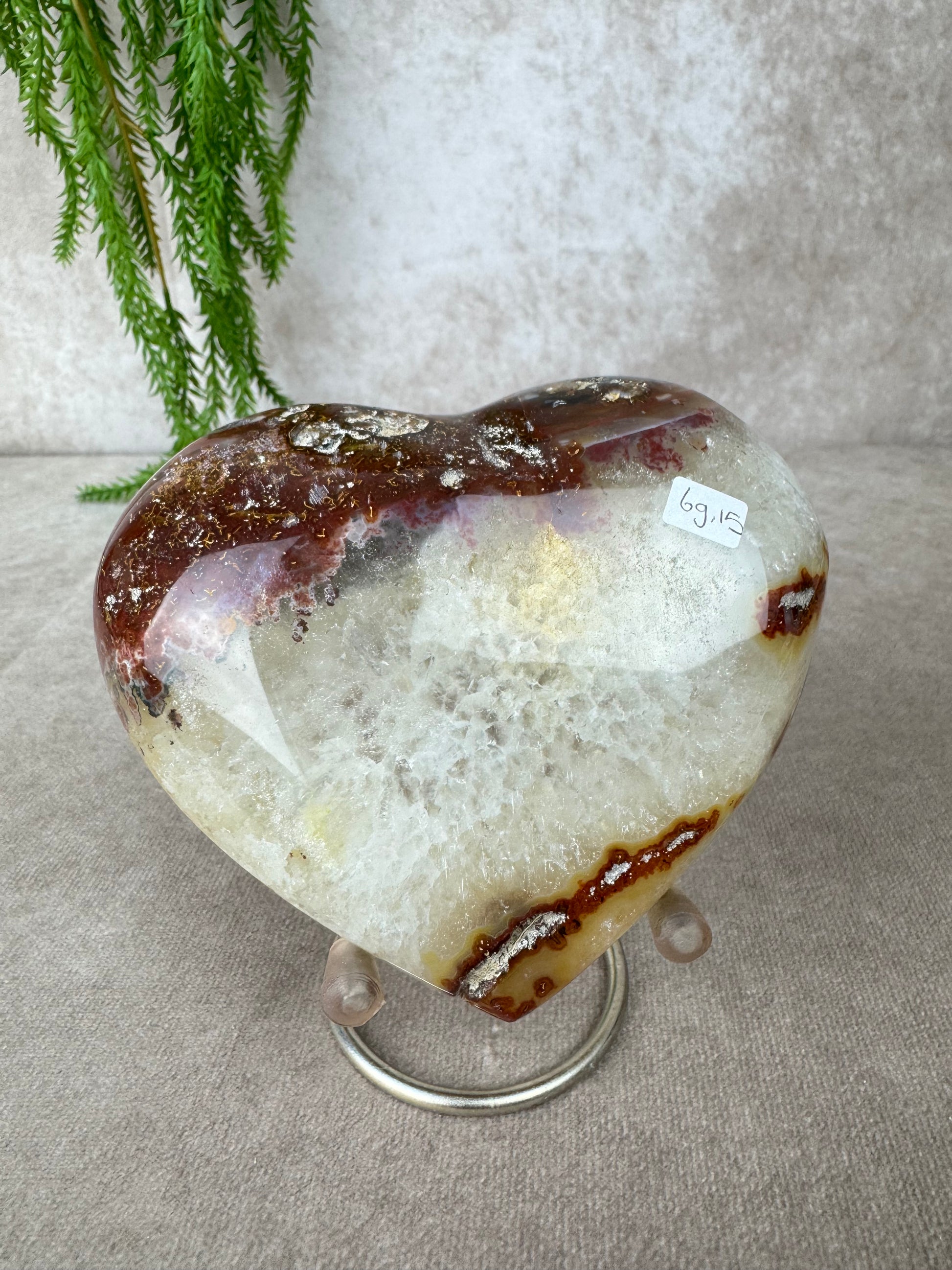 Dit indrukwekkende agaat hart van 10,5 x 12 cm en 628 gram is een echt krachtstuk zowel visueel als energetisch. De natuurlijke gelaagde patronen en aardse tinten maken dit hart uniek, met een harmonieuze balans tussen zachtheid en stevigheid.