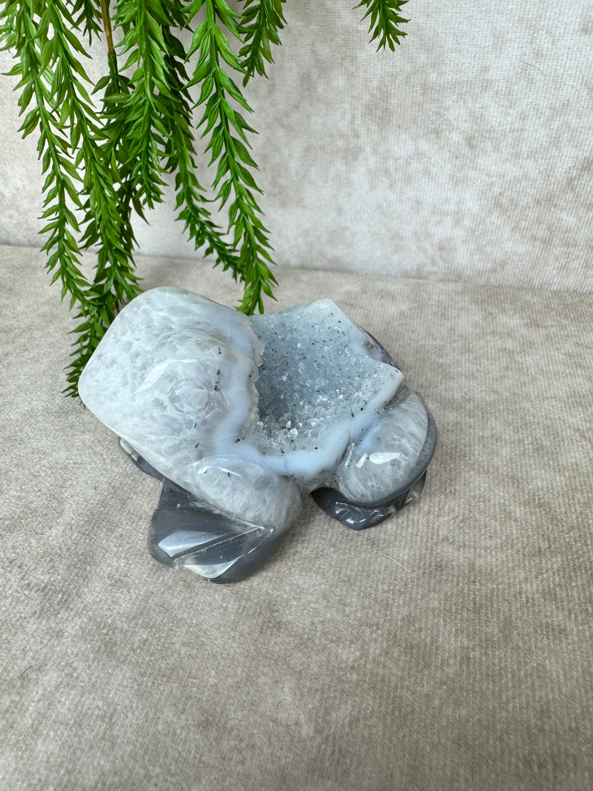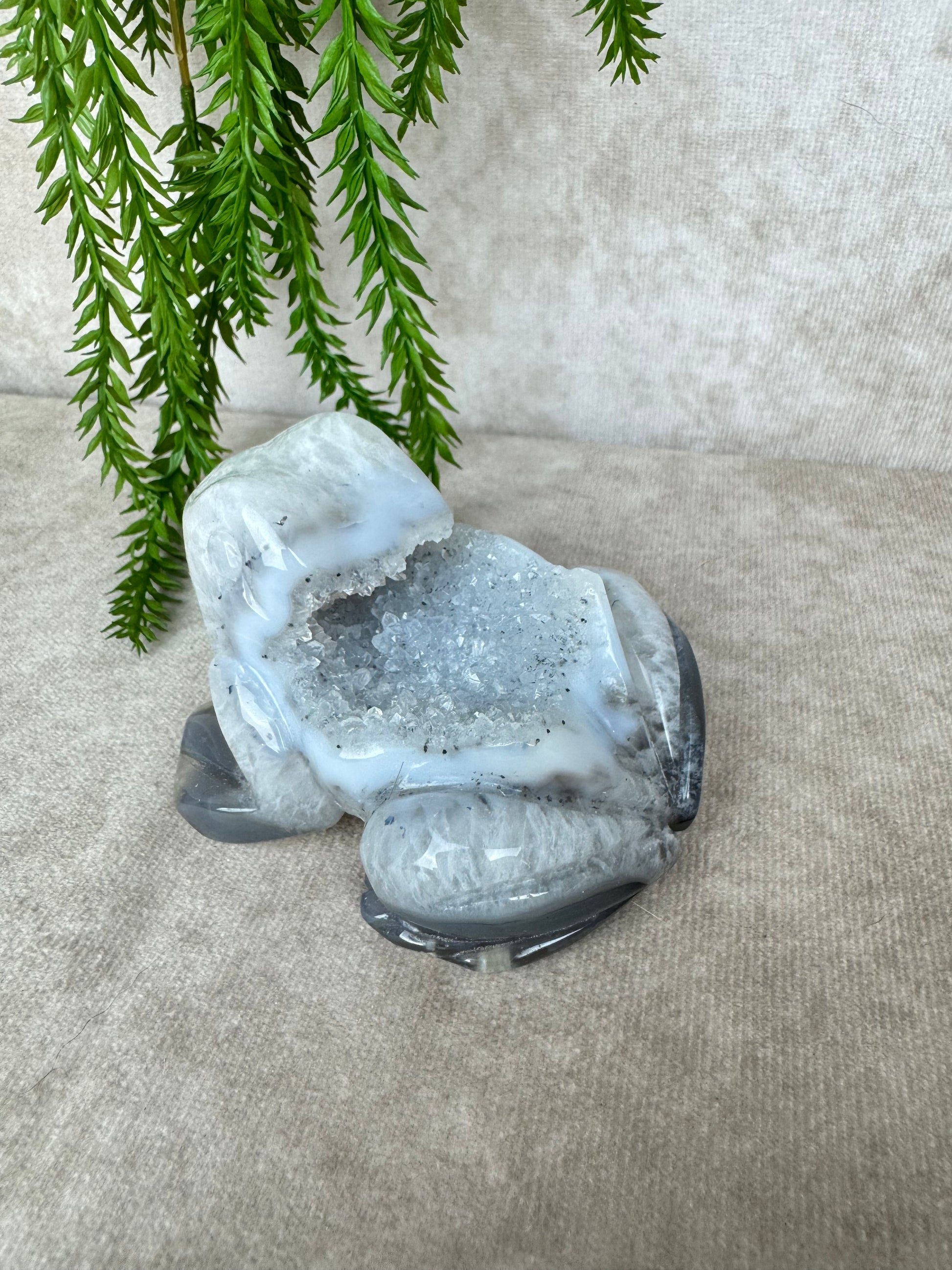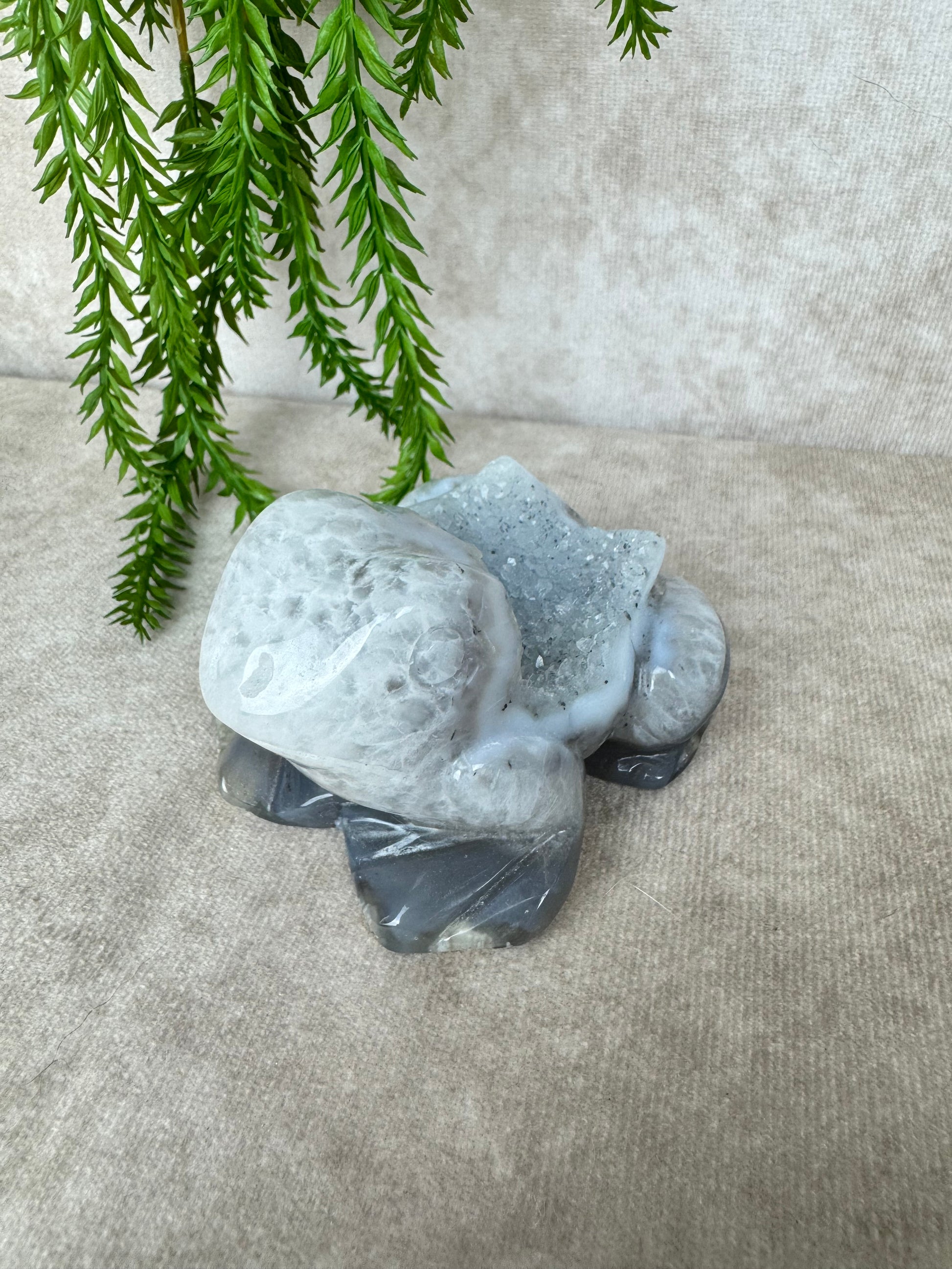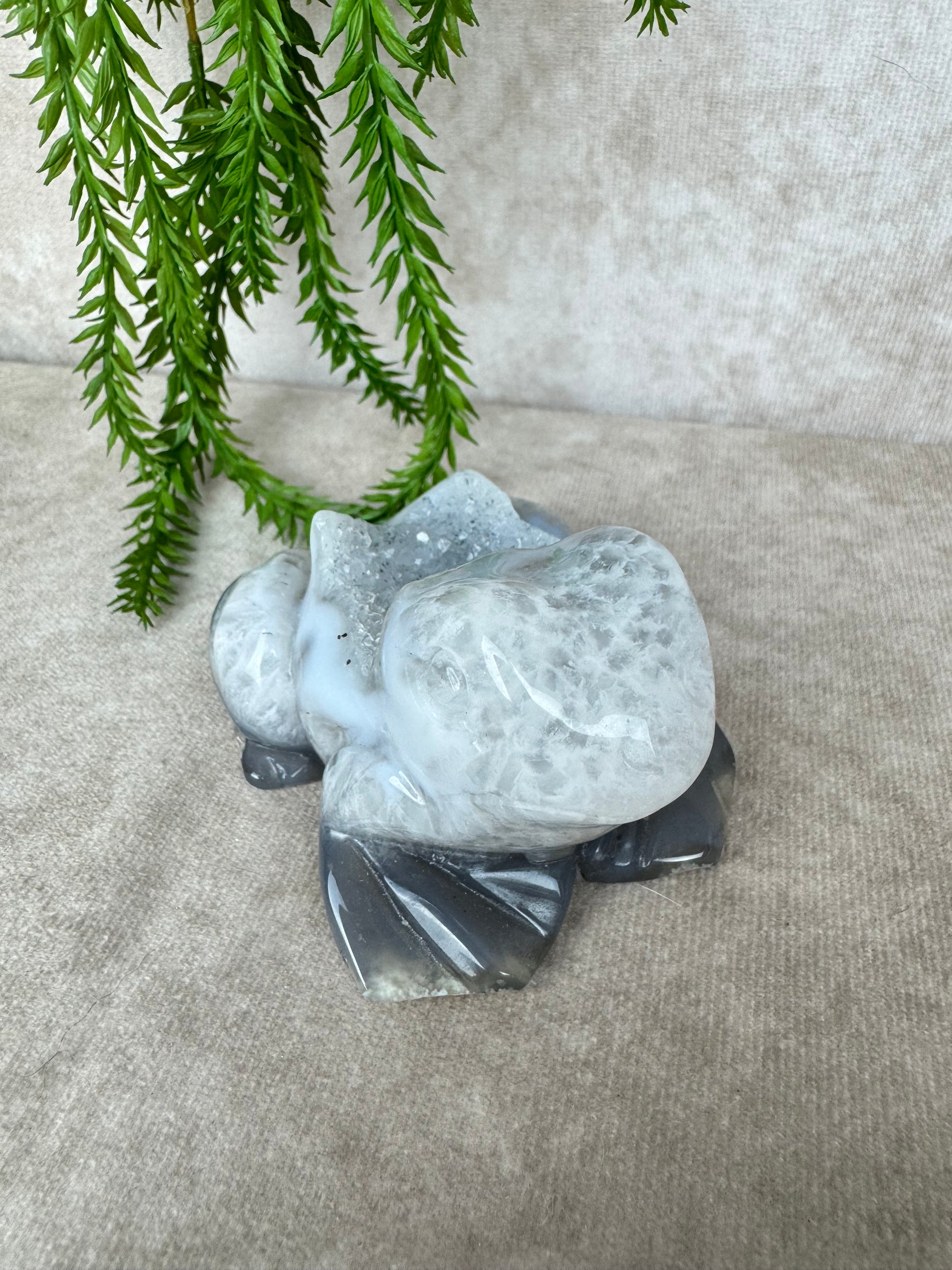 De kikker is al eeuwenlang een symbool voor verandering en aanpassing, eigenschappen die goed aansluiten bij de werking van agaat. Deze edelsteen staat bekend om zijn kalmerende en stabiliserende invloed. Hij helpt om rust te vinden in drukke tijden, geeft ondersteuning bij emotionele spanning en bevordert een gevoel van balans.