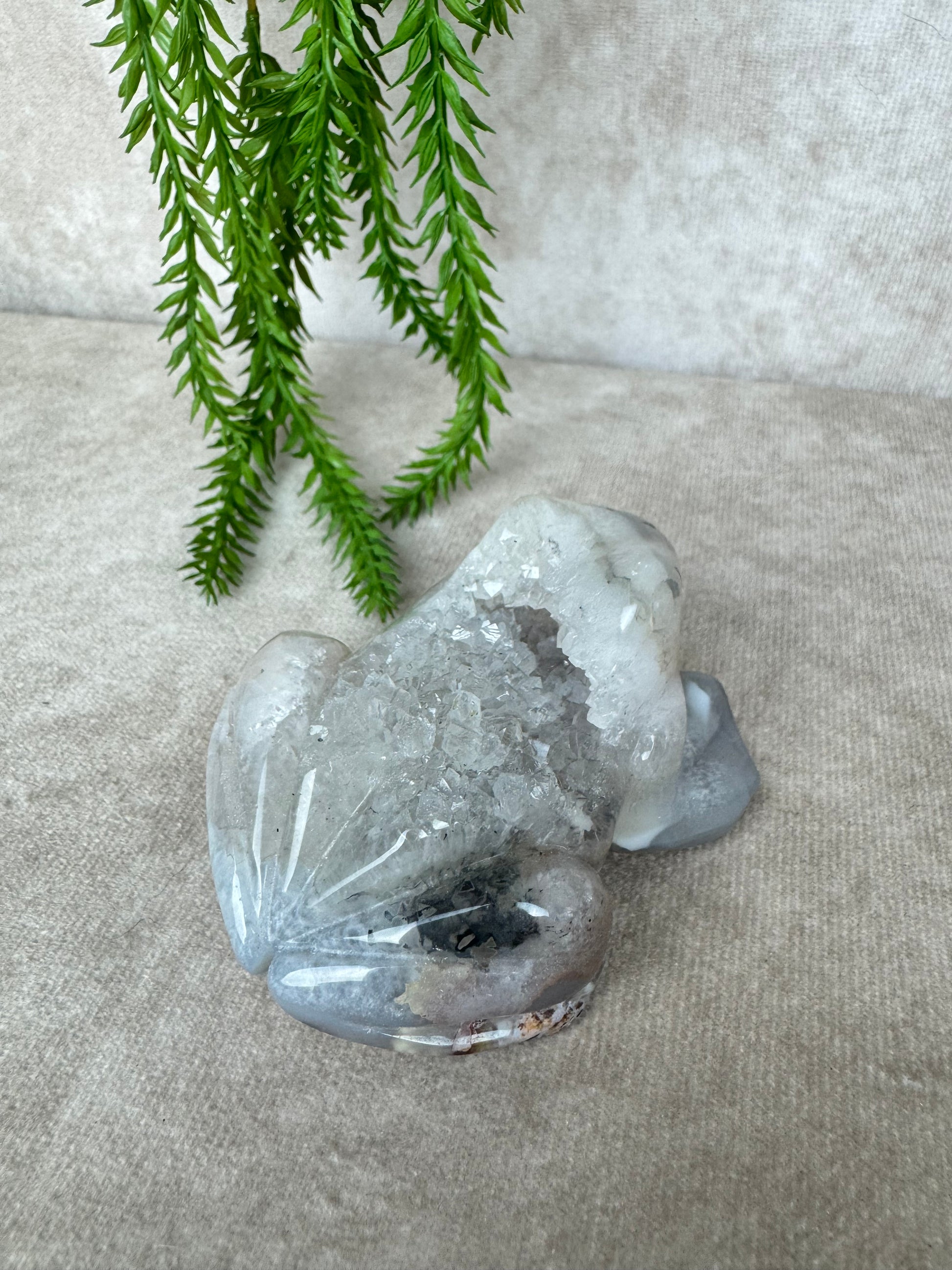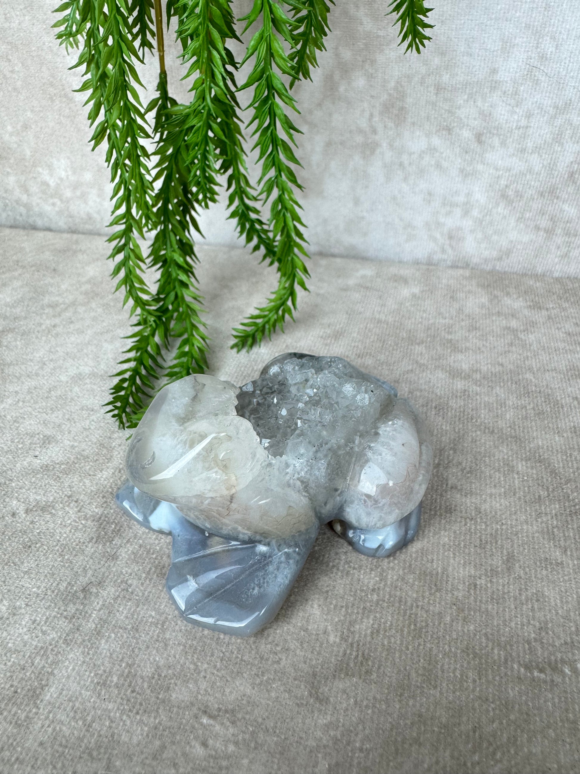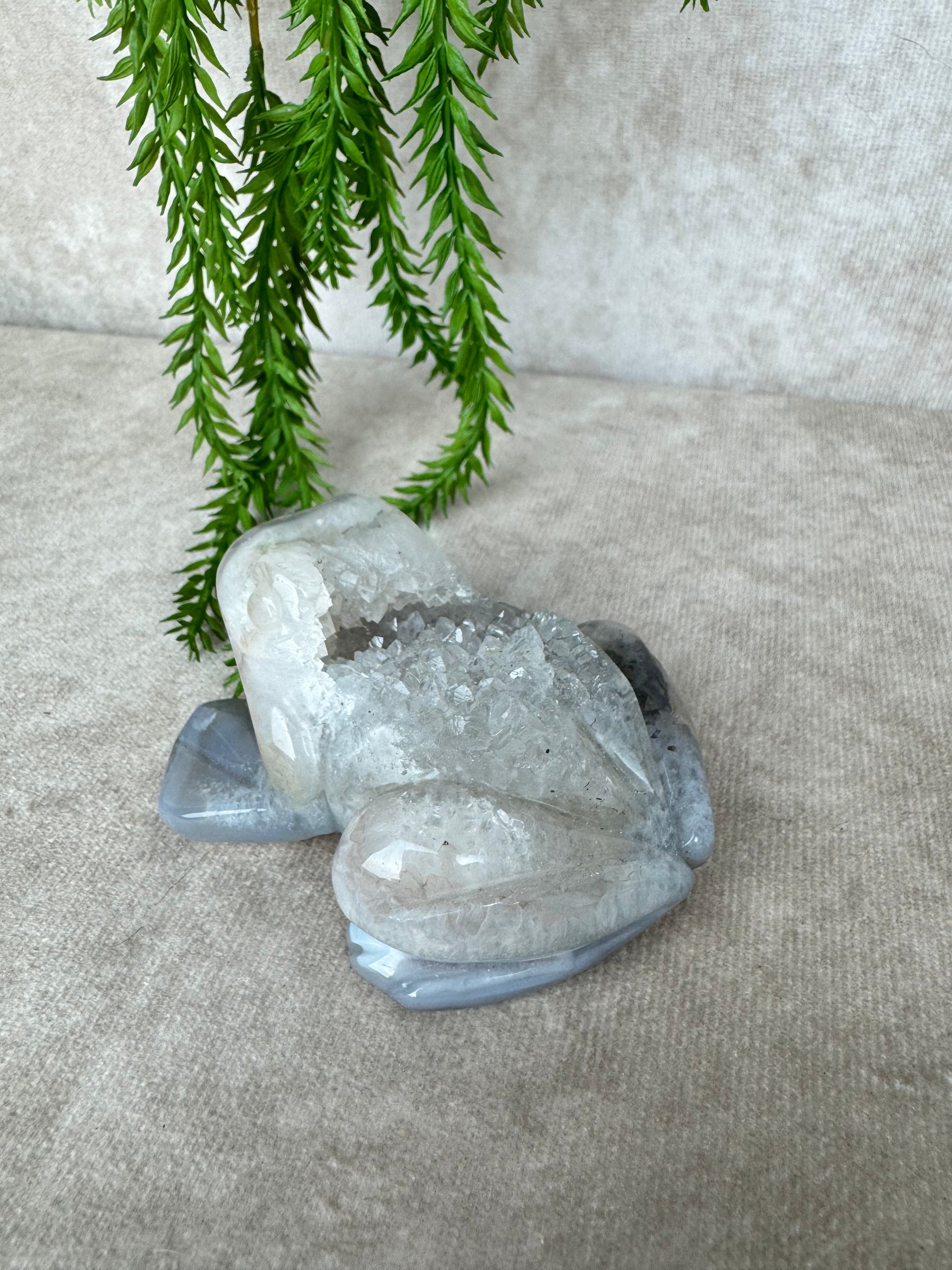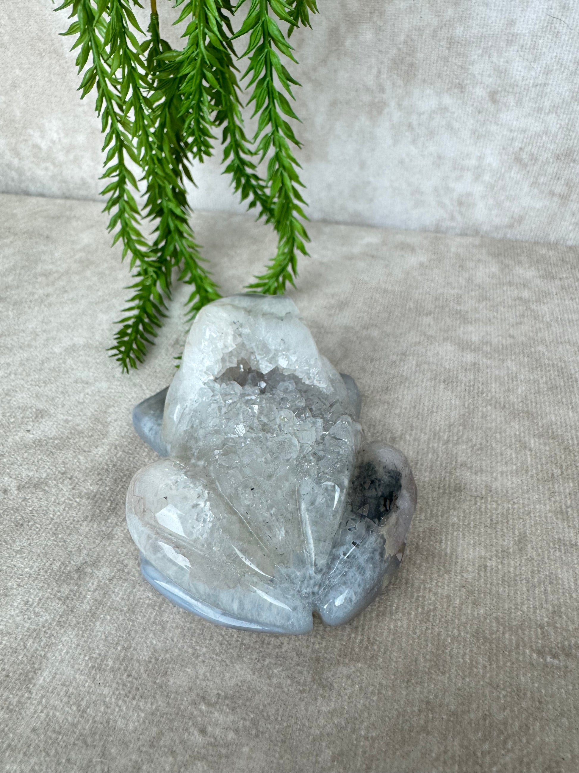 De kikker is al eeuwenlang een symbool voor verandering en aanpassing, eigenschappen die goed aansluiten bij de werking van agaat. Deze edelsteen staat bekend om zijn kalmerende en stabiliserende invloed. Hij helpt om rust te vinden in drukke tijden, geeft ondersteuning bij emotionele spanning en bevordert een gevoel van balans.