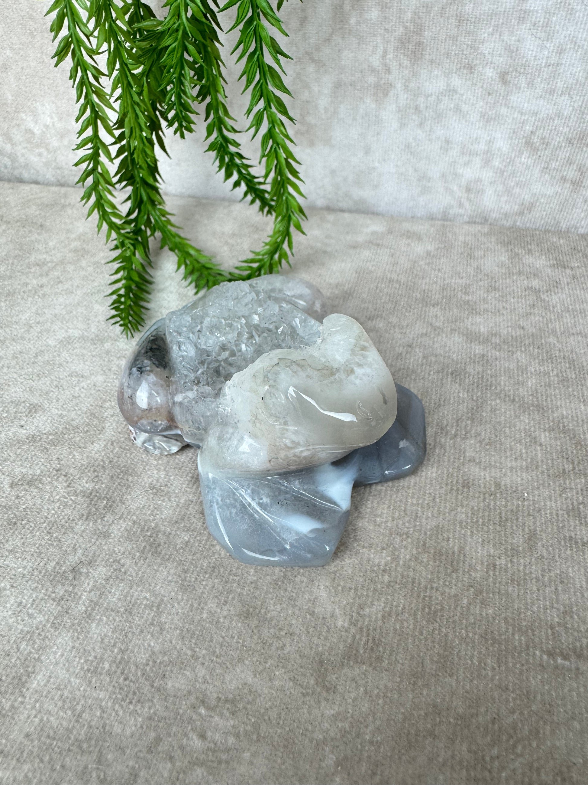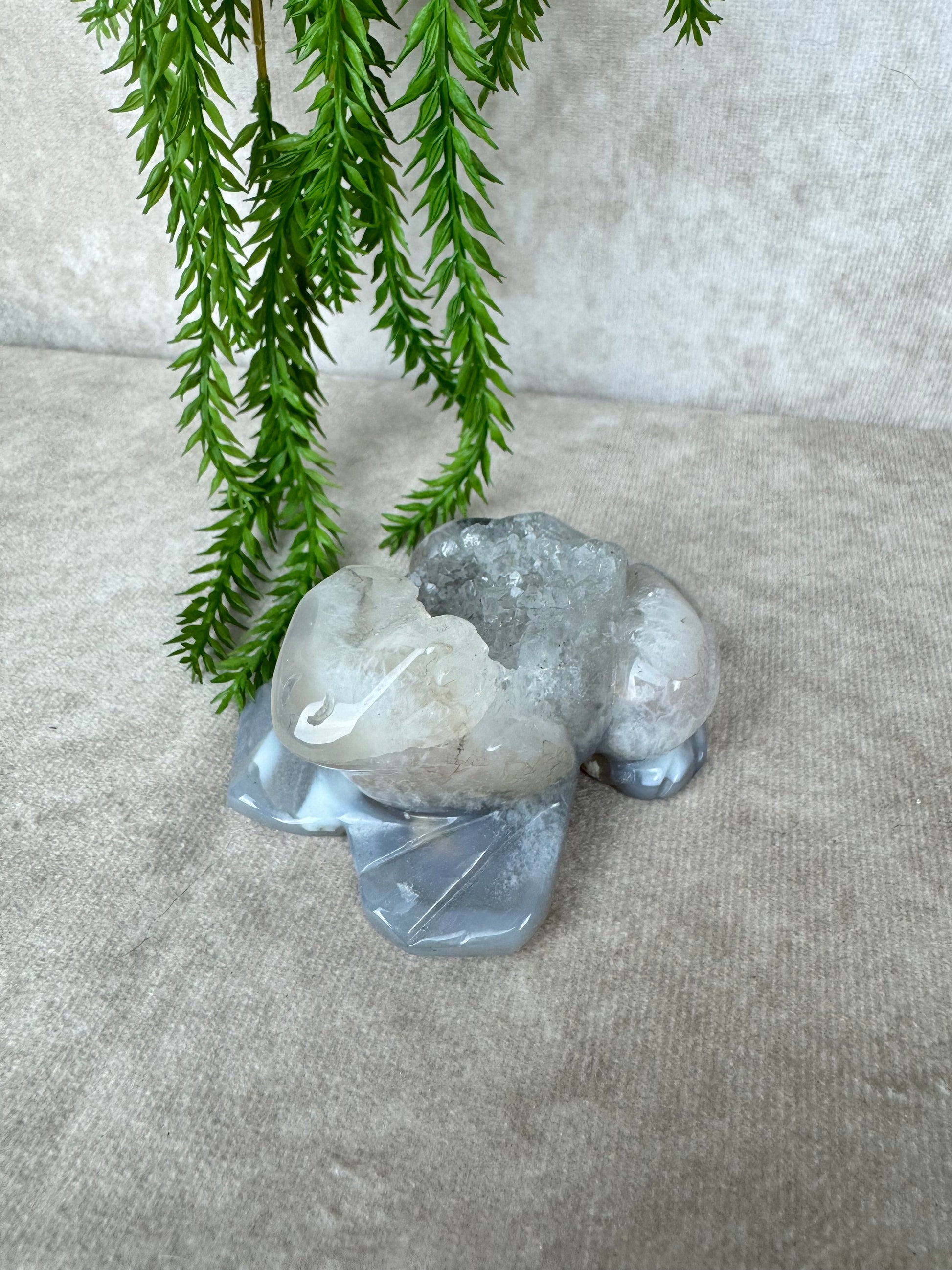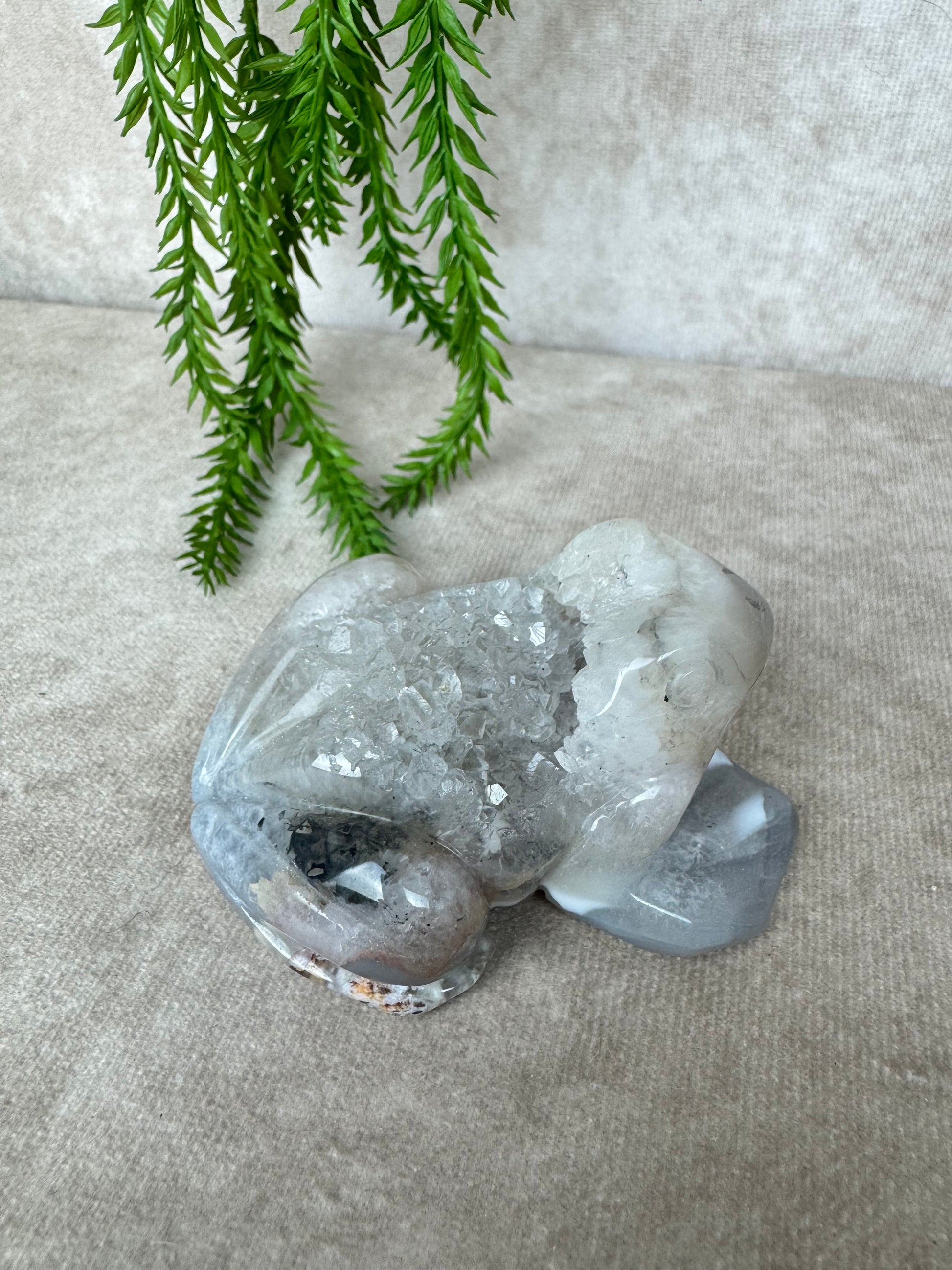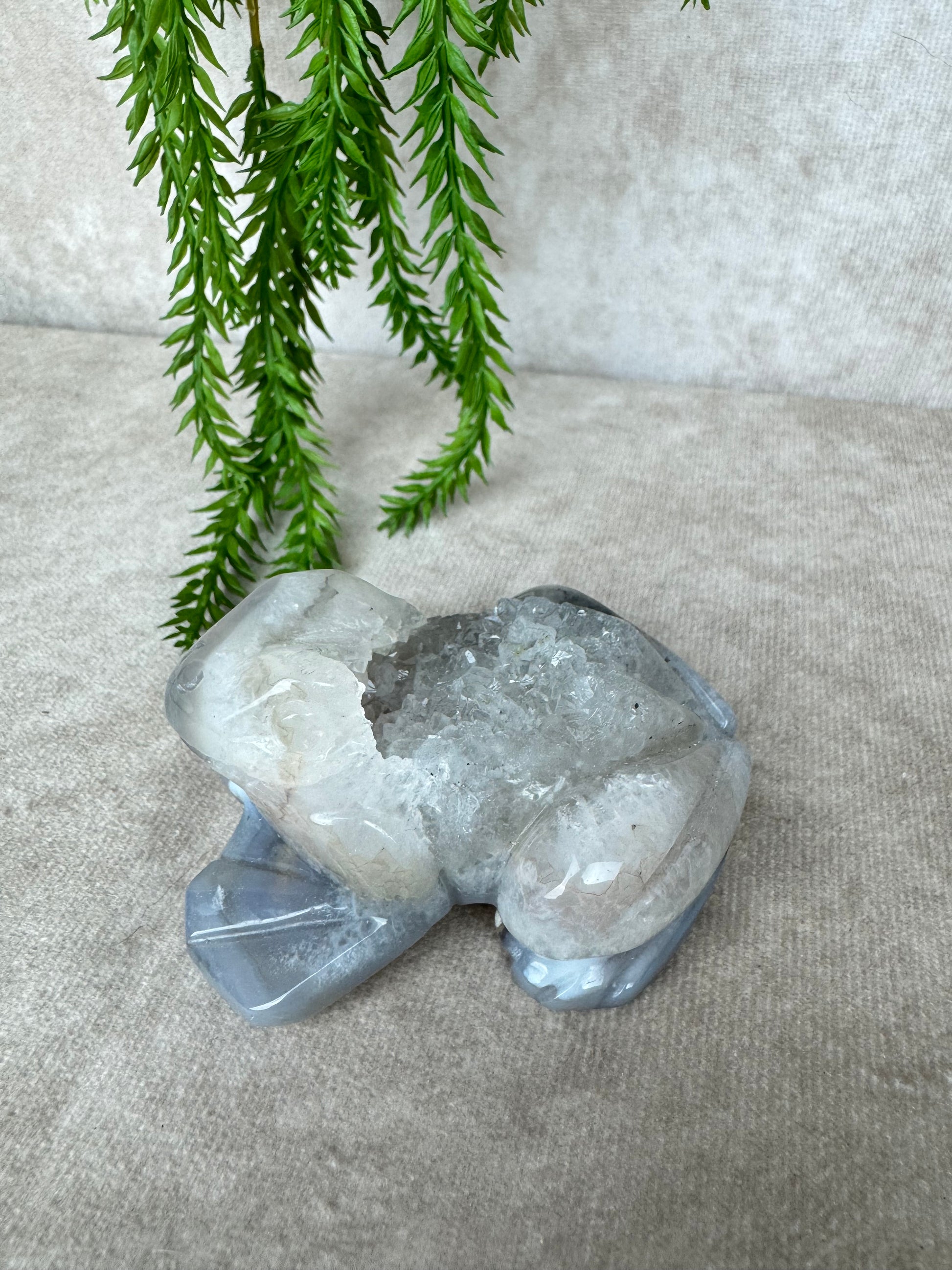 De kikker is al eeuwenlang een symbool voor verandering en aanpassing, eigenschappen die goed aansluiten bij de werking van agaat. Deze edelsteen staat bekend om zijn kalmerende en stabiliserende invloed. Hij helpt om rust te vinden in drukke tijden, geeft ondersteuning bij emotionele spanning en bevordert een gevoel van balans.
