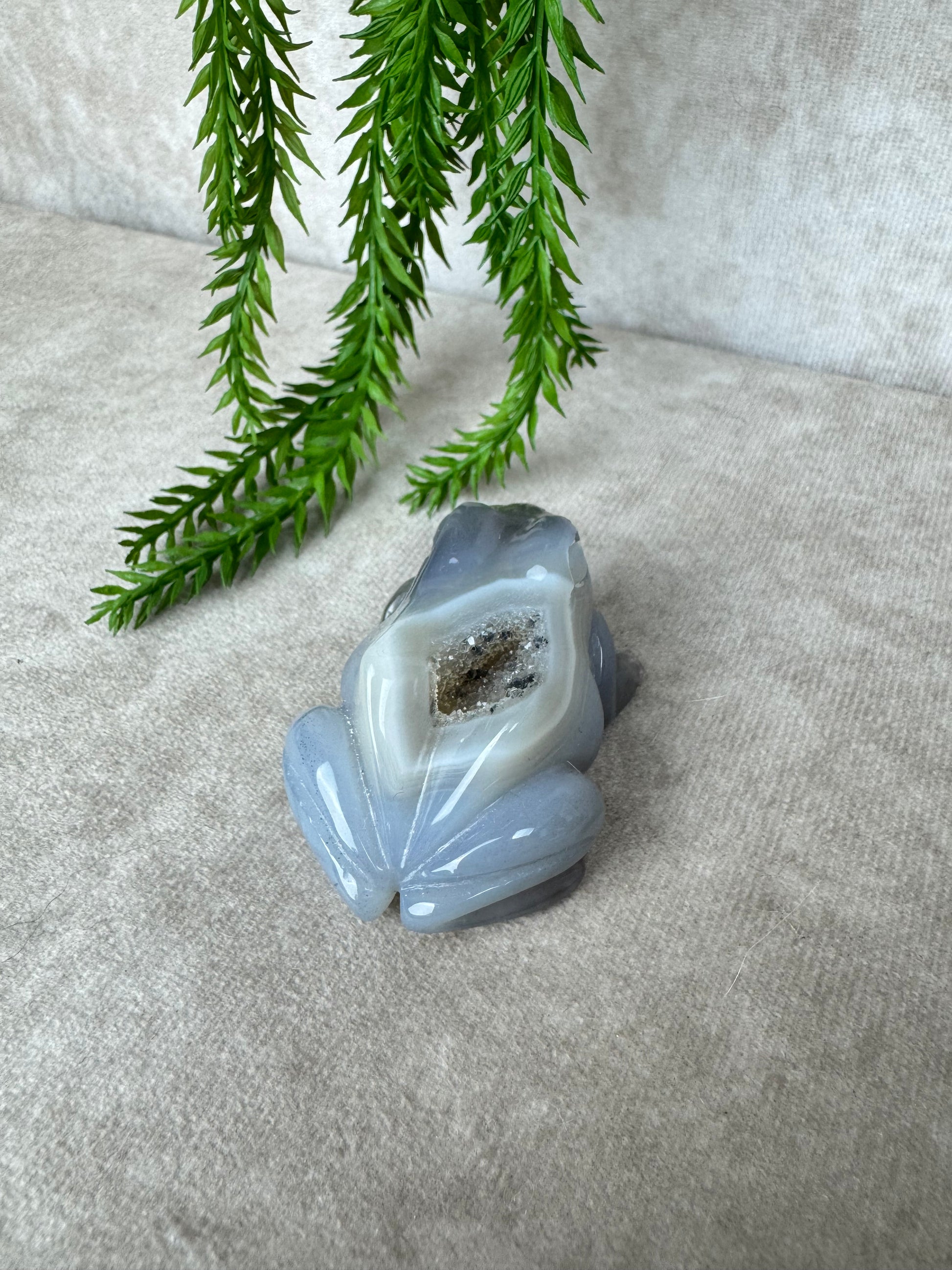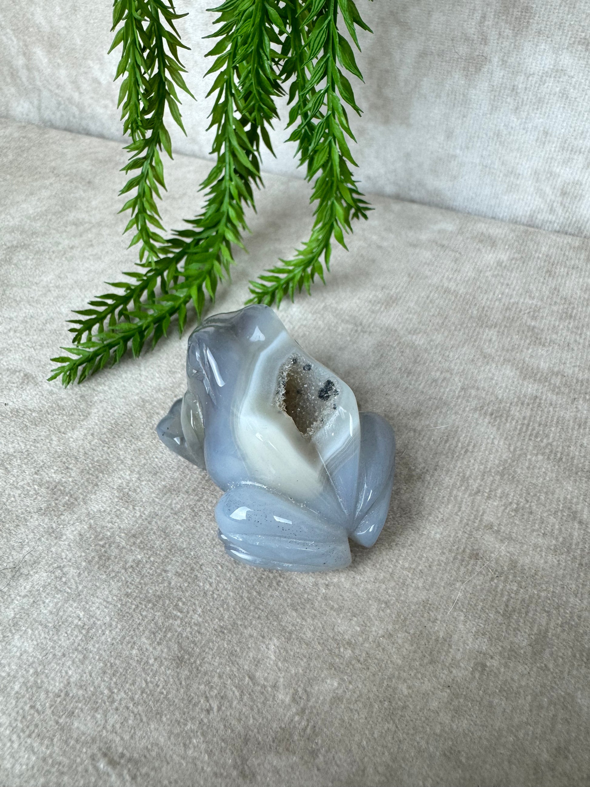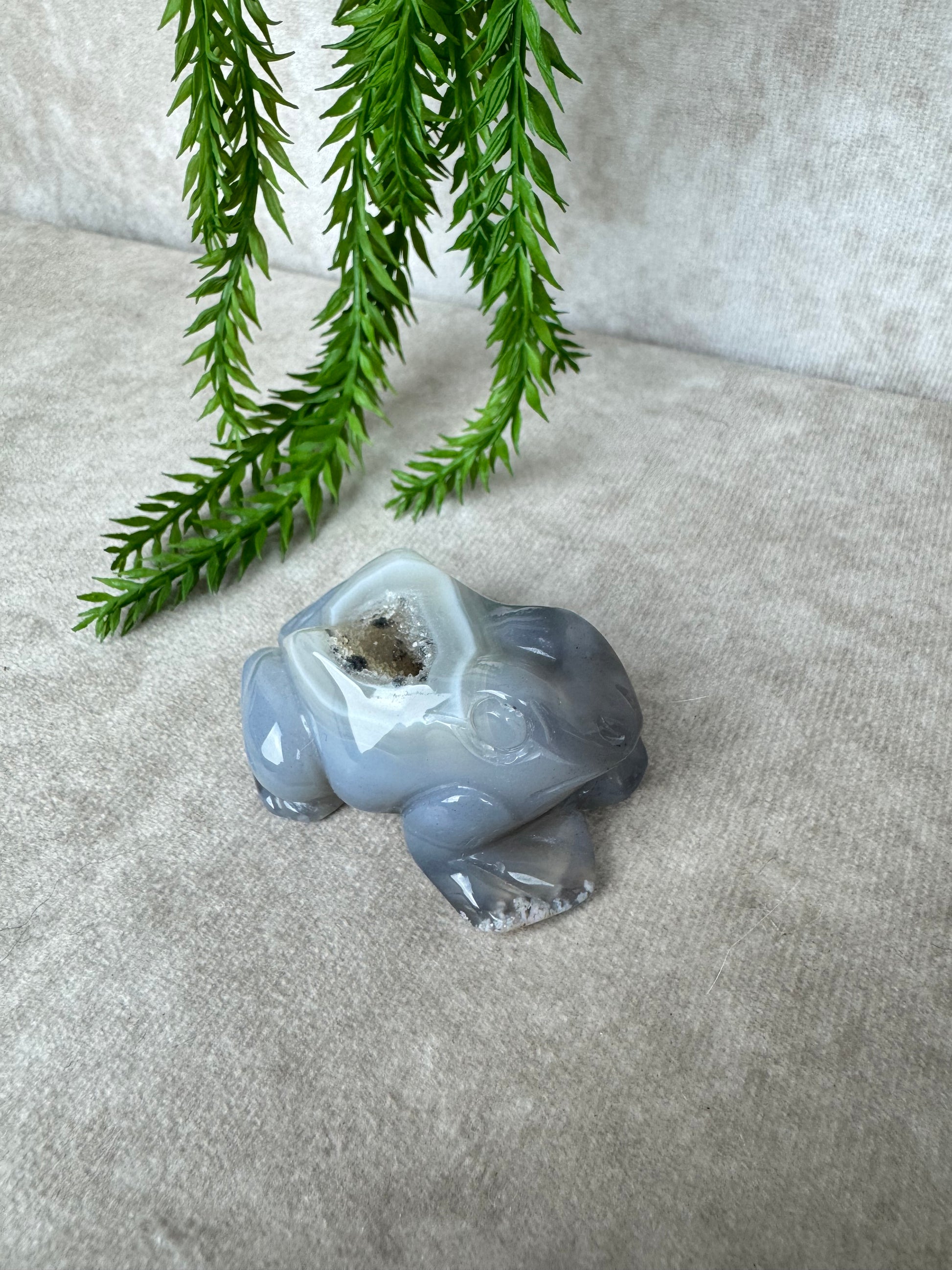 De kikker is al eeuwenlang een symbool voor verandering en aanpassing, eigenschappen die goed aansluiten bij de werking van agaat. Deze edelsteen staat bekend om zijn kalmerende en stabiliserende invloed. Hij helpt om rust te vinden in drukke tijden, geeft ondersteuning bij emotionele spanning en bevordert een gevoel van balans.