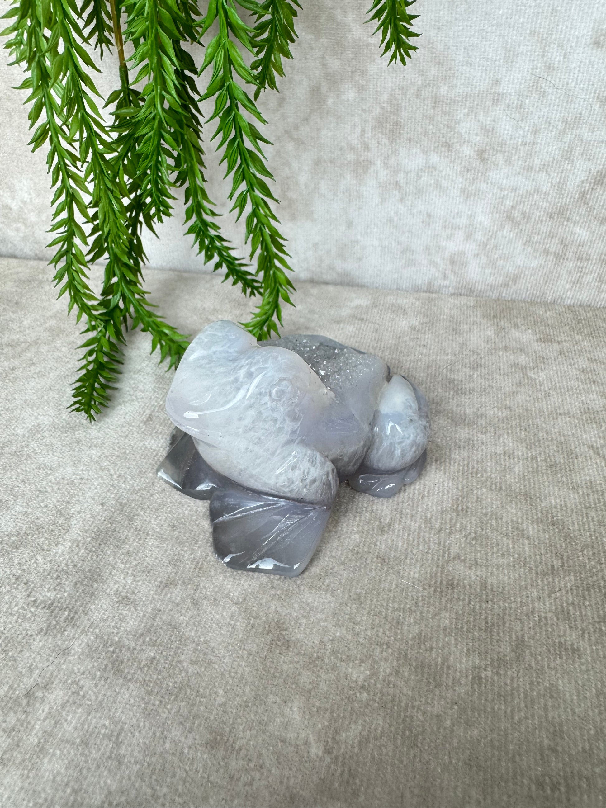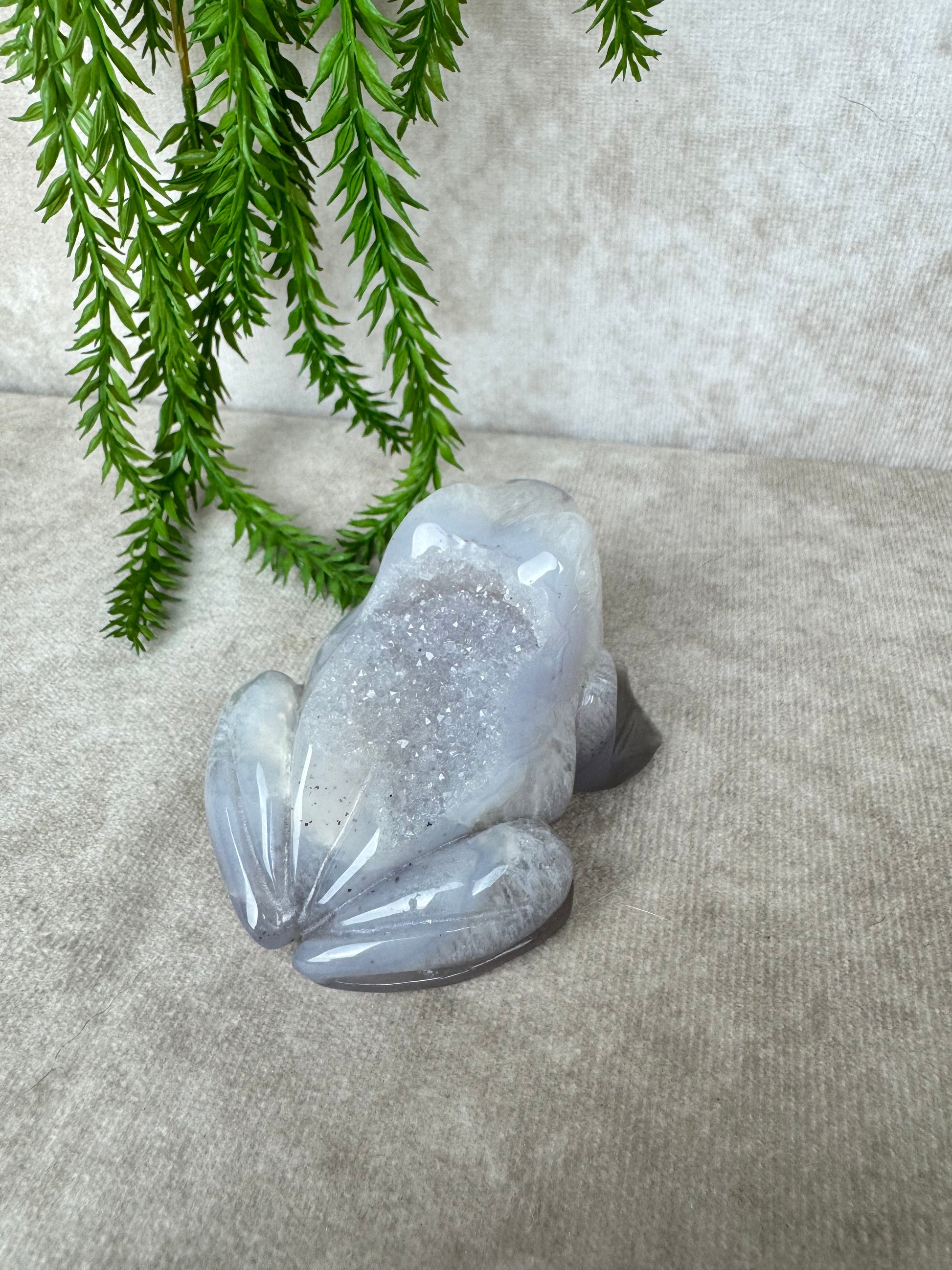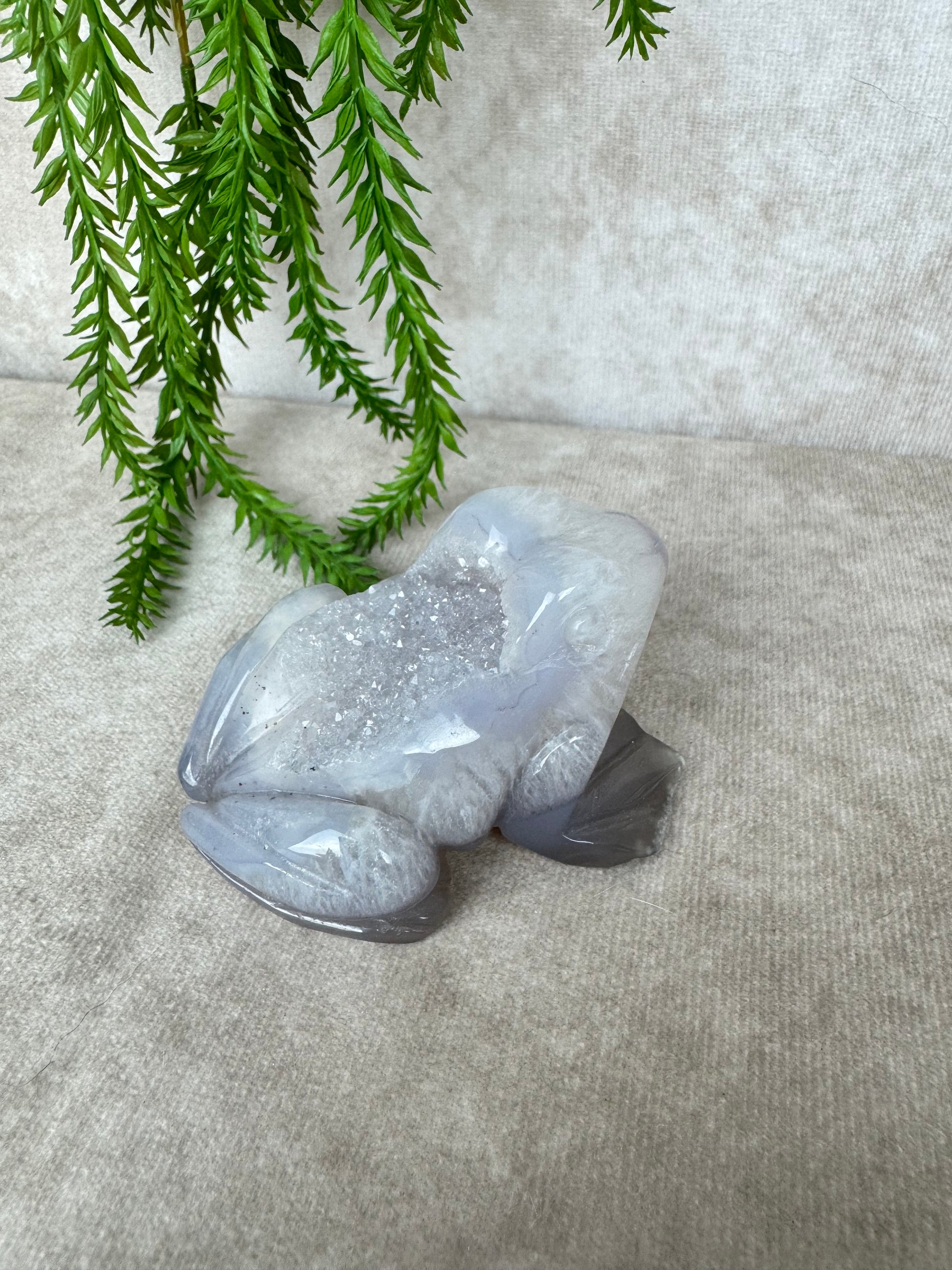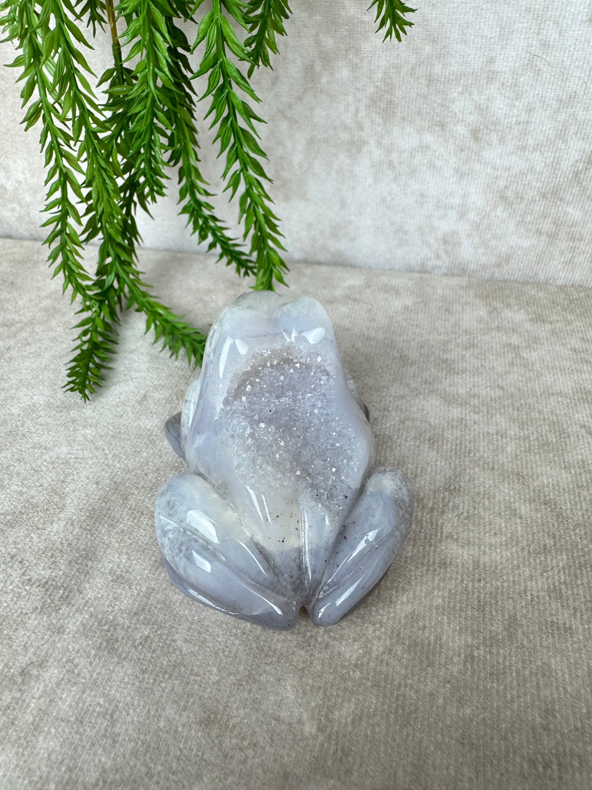 De kikker is al eeuwenlang een symbool voor verandering en aanpassing, eigenschappen die goed aansluiten bij de werking van agaat. Deze edelsteen staat bekend om zijn kalmerende en stabiliserende invloed. Hij helpt om rust te vinden in drukke tijden, geeft ondersteuning bij emotionele spanning en bevordert een gevoel van balans.