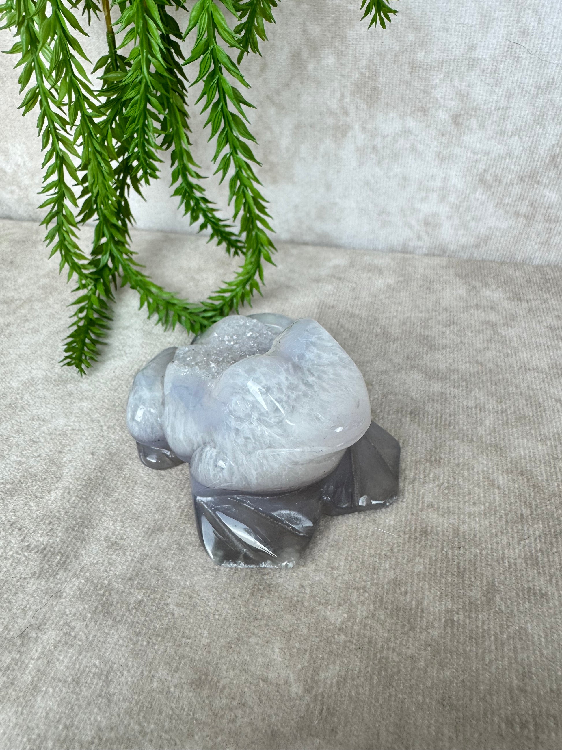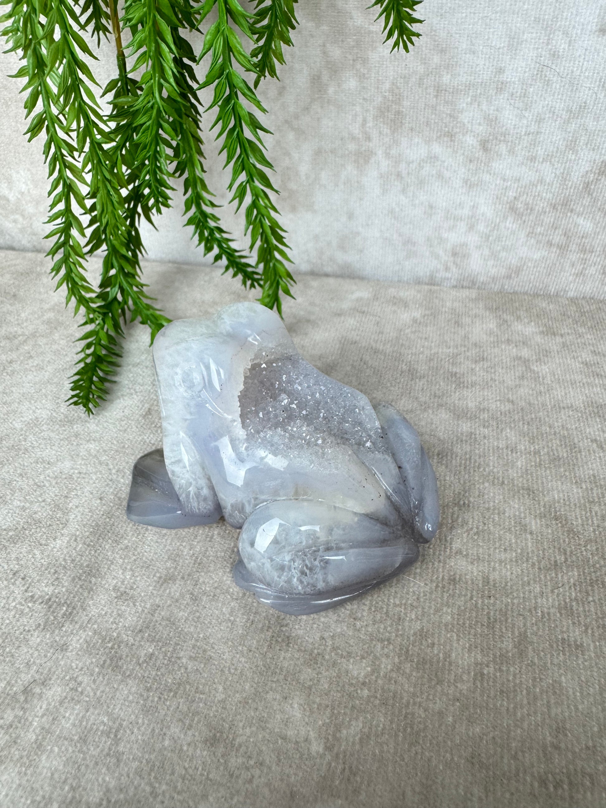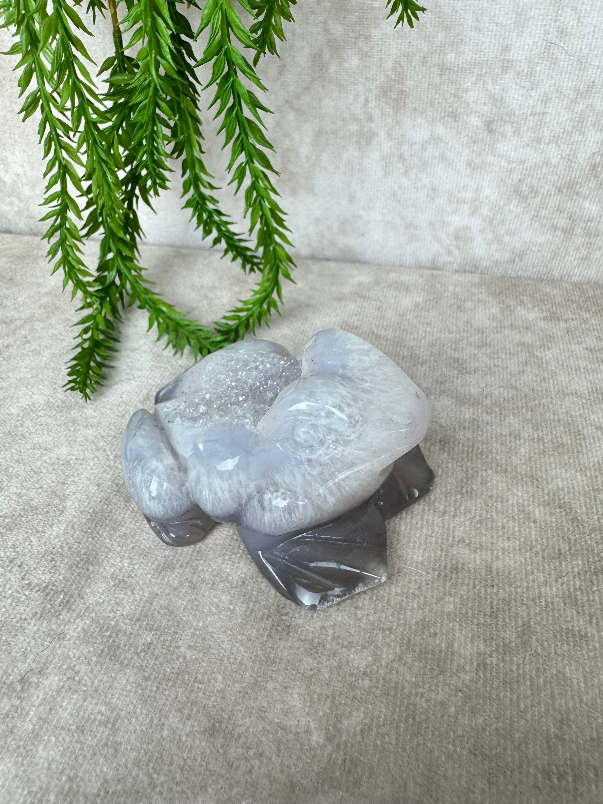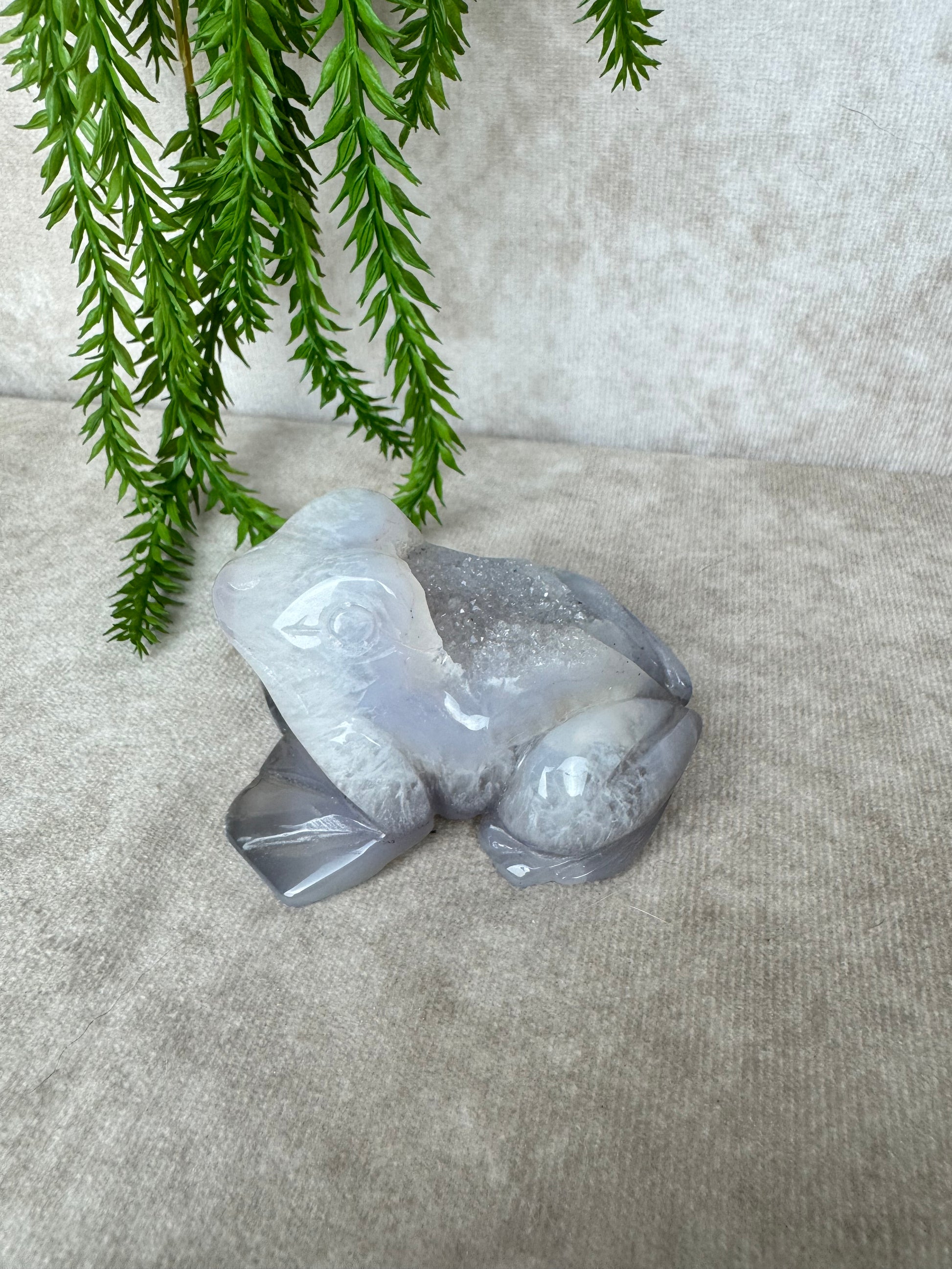 De kikker is al eeuwenlang een symbool voor verandering en aanpassing, eigenschappen die goed aansluiten bij de werking van agaat. Deze edelsteen staat bekend om zijn kalmerende en stabiliserende invloed. Hij helpt om rust te vinden in drukke tijden, geeft ondersteuning bij emotionele spanning en bevordert een gevoel van balans.
