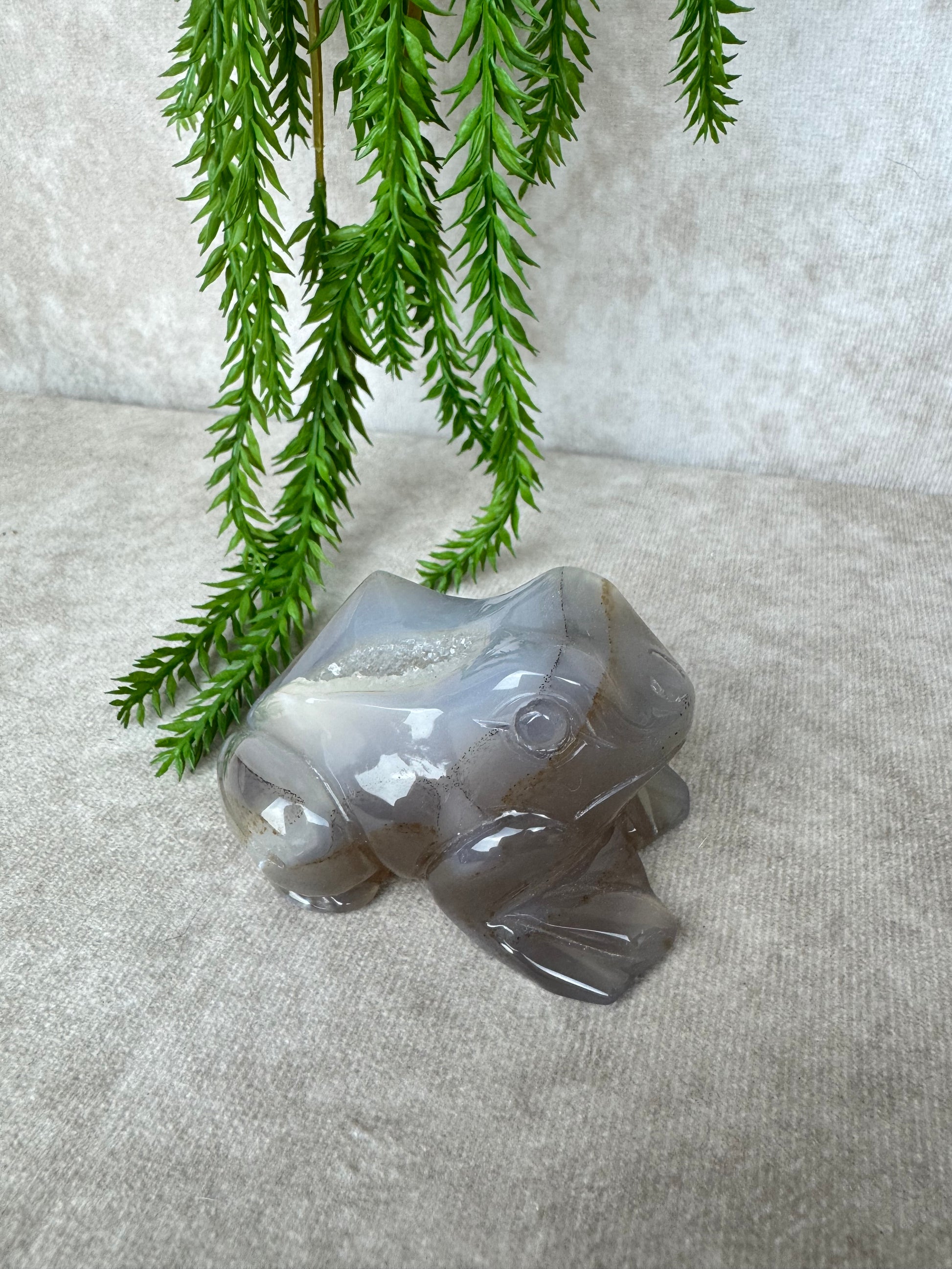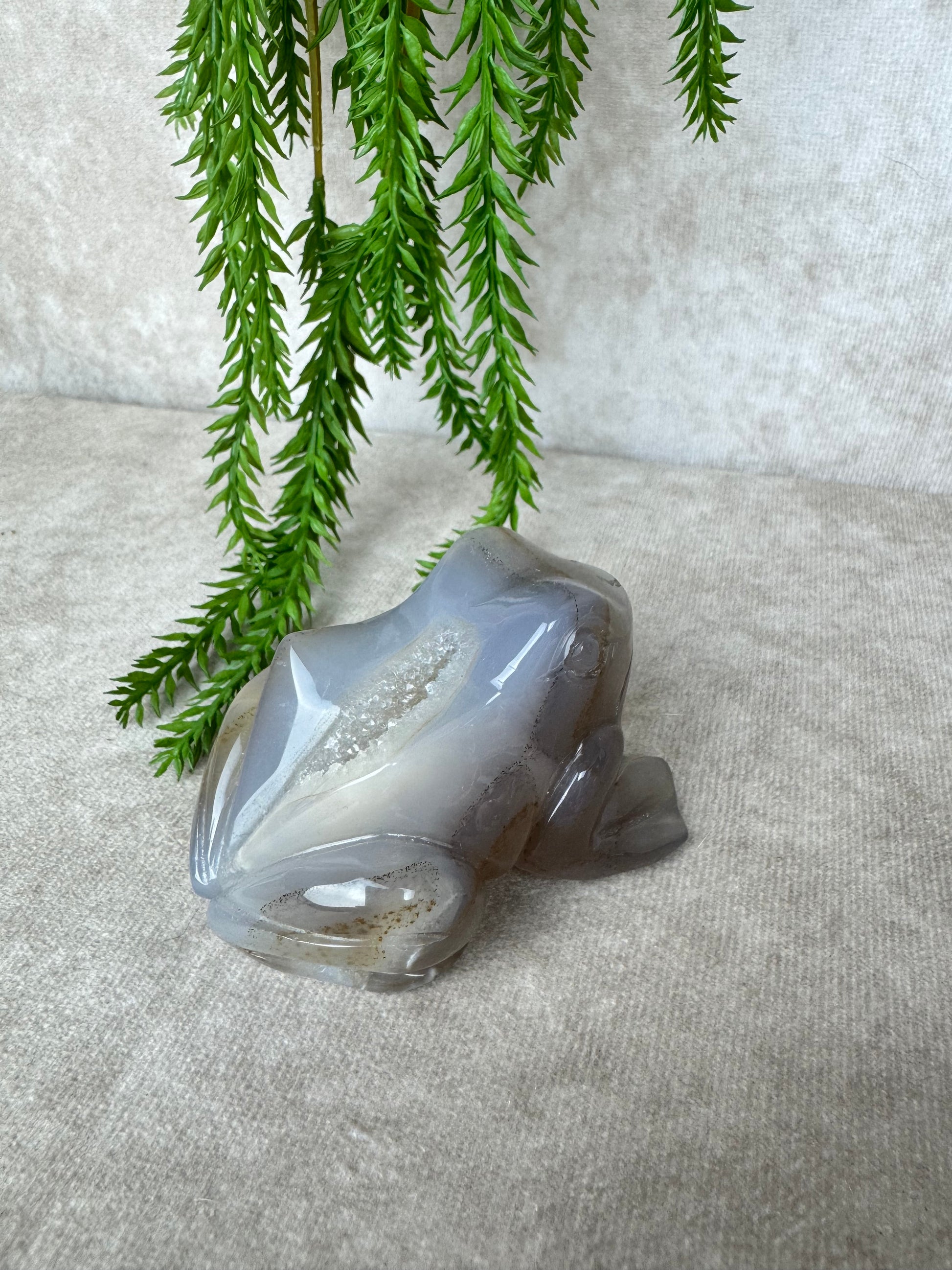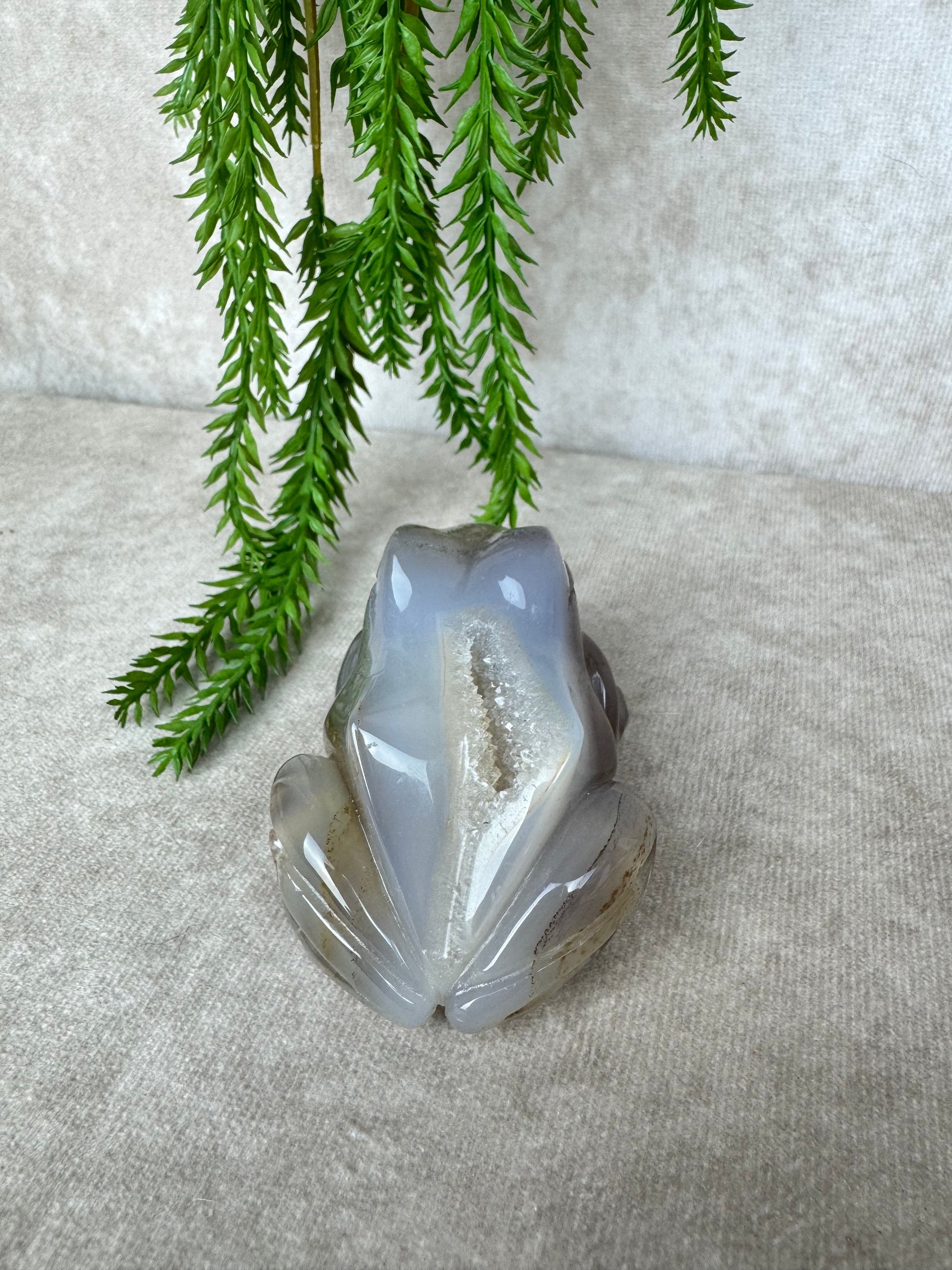 De kikker is al eeuwenlang een symbool voor verandering en aanpassing, eigenschappen die goed aansluiten bij de werking van agaat. Deze edelsteen staat bekend om zijn kalmerende en stabiliserende invloed. Hij helpt om rust te vinden in drukke tijden, geeft ondersteuning bij emotionele spanning en bevordert een gevoel van balans.