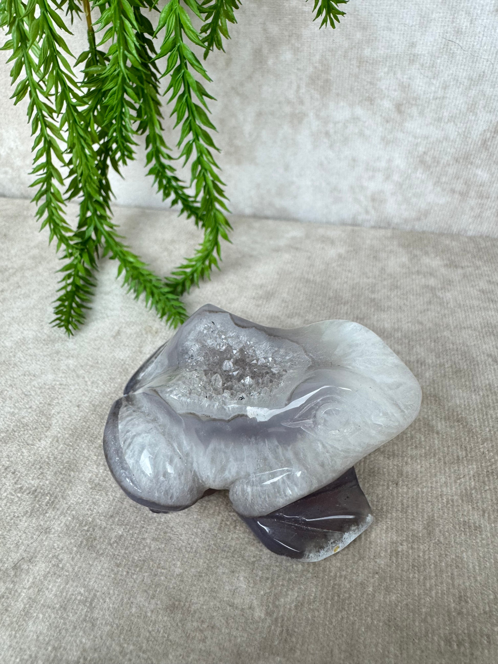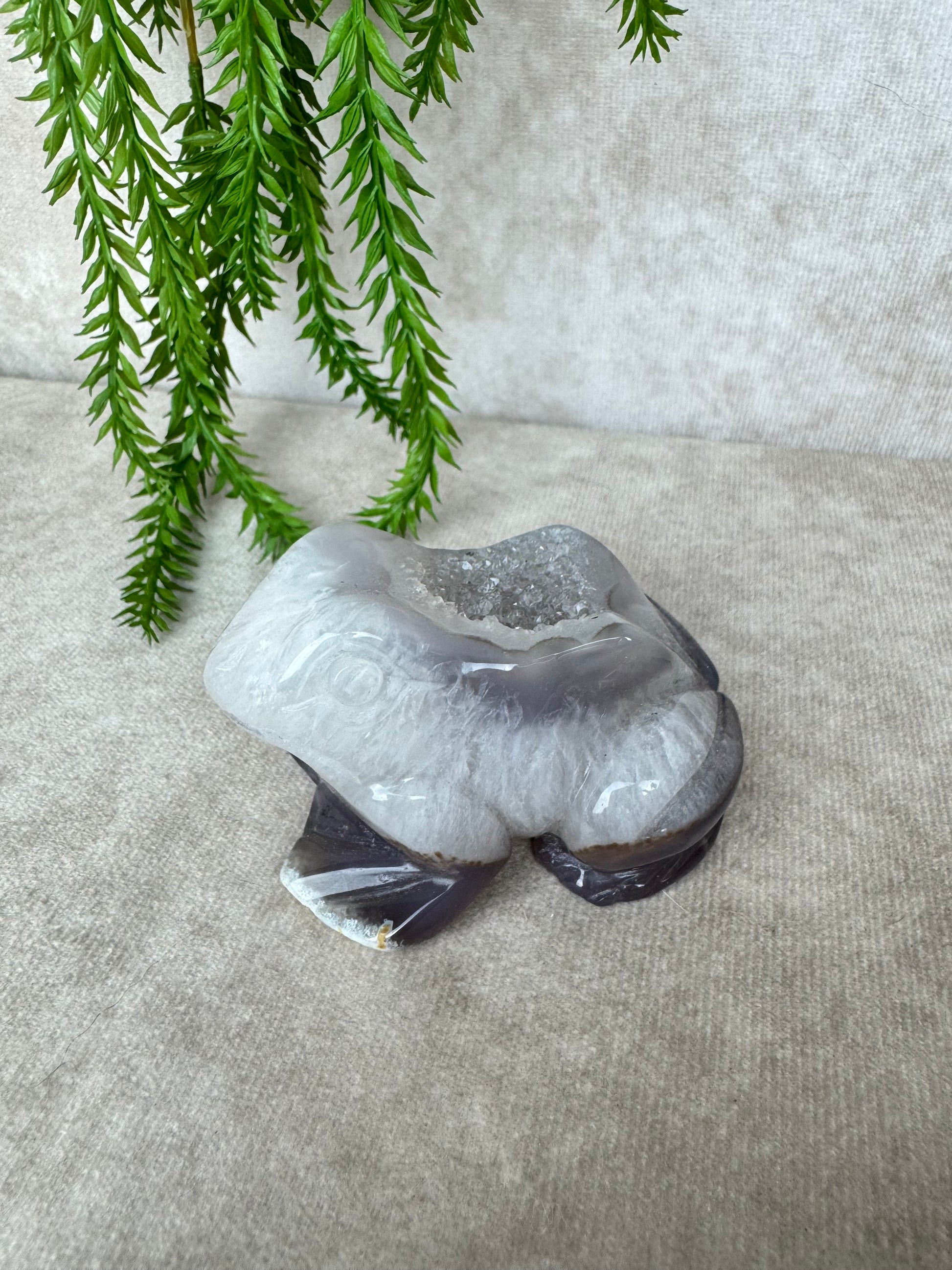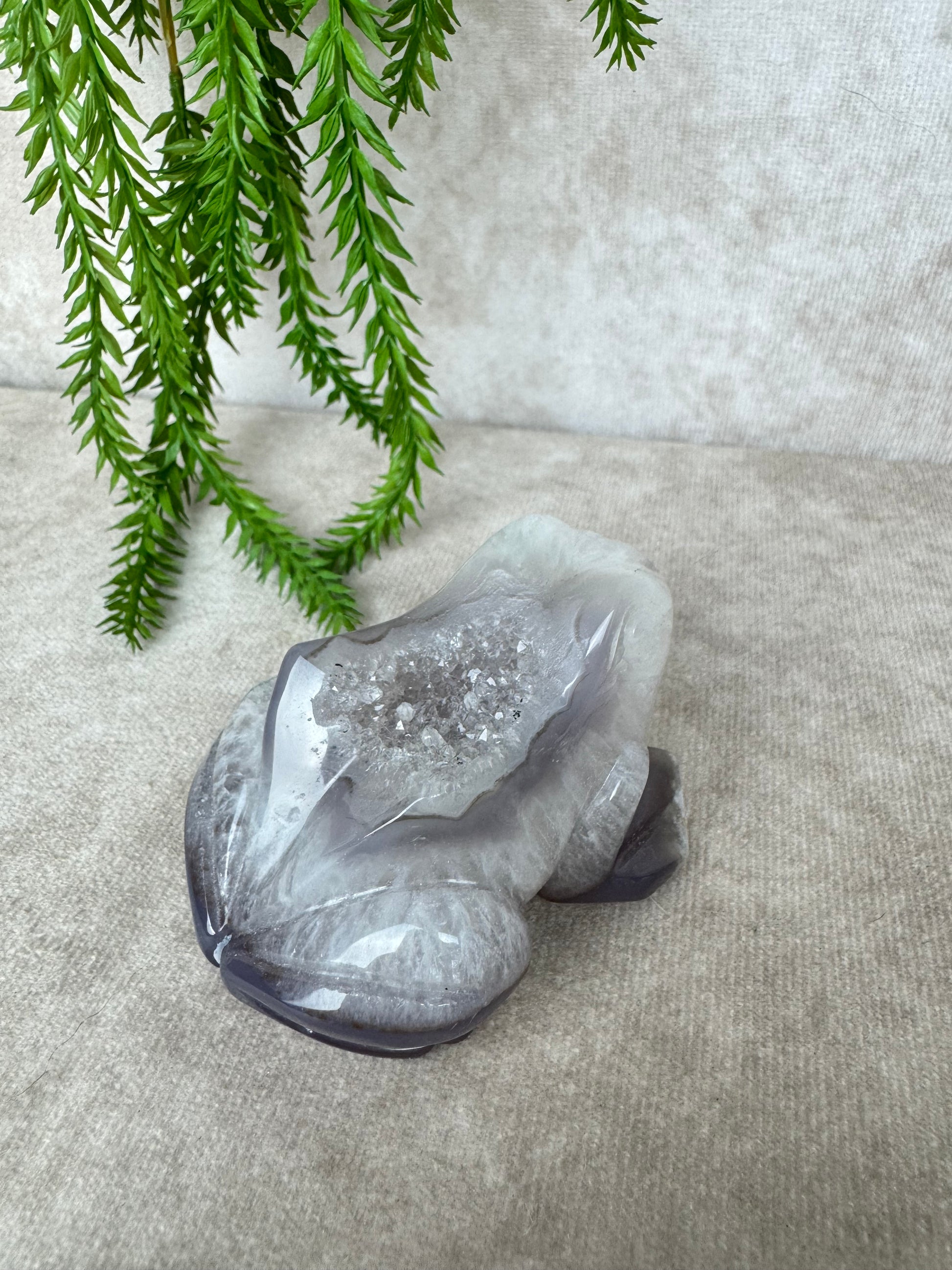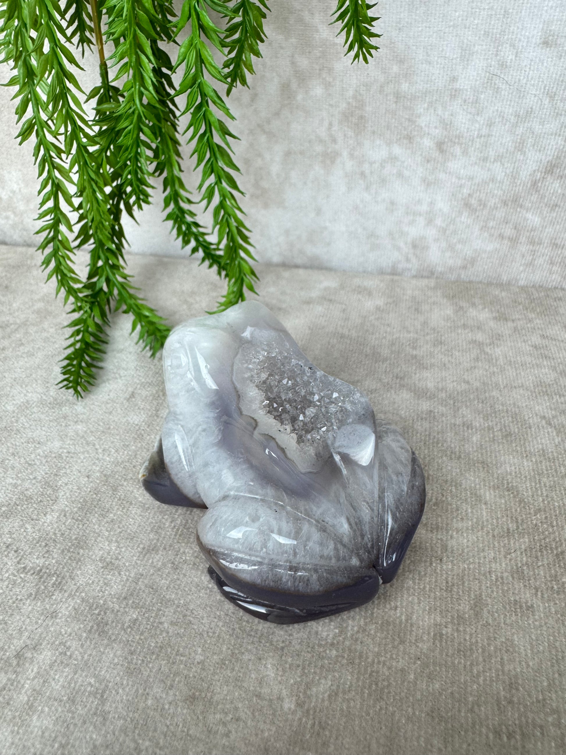 De kikker is al eeuwenlang een symbool voor verandering en aanpassing, eigenschappen die goed aansluiten bij de werking van agaat. Deze edelsteen staat bekend om zijn kalmerende en stabiliserende invloed. Hij helpt om rust te vinden in drukke tijden, geeft ondersteuning bij emotionele spanning en bevordert een gevoel van balans.