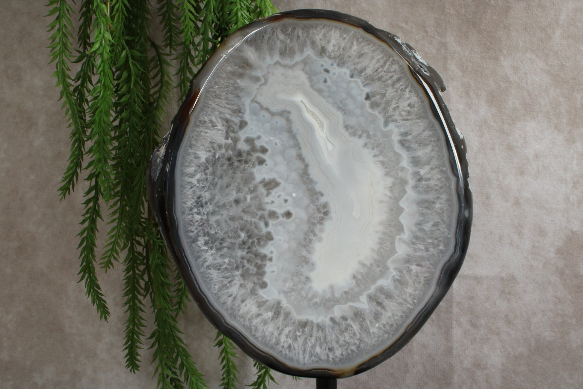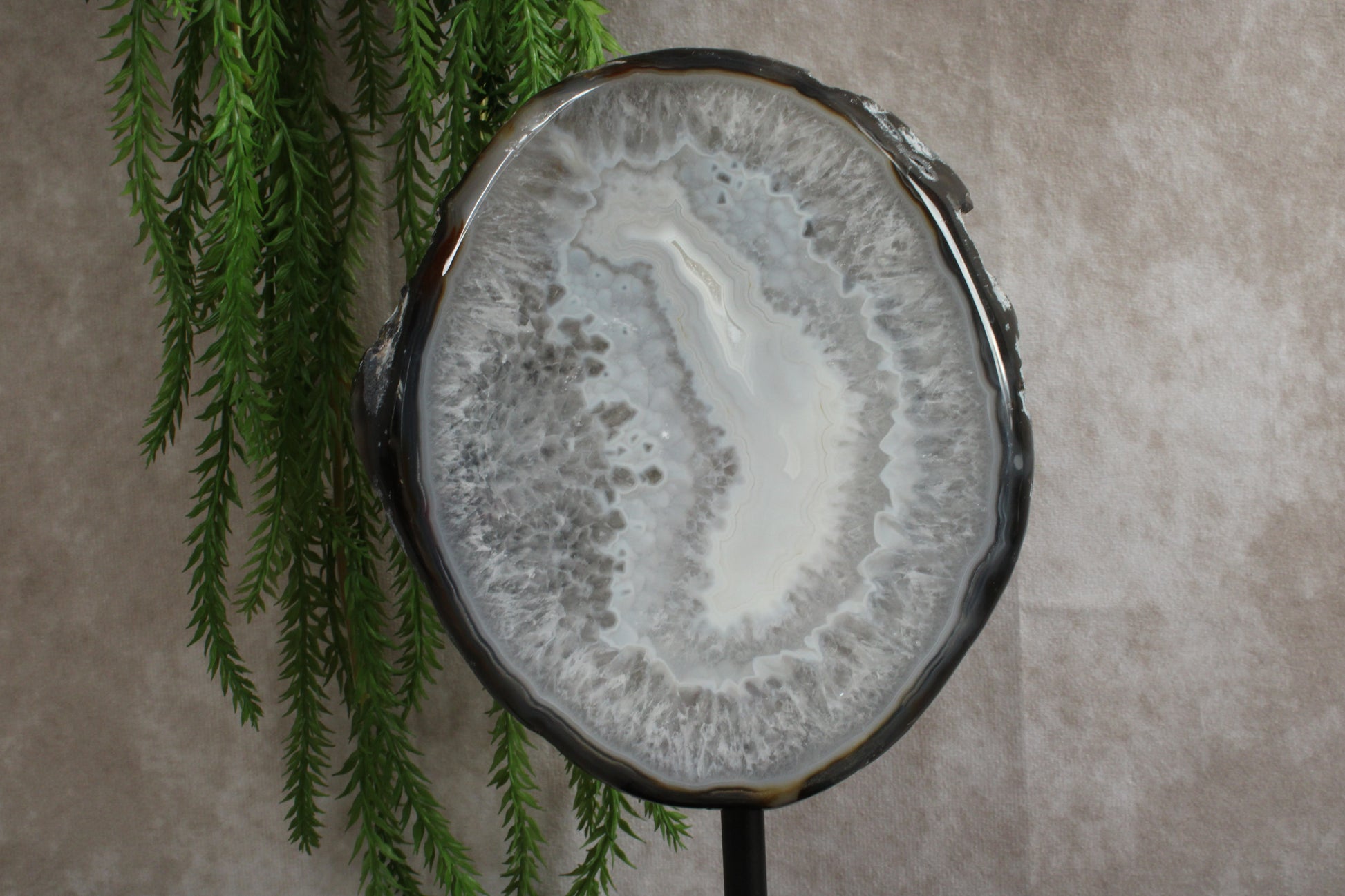 Deze prachtige agaat steen weegt 2377 gram en heeft een hoogte van 25 cm en een breedte van 15 cm. Agaat staat bekend om zijn bevorderende werking op innerlijke rust en het stimuleren van een kalme, nuchtere houding. Deze steen beschermt het aura, geeft een veilig gevoel, en brengt balans in lichaam, ziel en geest.