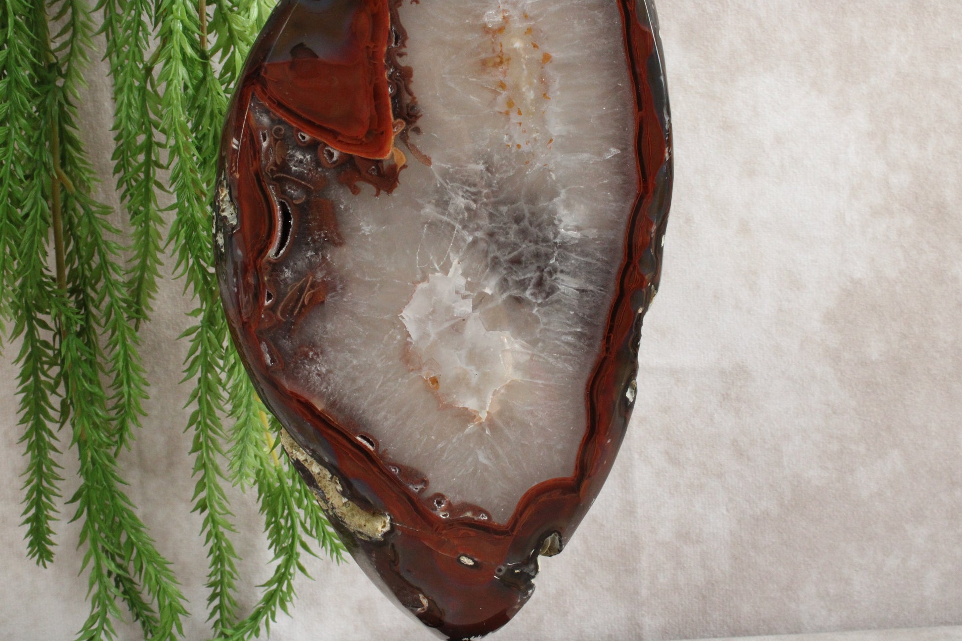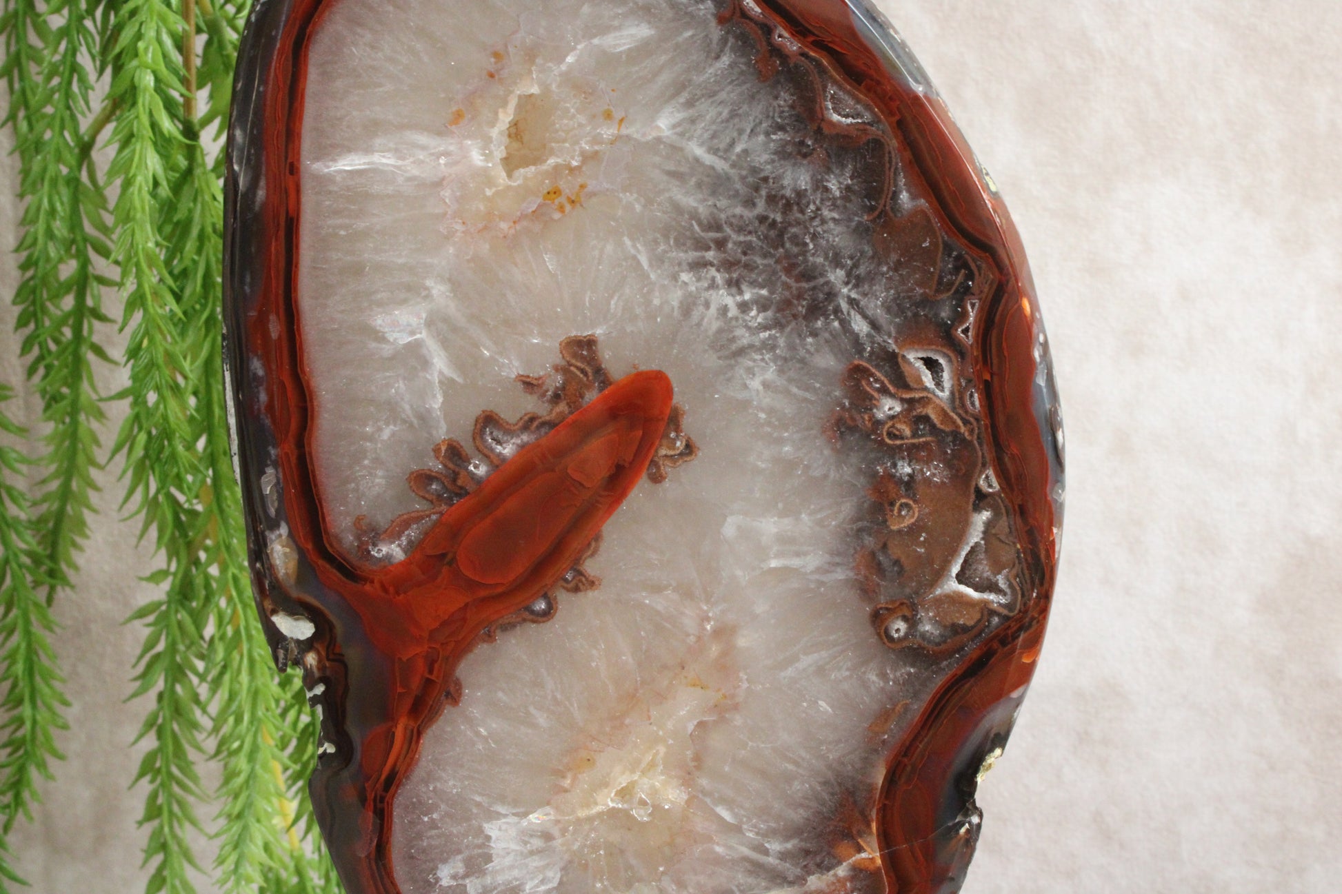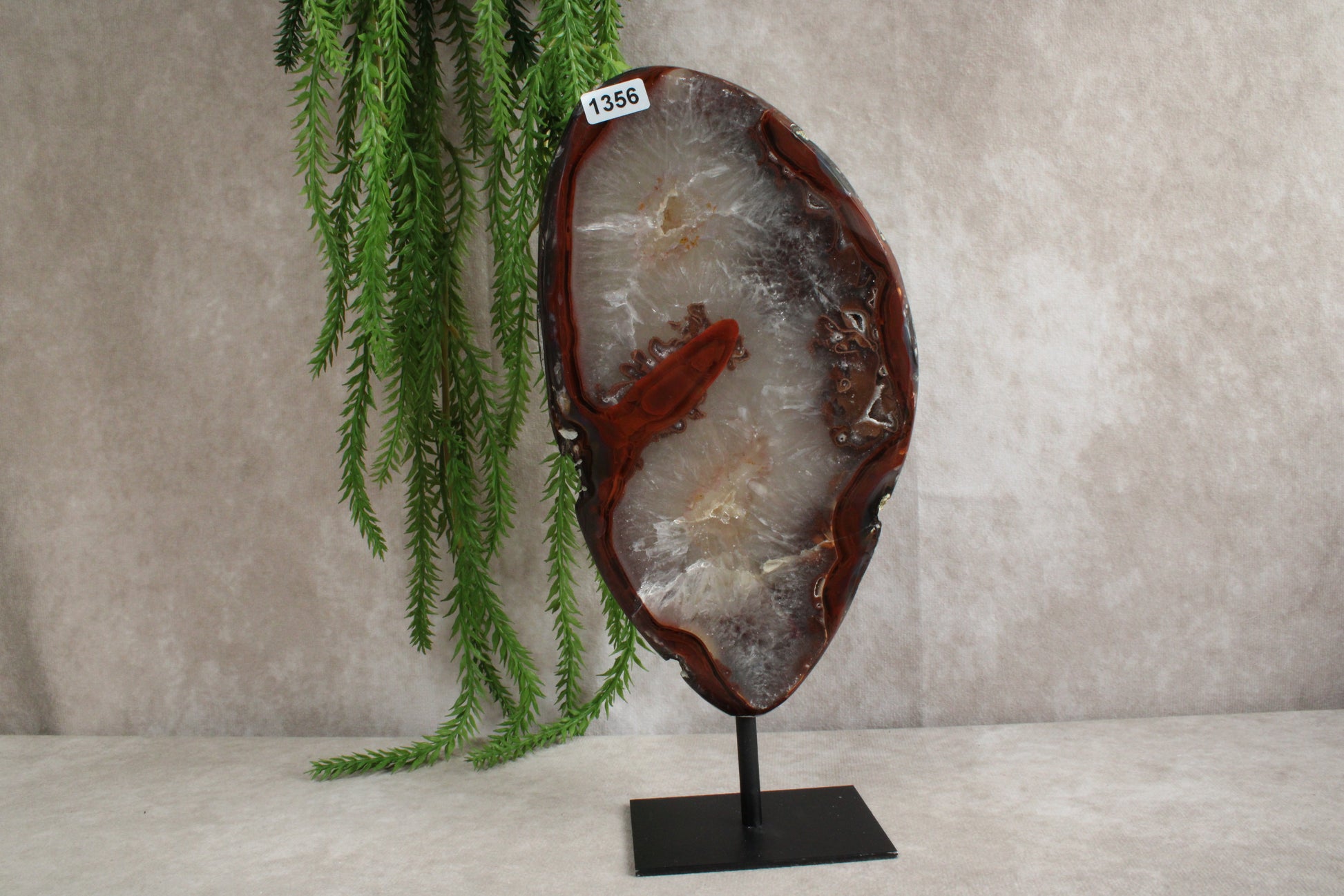 Deze agaat steen weegt 1114 gram en heeft een hoogte van 25 cm en een breedte van 11,9 cm. Agaat staat bekend om het bevorderen van innerlijke rust en een kalme, nuchtere houding. De steen beschermt het aura, geeft een gevoel van veiligheid en brengt balans in lichaam, ziel en geest.