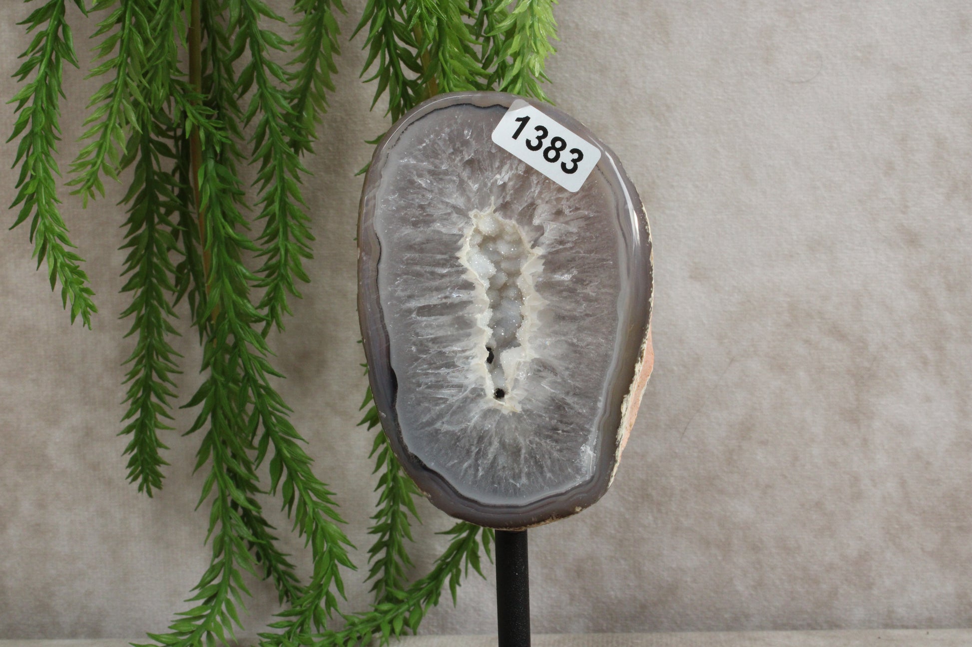 Deze agaat op standaard heeft een hoogte van 14 cm en is een prachtig decoratief stuk dat de unieke patronen en kleuren van agaat toont. Het is geplaatst op een stevige standaard die het mogelijk maakt om het te presenteren in al zijn natuurlijke pracht, waardoor het een prachtige blikvanger is in elke ruimte.