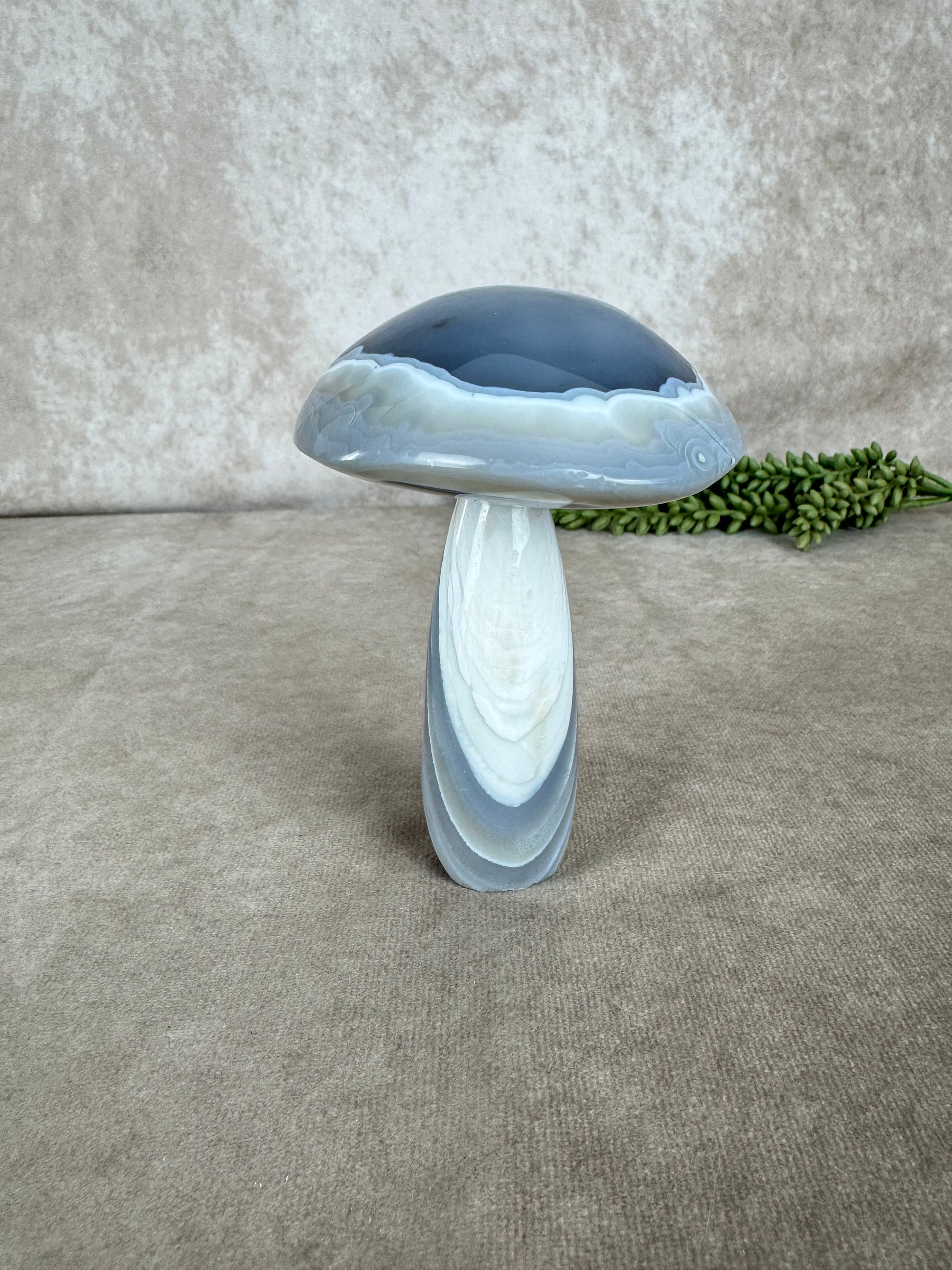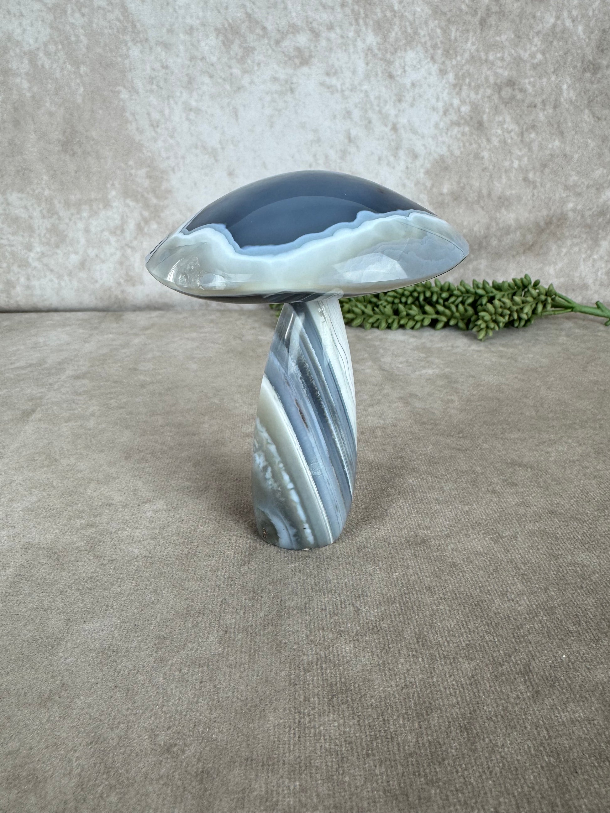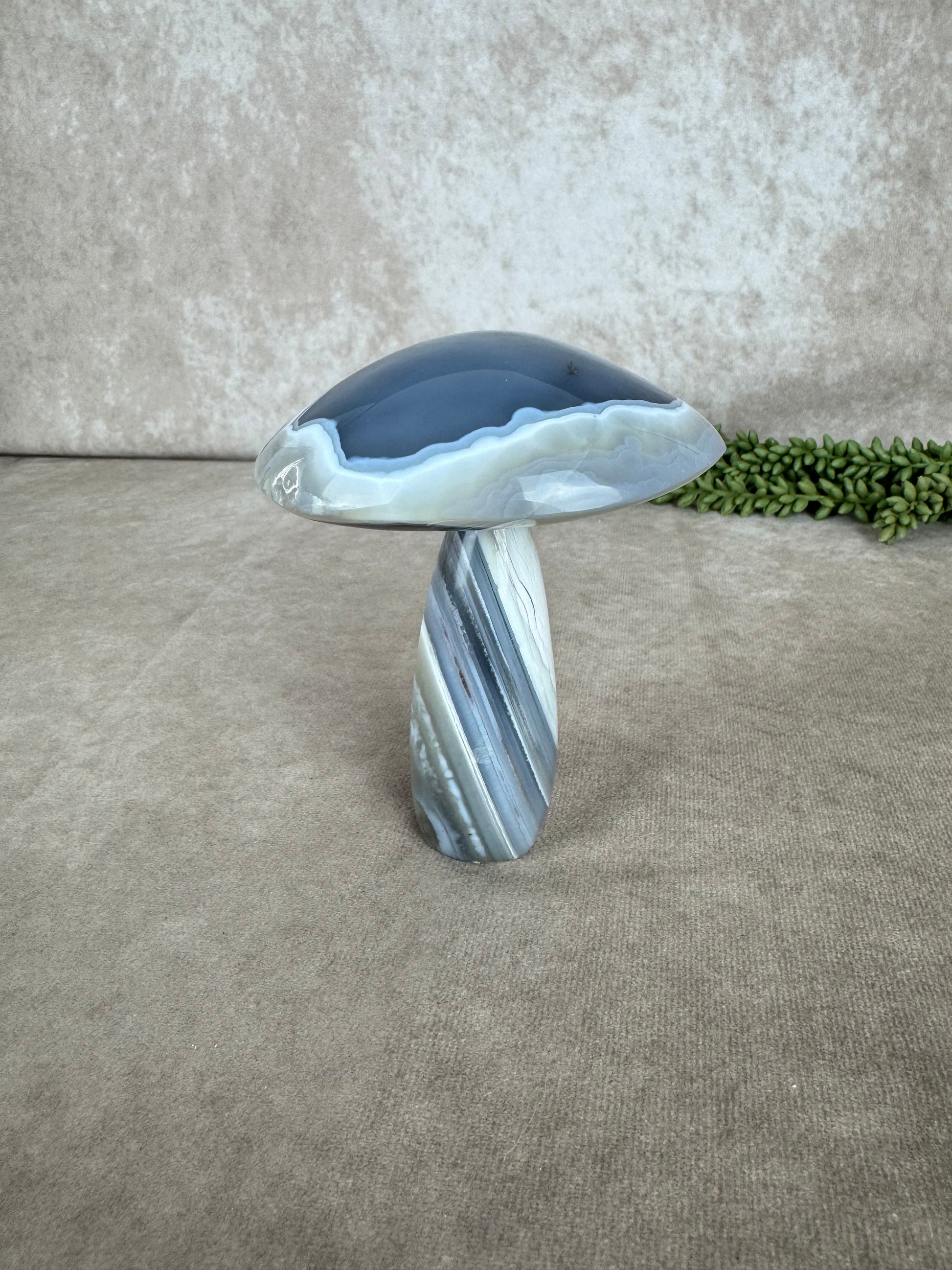 Agaat staat bekend om zijn aardende, stabiliserende werking en zijn vermogen om innerlijke rust en balans te brengen. De prachtige natuurlijke patronen en zachte kleurnuances geven elke paddenstoel een unieke uitstraling, waardoor geen twee exemplaren hetzelfde zijn.