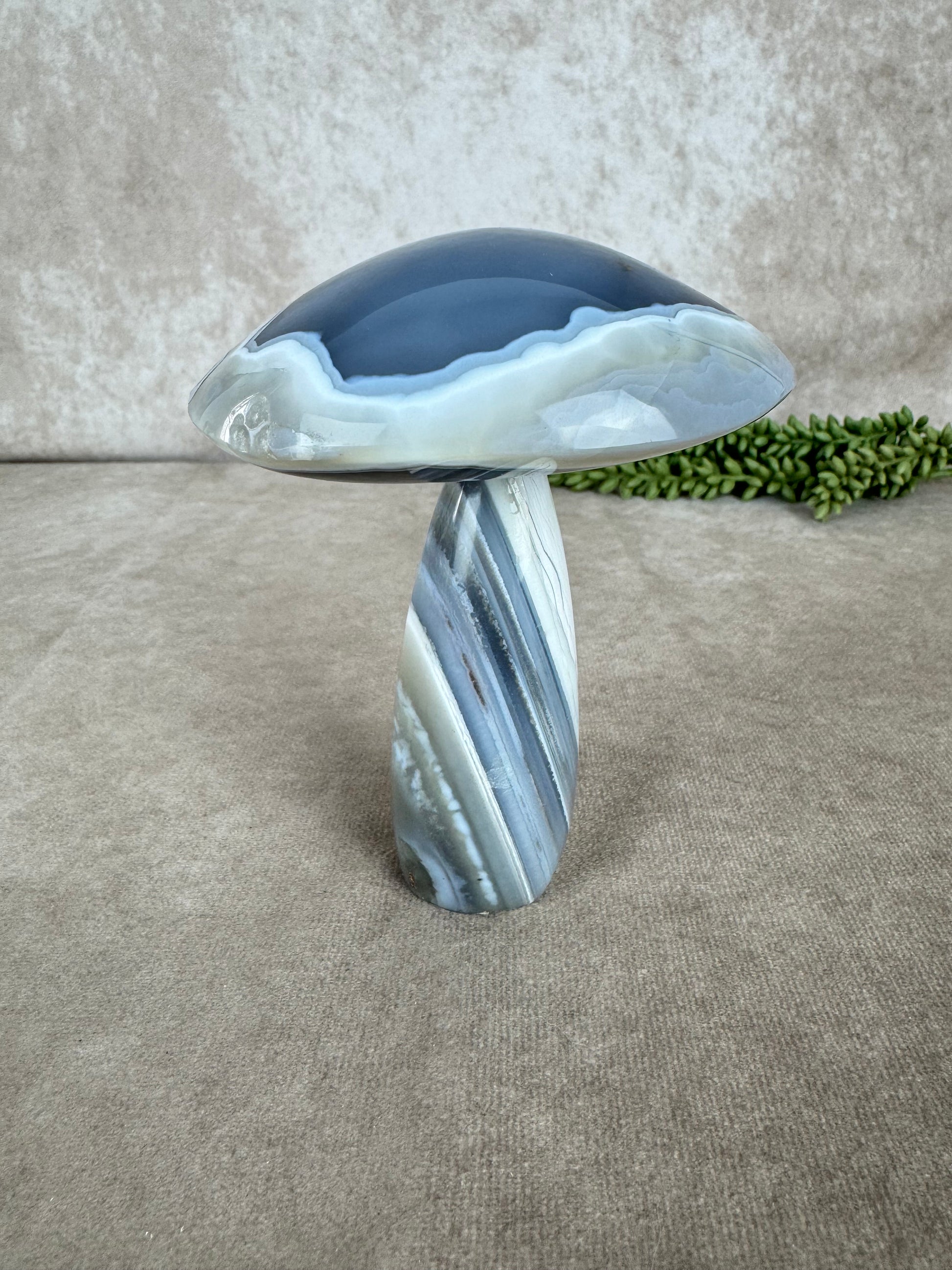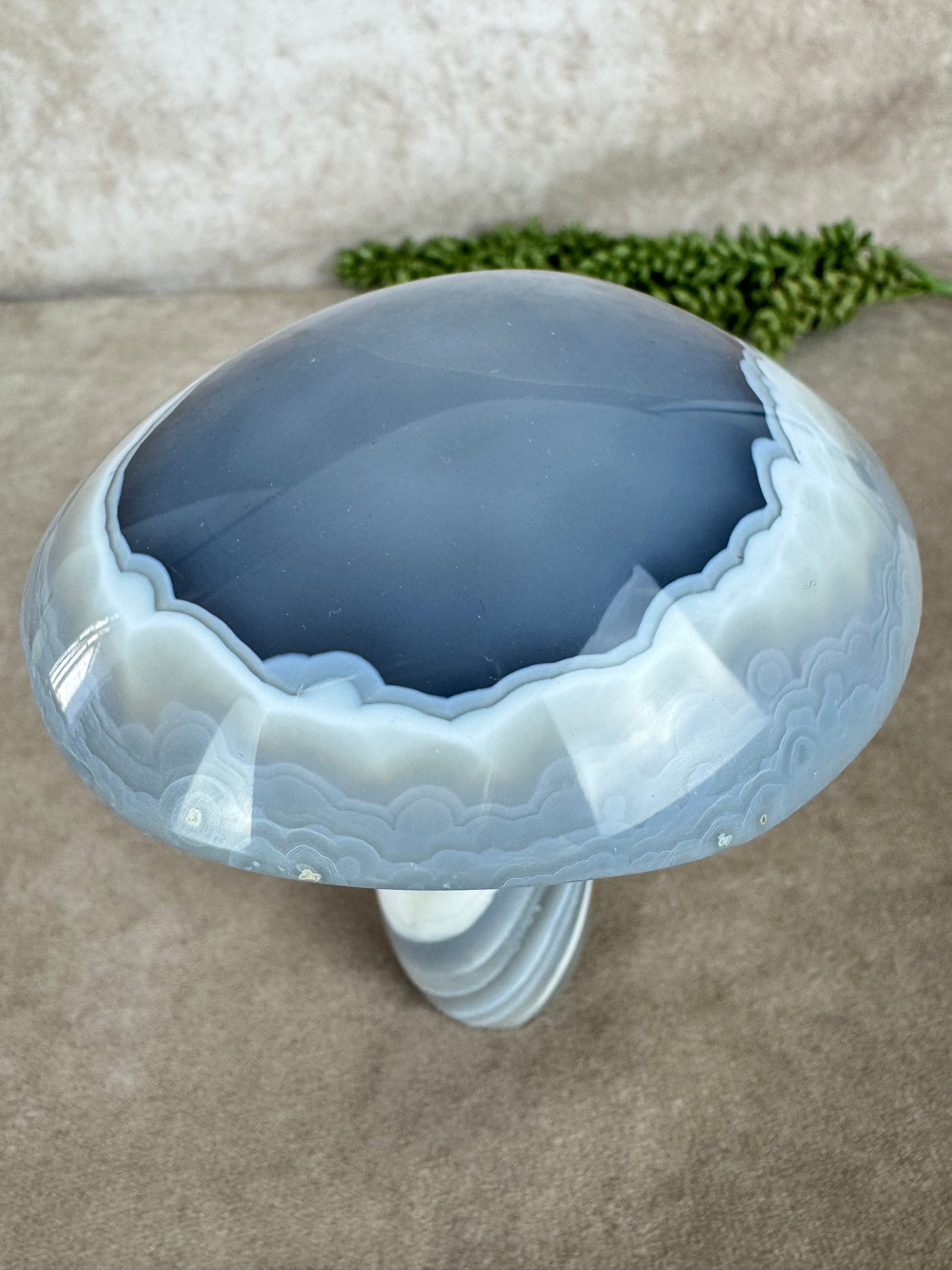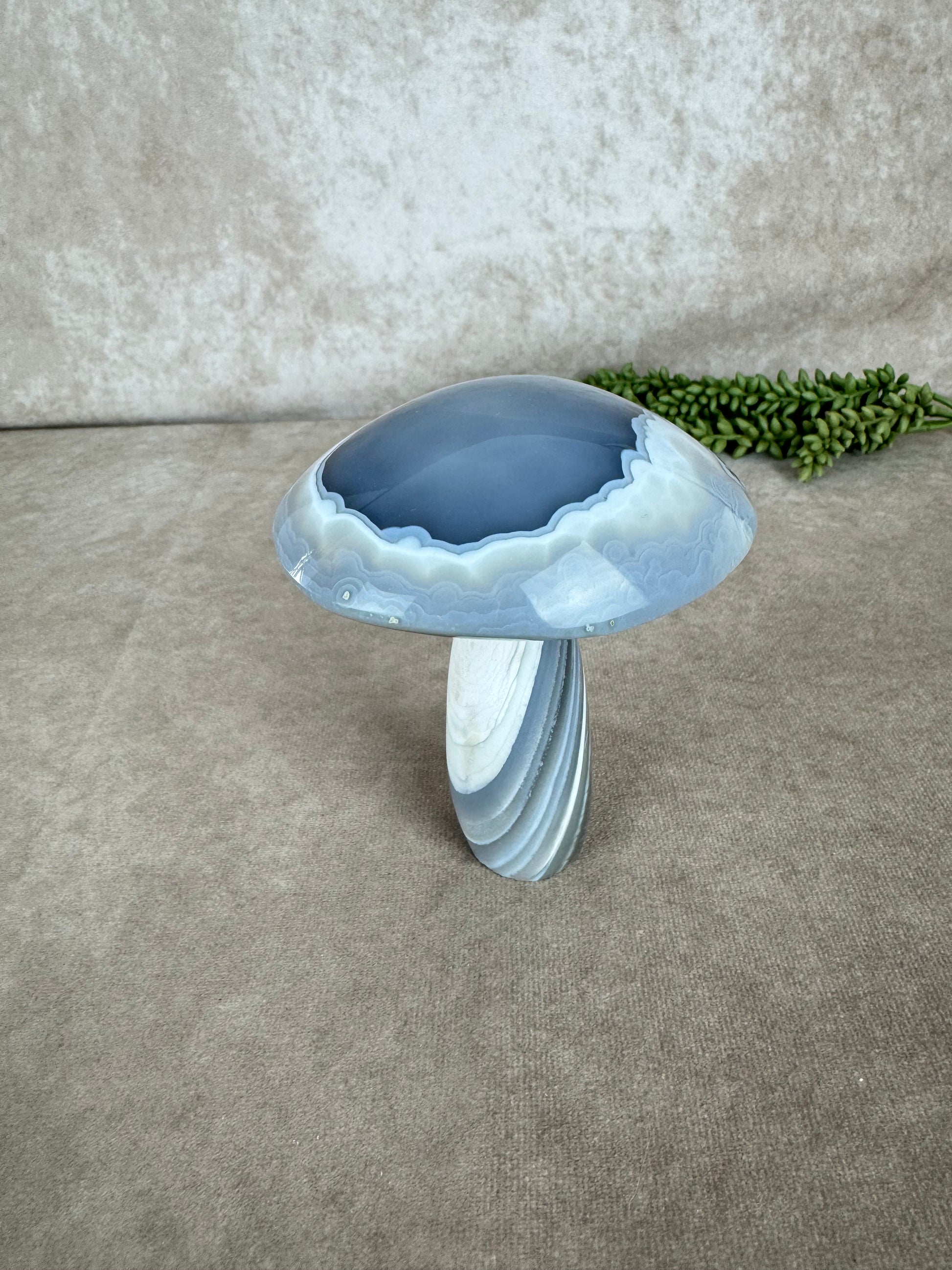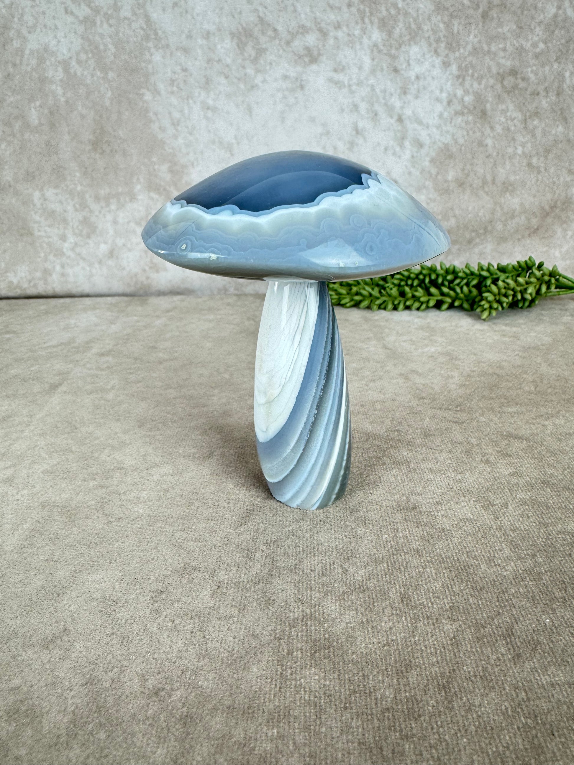 Agaat staat bekend om zijn aardende, stabiliserende werking en zijn vermogen om innerlijke rust en balans te brengen. De prachtige natuurlijke patronen en zachte kleurnuances geven elke paddenstoel een unieke uitstraling, waardoor geen twee exemplaren hetzelfde zijn.