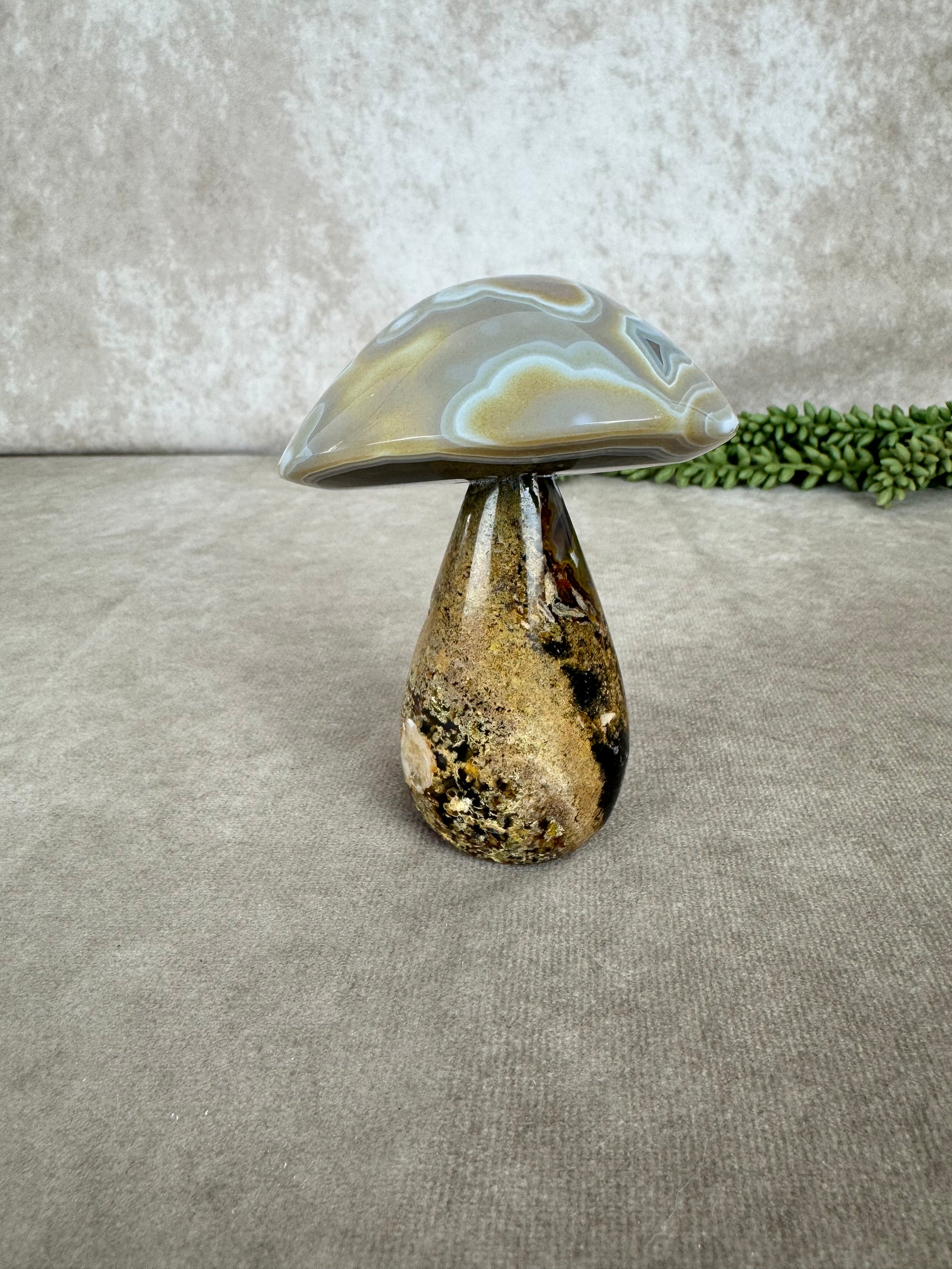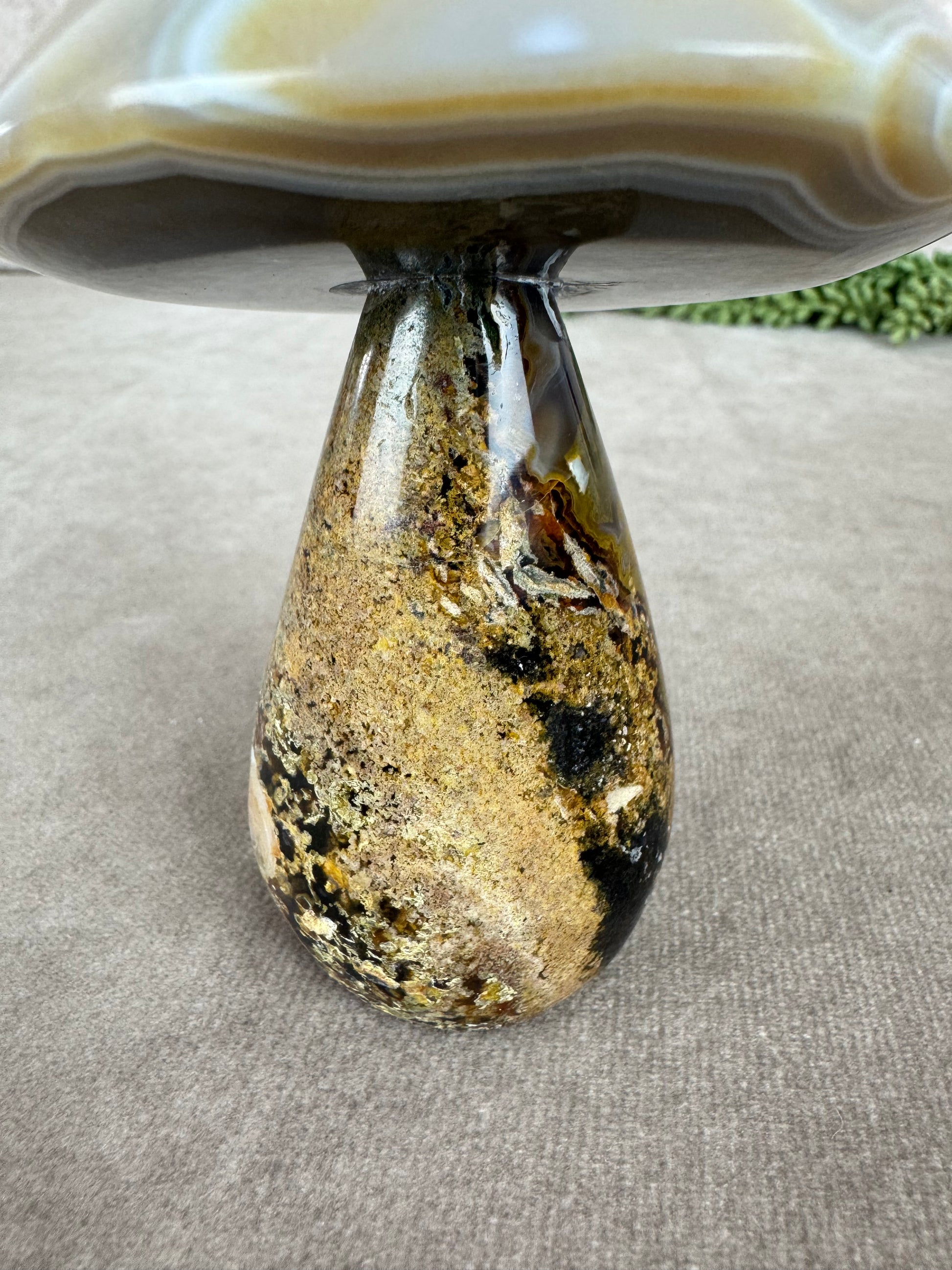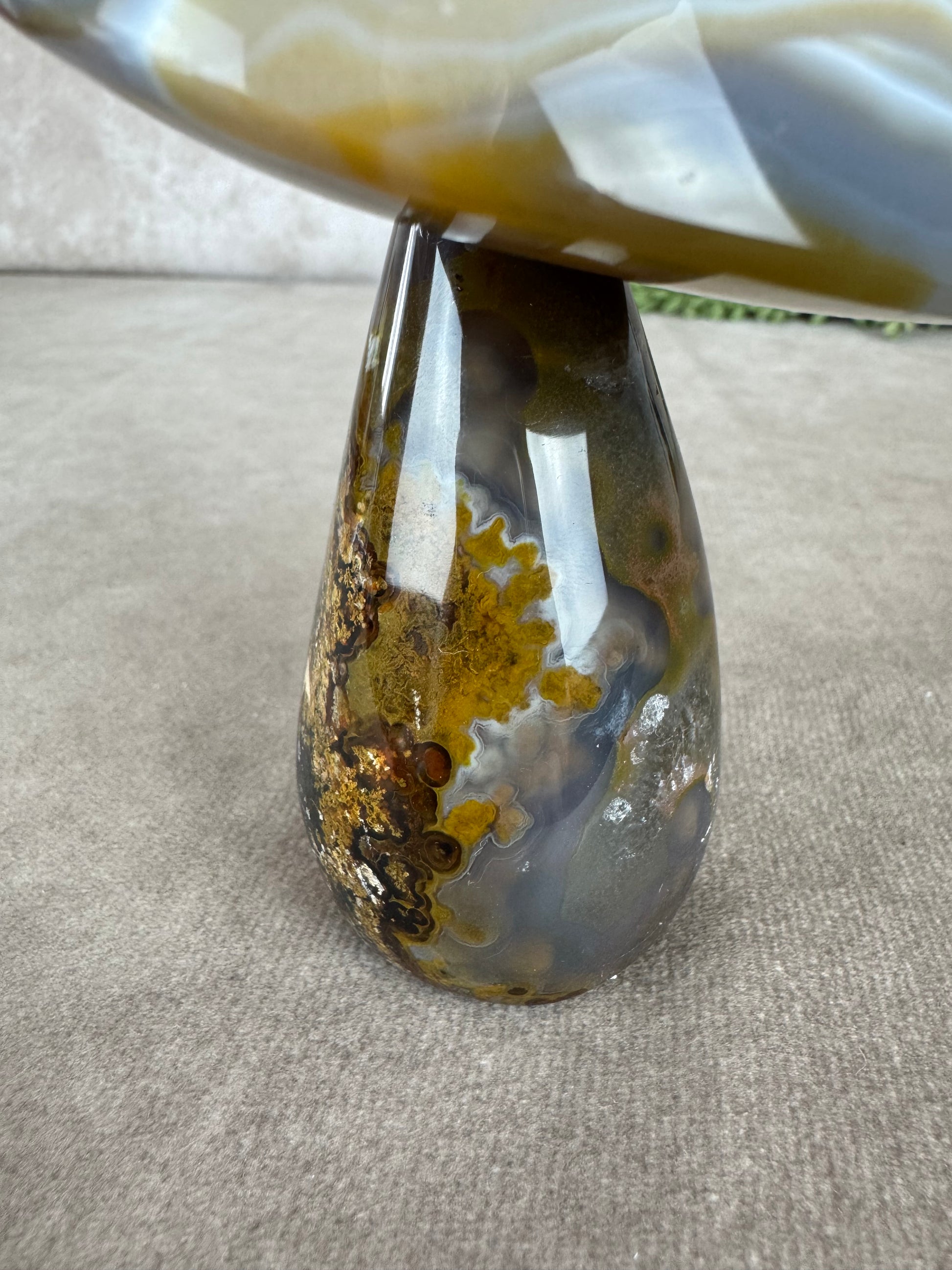 Laat je betoveren door de natuurlijke magie van deze prachtige paddenstoel van agaat. Met een hoogte van 11 cm en een gewicht van 405 gram is dit een charmant en uniek kunstwerk, waarin de kracht en schoonheid van de natuur samenkomen.