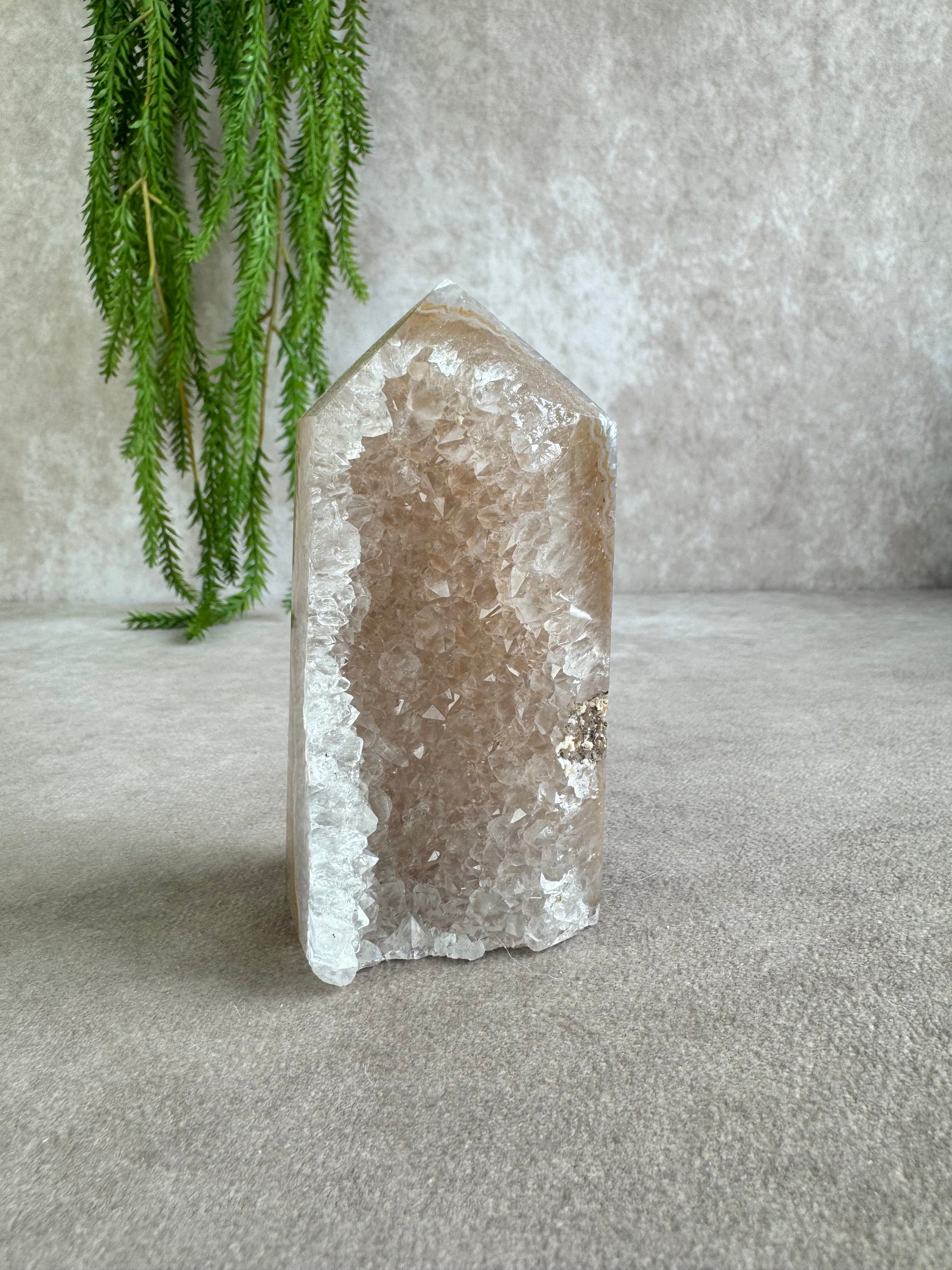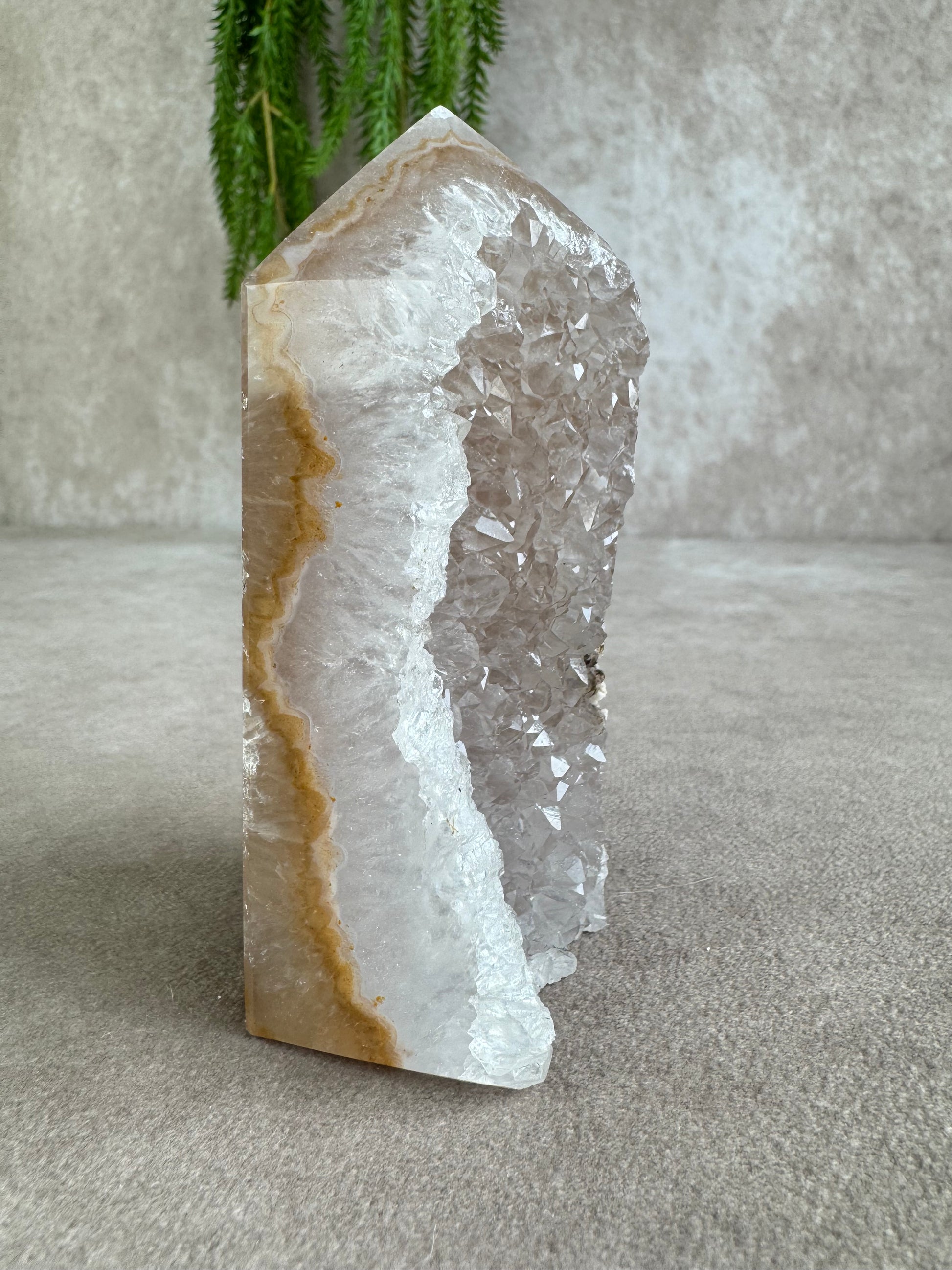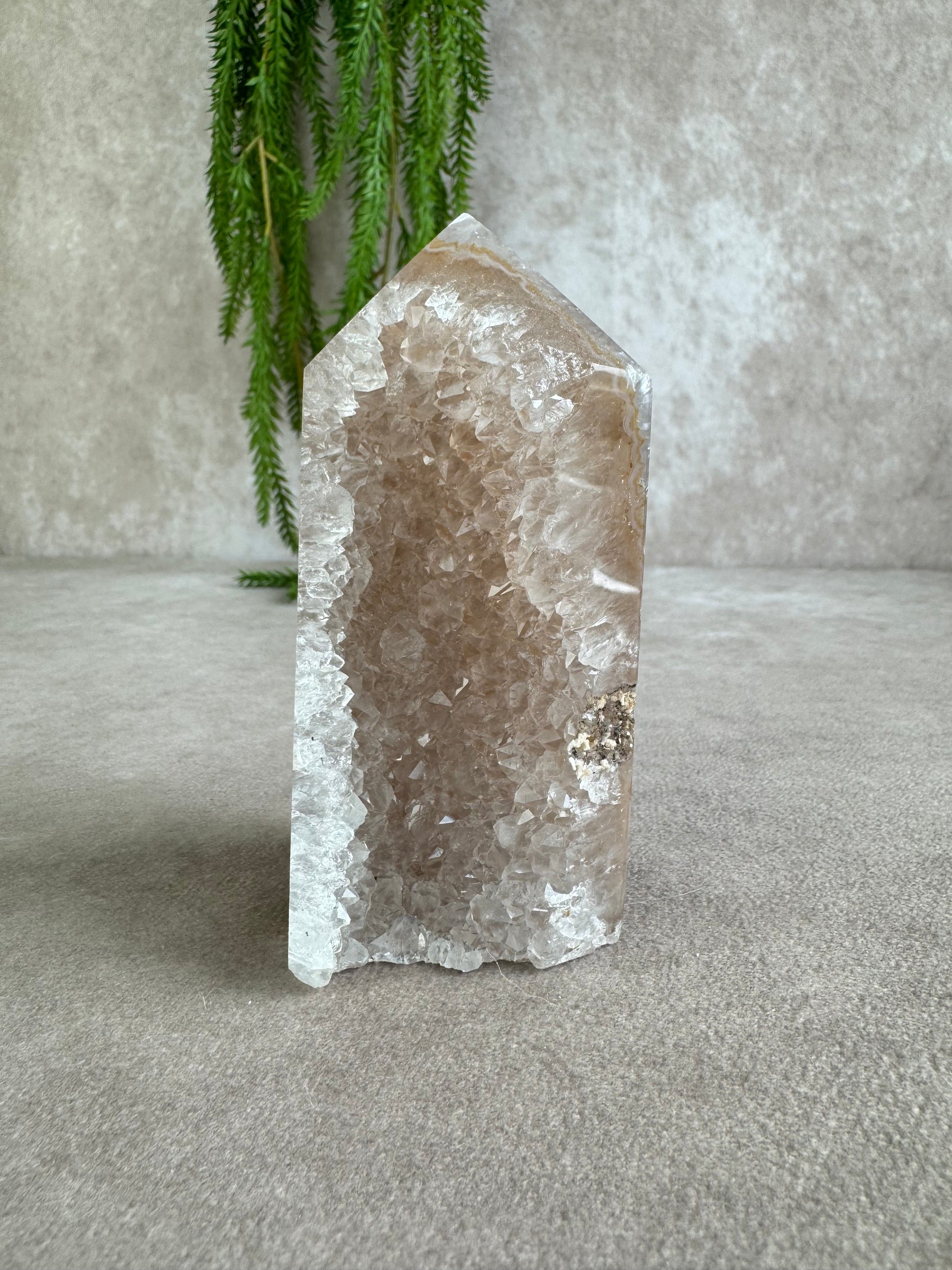 Agaat staat bekend om zijn aardende en kalmerende energie. In puntvorm wordt deze kracht omhoog geleid, waardoor de steen zowel decoratief als energetisch een waardevolle toevoeging is.
