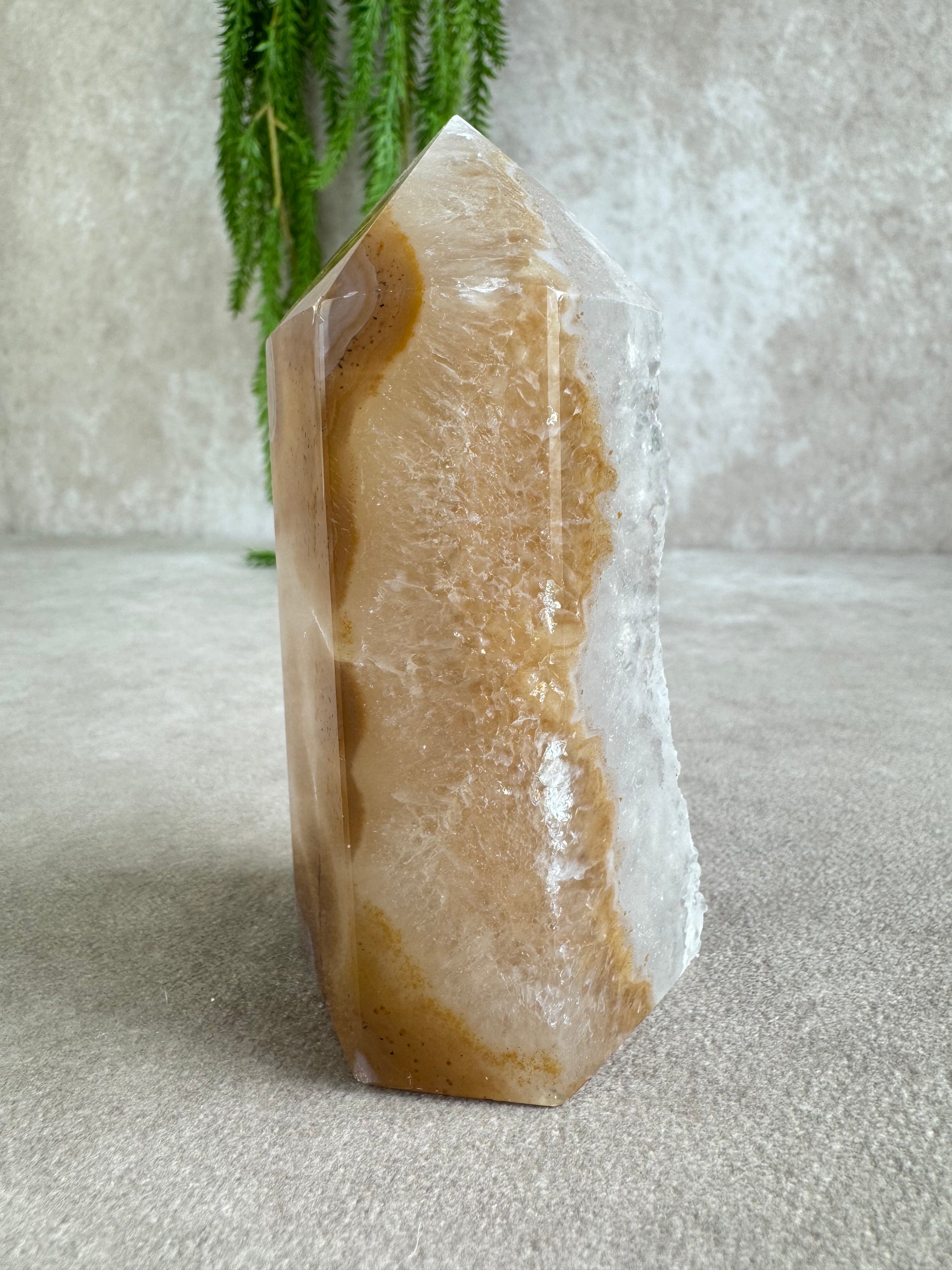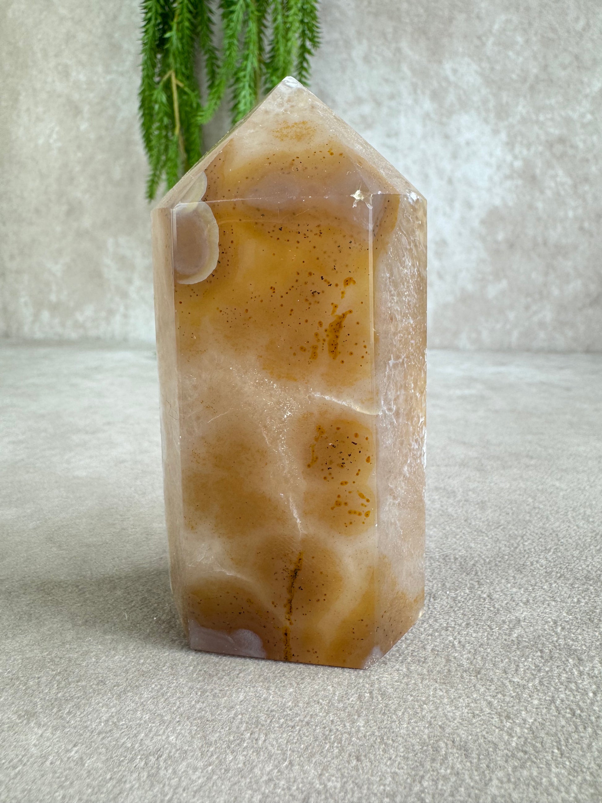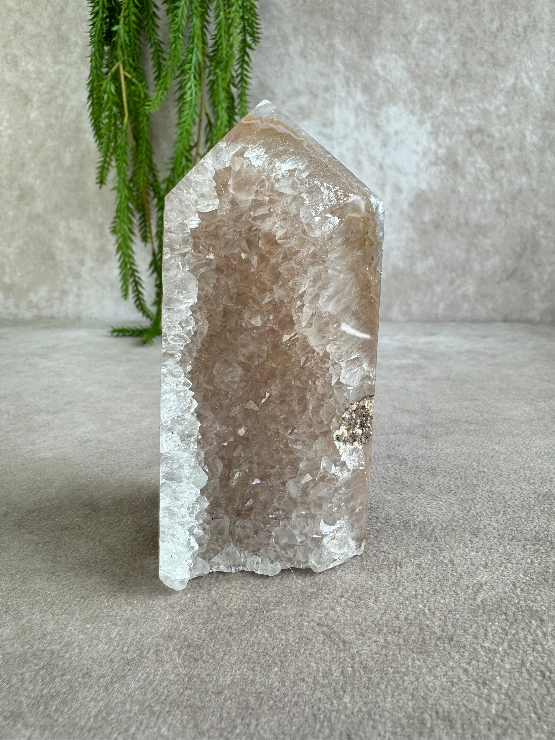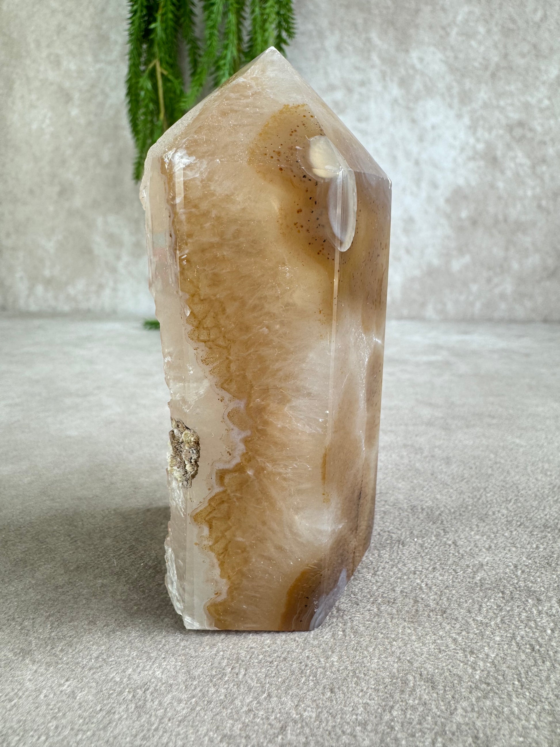 Agaat staat bekend om zijn aardende en kalmerende energie. In puntvorm wordt deze kracht omhoog geleid, waardoor de steen zowel decoratief als energetisch een waardevolle toevoeging is.