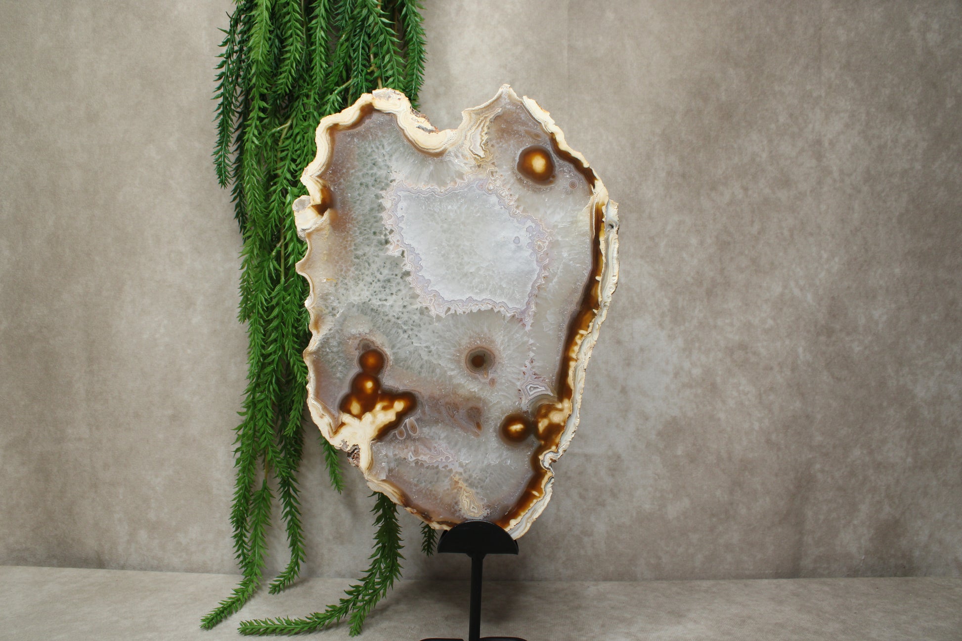 Agaat wordt al eeuwenlang gewaardeerd om zijn symbolische eigenschappen, zoals bescherming, kalmte en evenwicht een mooie, betekenisvolle steen voor in huis of in een mineralencollectie.