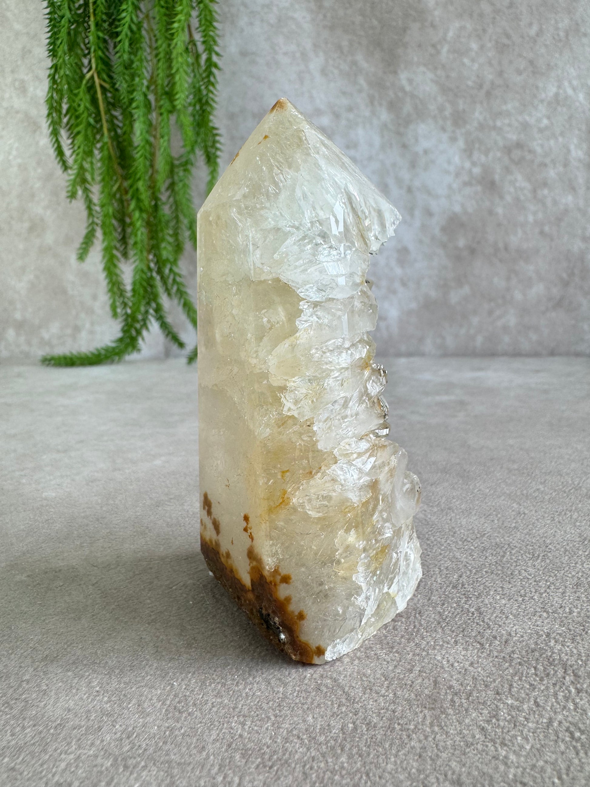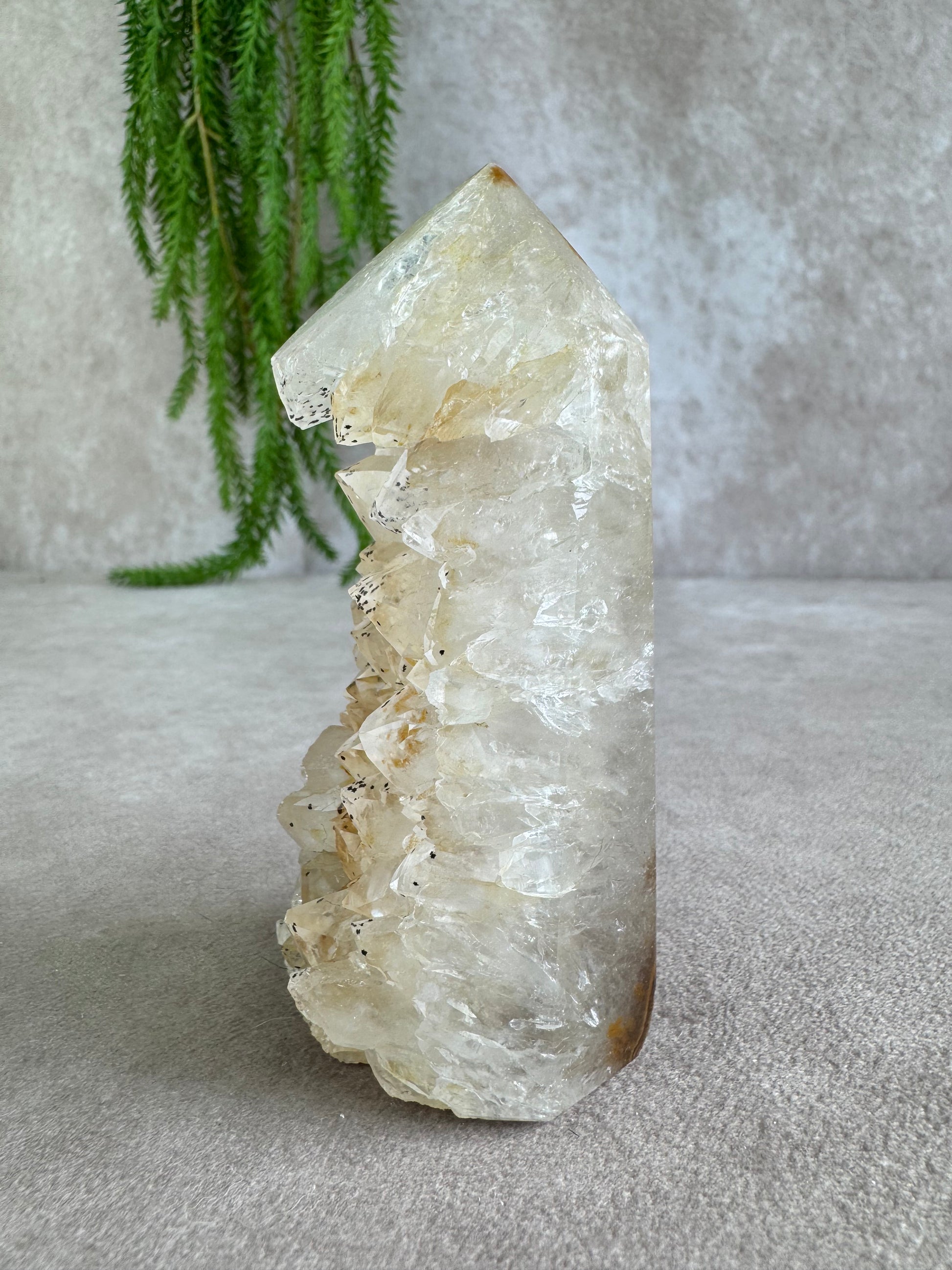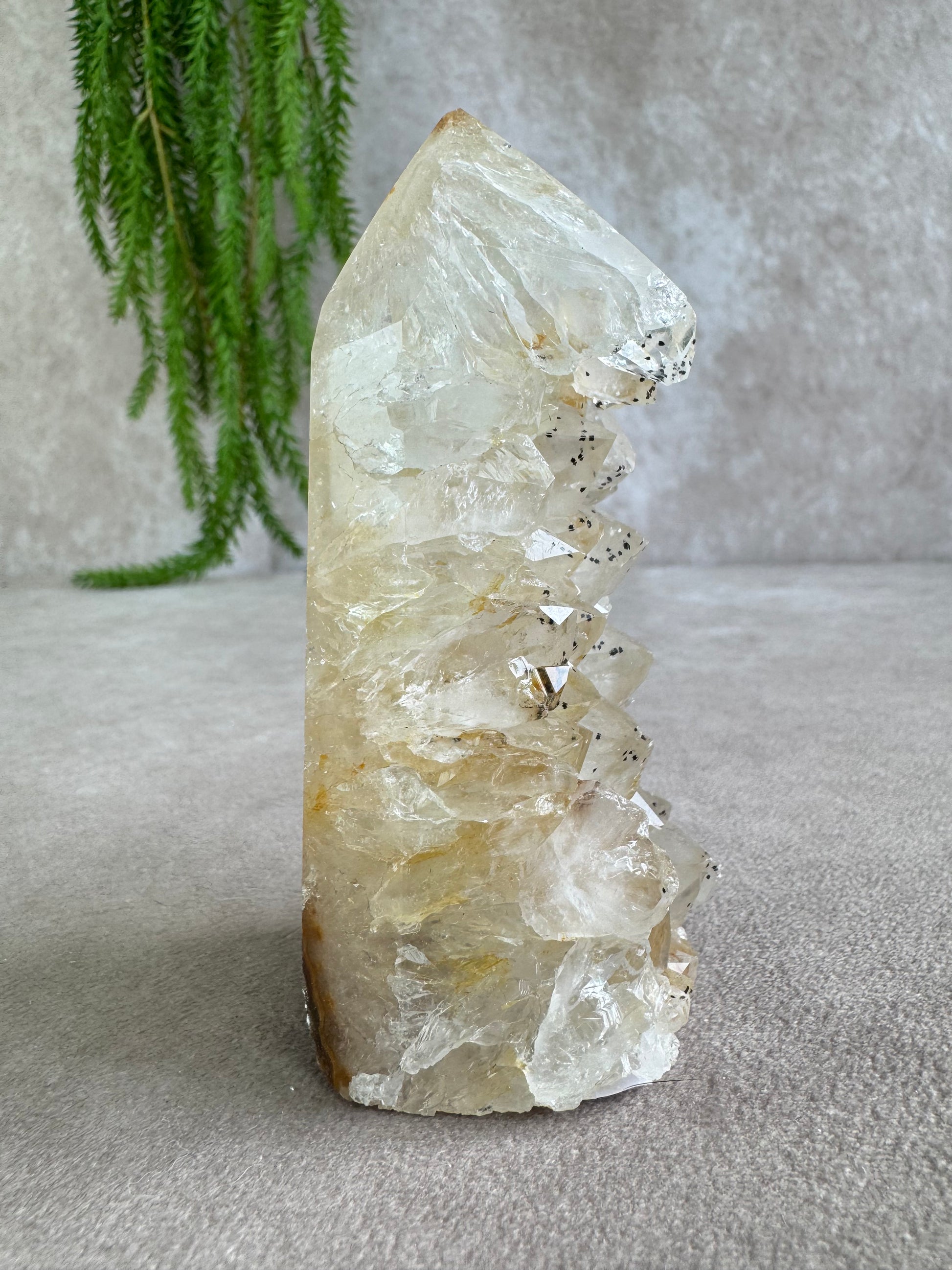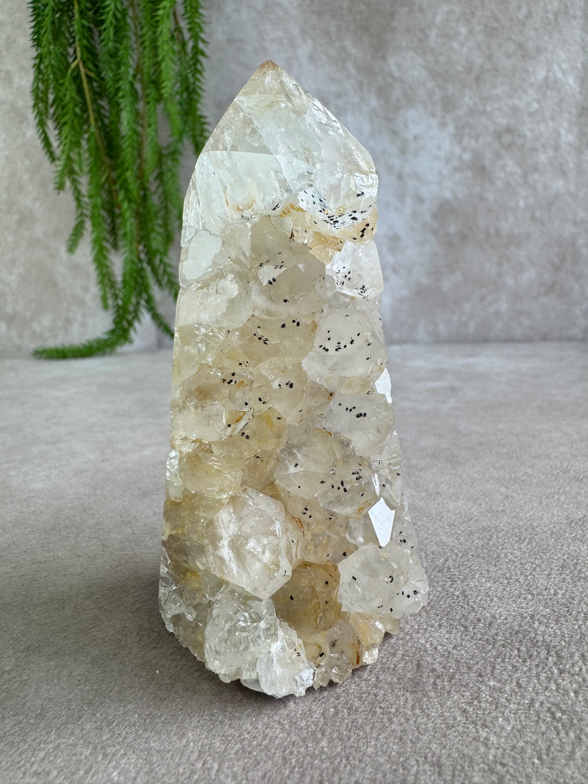 Deze mega mooie agaat toren van 284 gram is een echt natuurkunstwerk. Met een hoogte van 10,5 cm en een breedte van 5 cm heeft hij een krachtig en elegant formaat. Wat deze toren extra bijzonder maakt, is de prachtige heldere punten met kleine insluitsels, natuurlijke lijnen en lagen die in het agaat zichtbaar zijn en het stuk karakter en diepte geven.