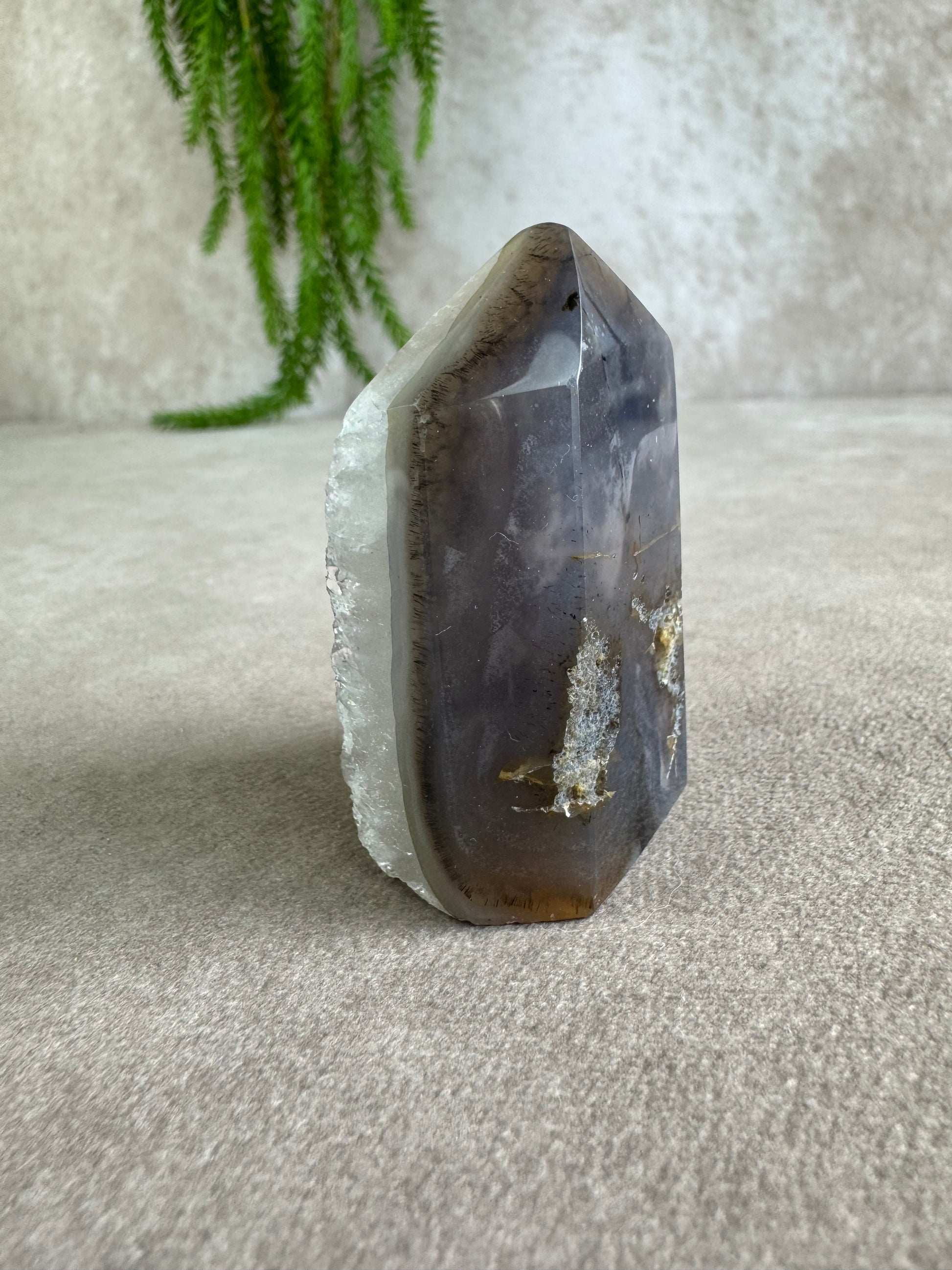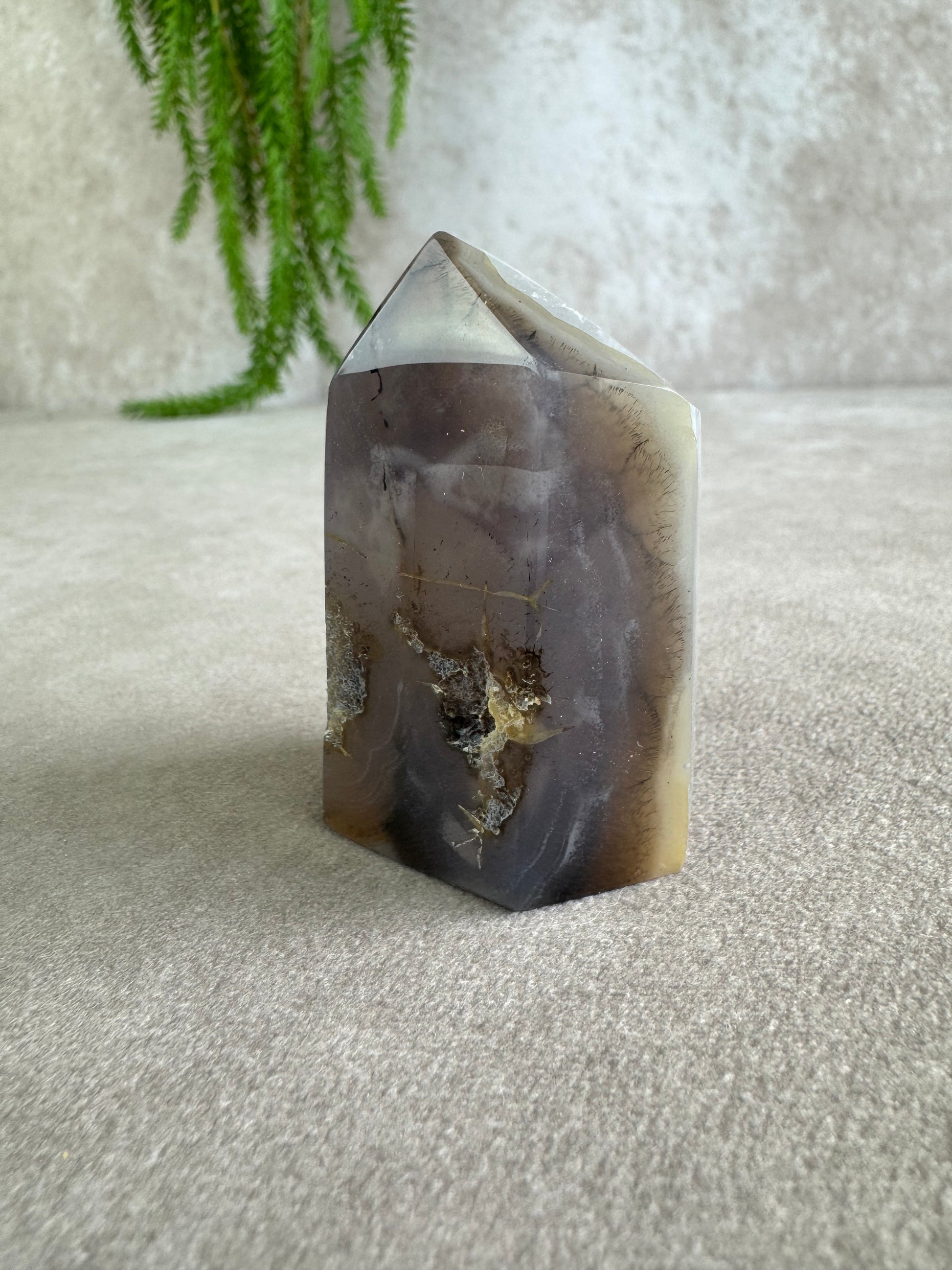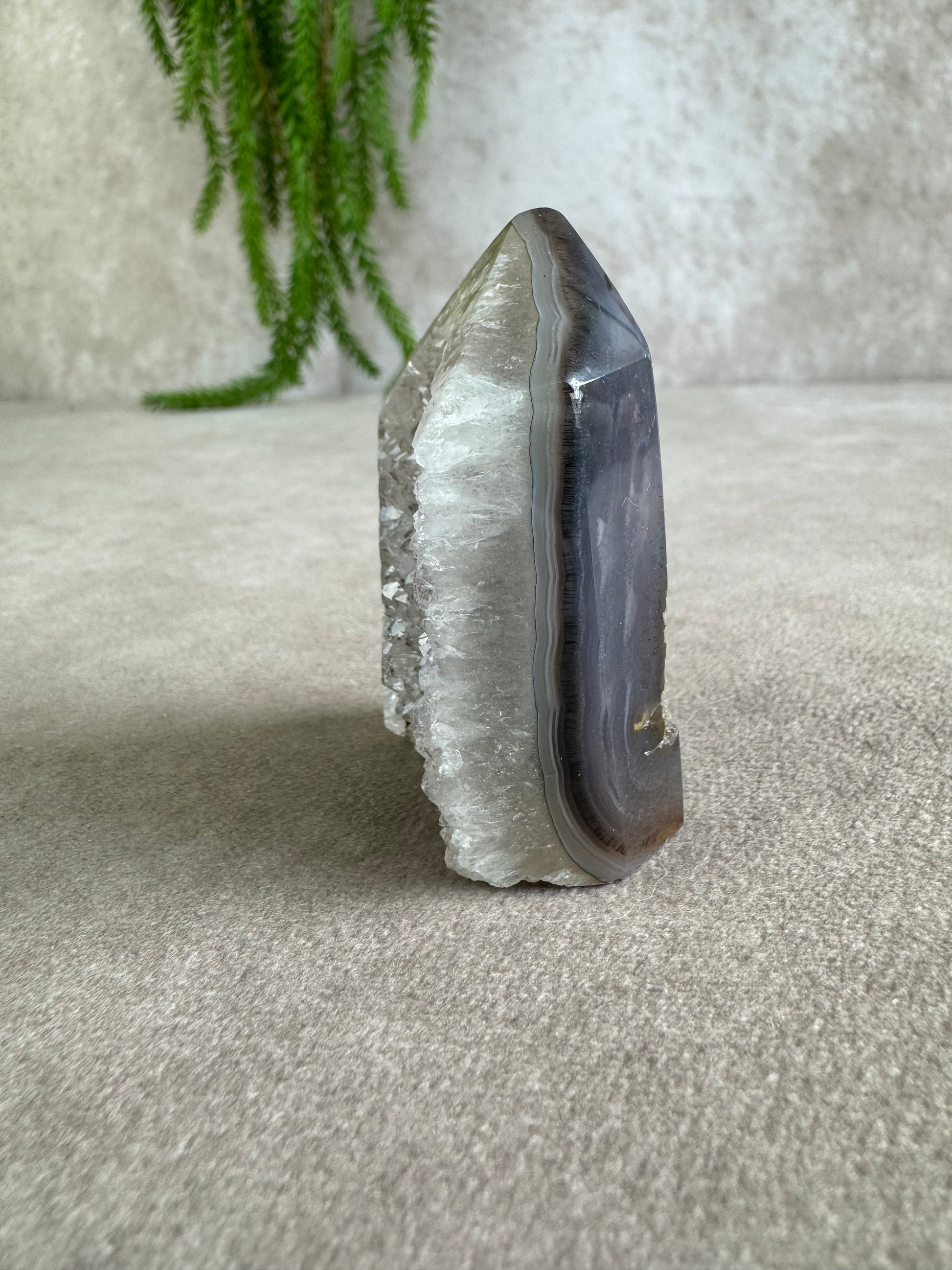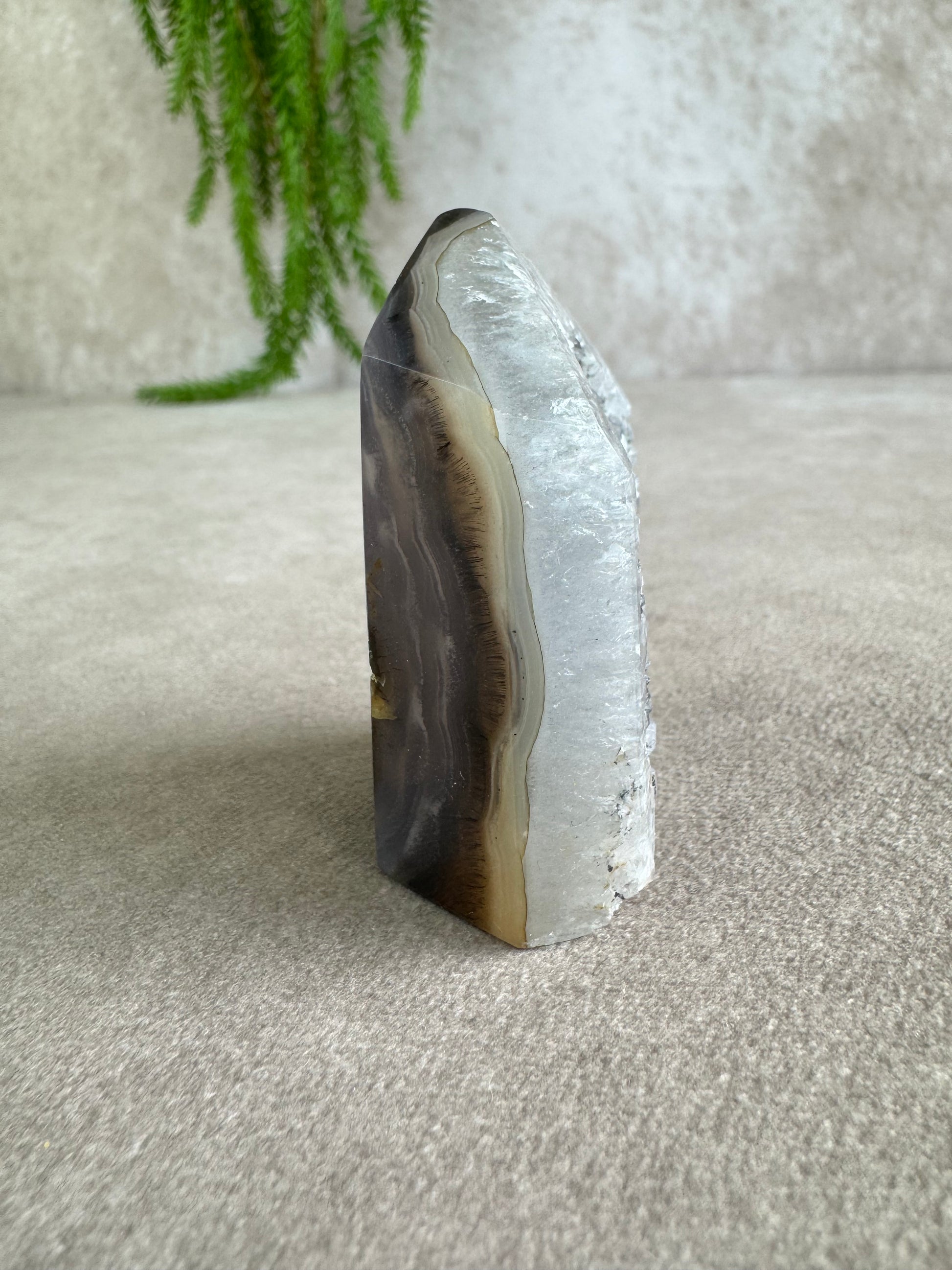 Agaat staat bekend om zijn aardende en stabiliserende werking. Het helpt om rust te vinden, negatieve energie af te voeren en innerlijke balans te herstellen. Dankzij de torenvorm wordt de energie gericht omhoog gestuurd, wat deze steen ook geschikt maakt voor meditatie, energiewerk of als krachtobject in je ruimte.