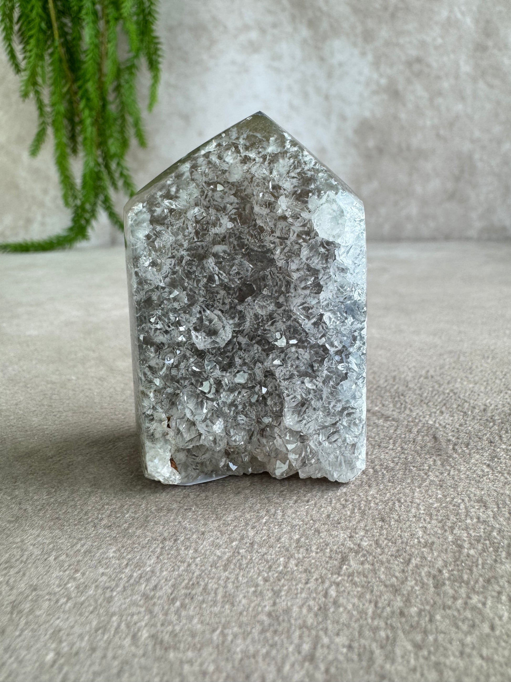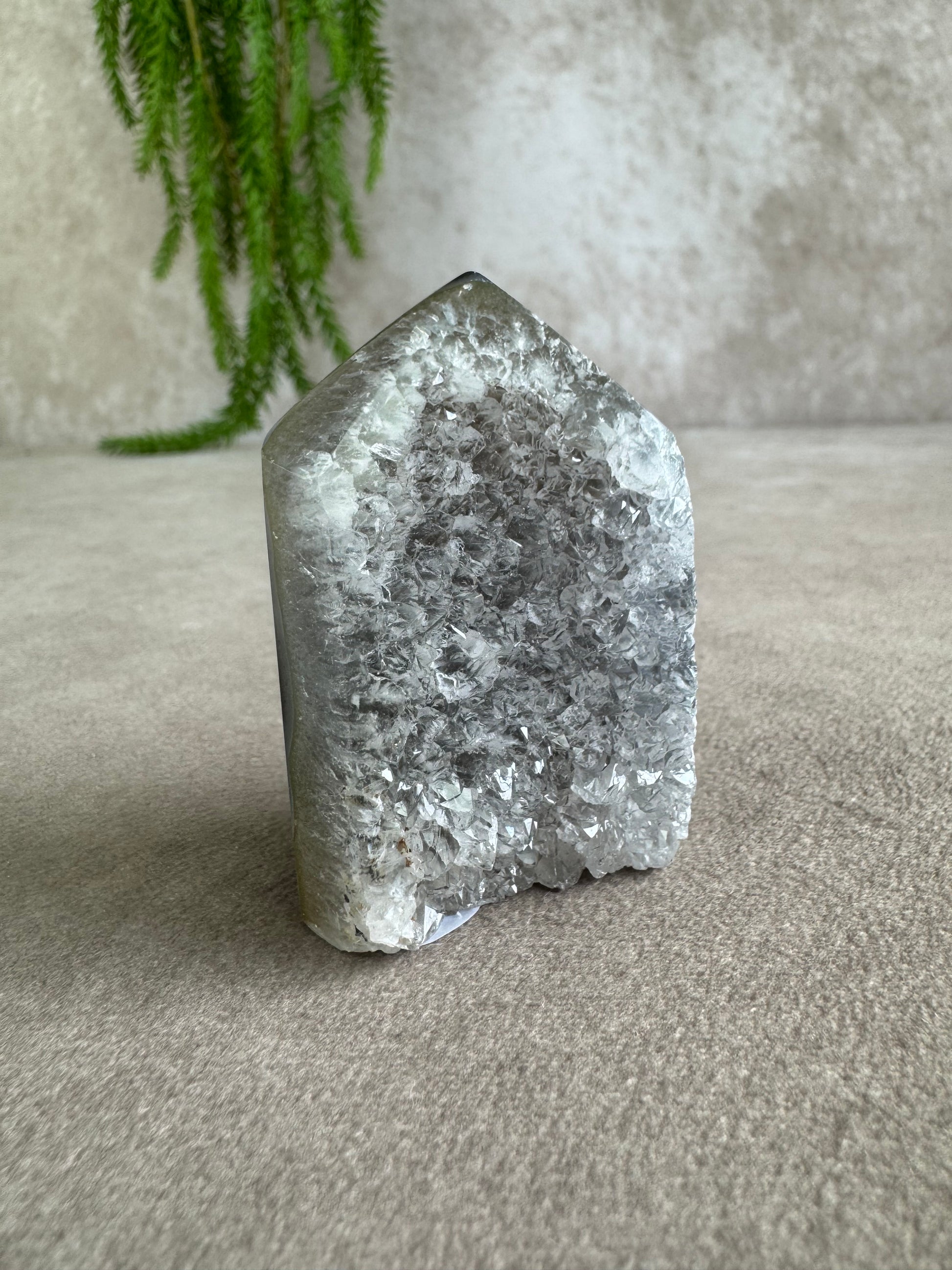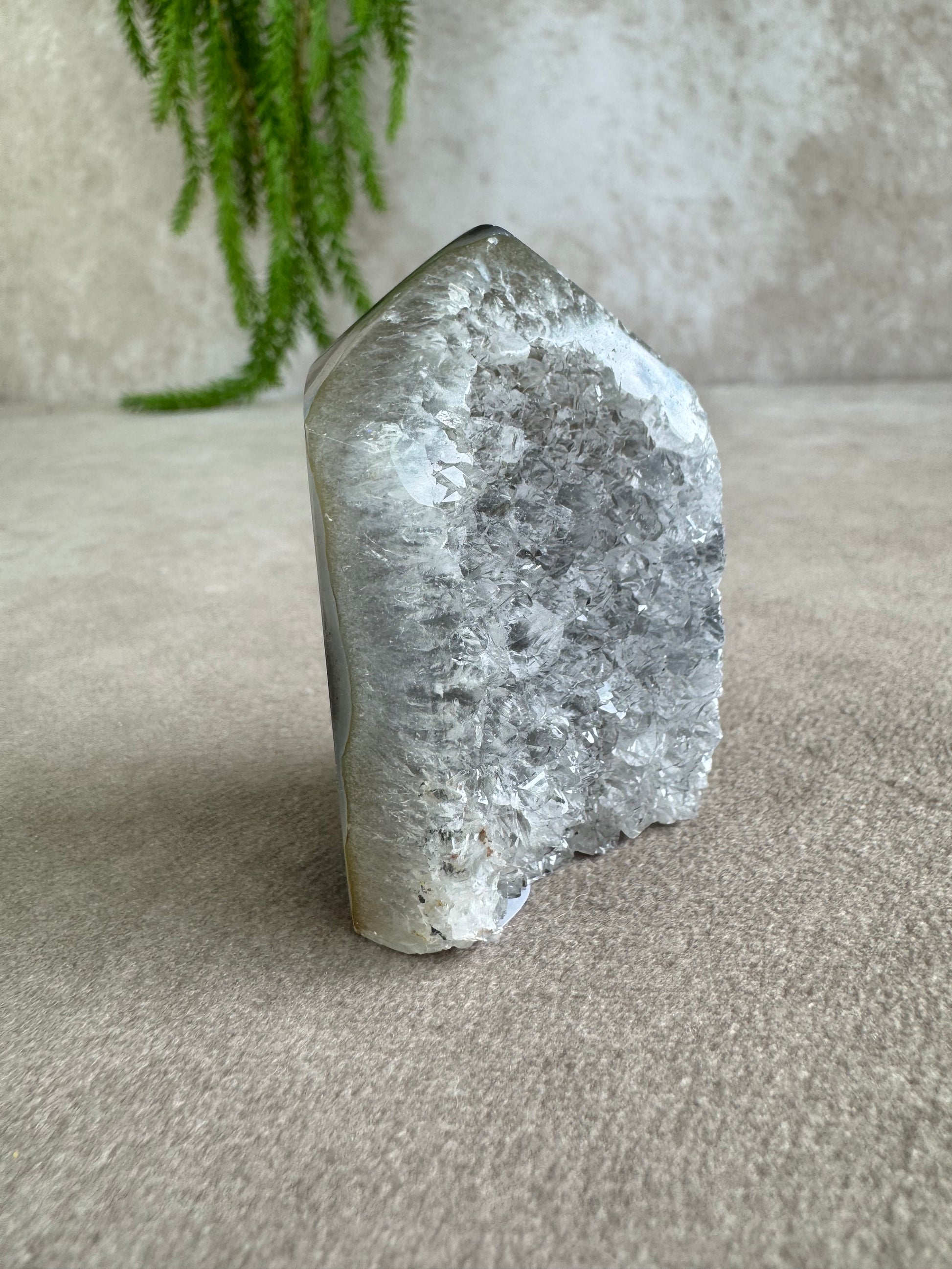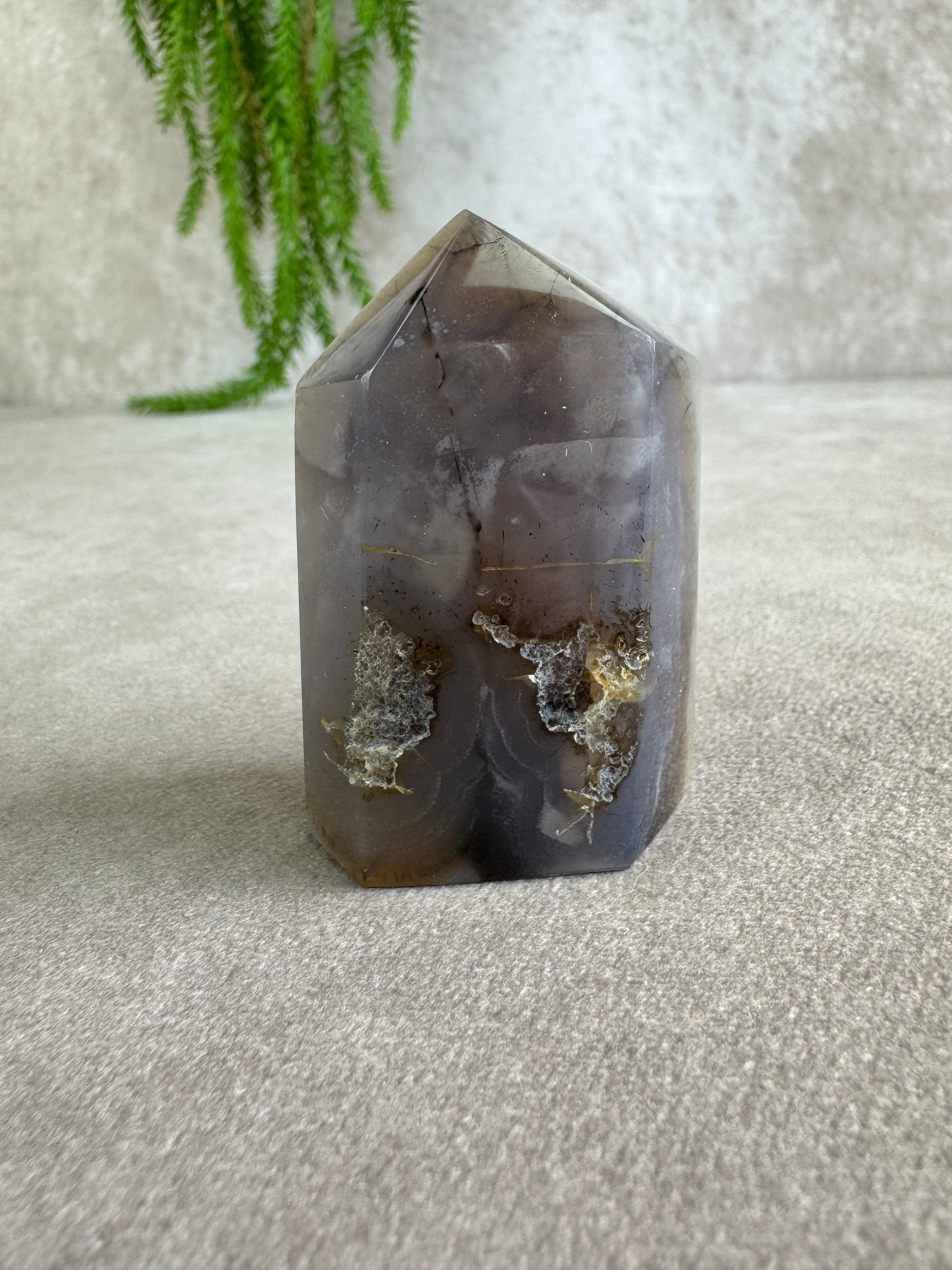 Agaat staat bekend om zijn aardende en stabiliserende werking. Het helpt om rust te vinden, negatieve energie af te voeren en innerlijke balans te herstellen. Dankzij de torenvorm wordt de energie gericht omhoog gestuurd, wat deze steen ook geschikt maakt voor meditatie, energiewerk of als krachtobject in je ruimte.