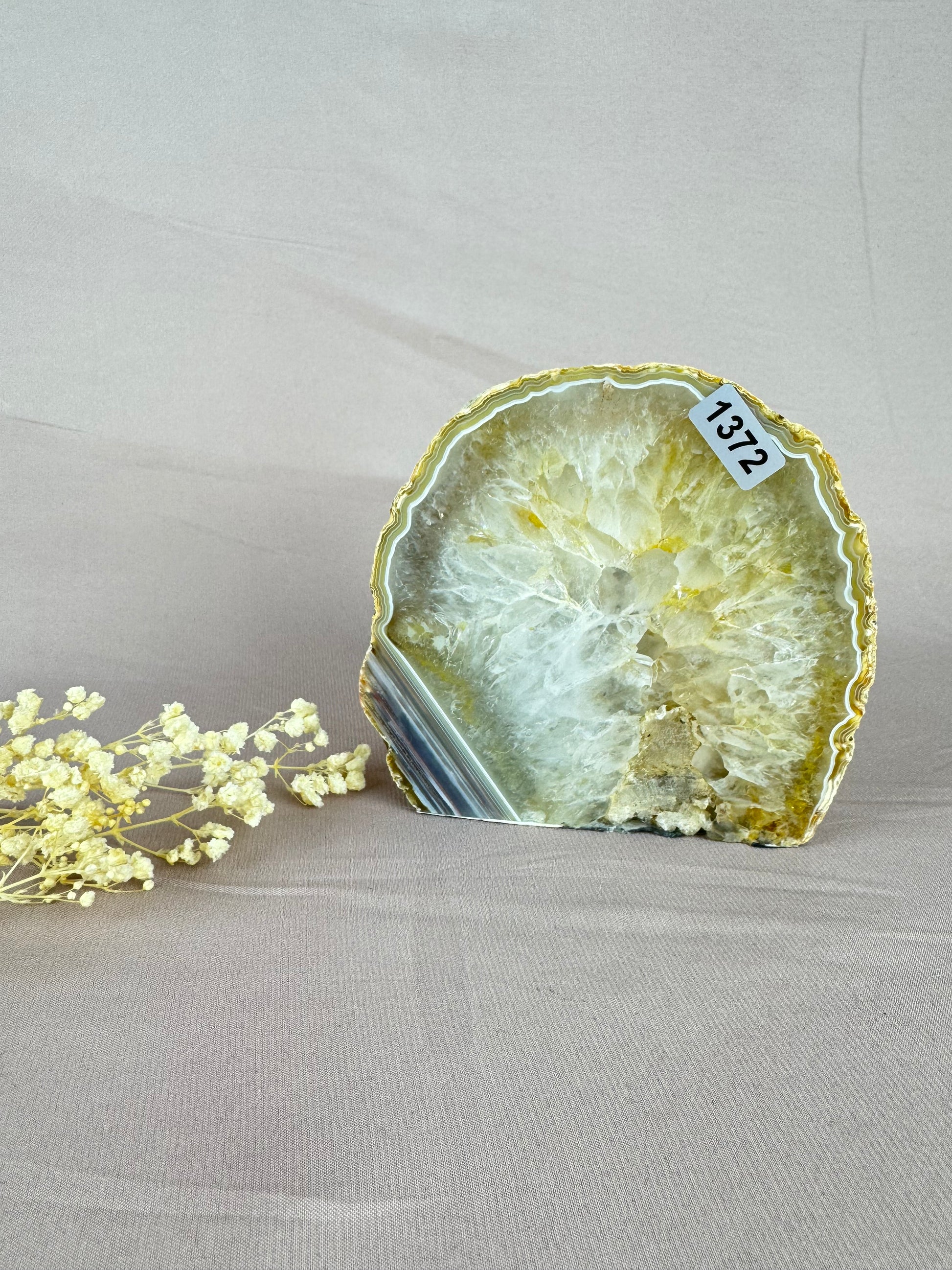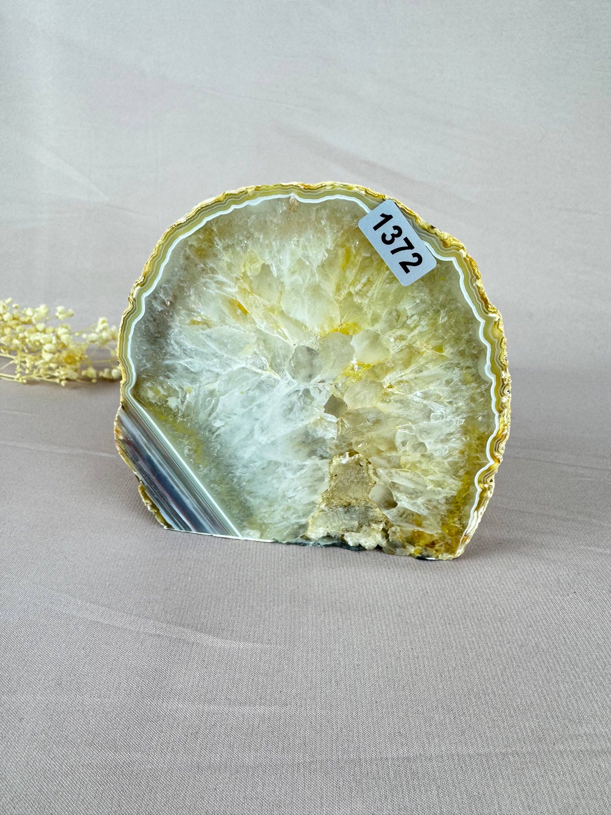 Agaat staat bekend om zijn aardende en beschermende werking, helpt bij het creëren van balans en bevordert innerlijke rust. Wanneer het kaarslicht door de steen schijnt, wordt de prachtige structuur nog beter zichtbaar, wat zorgt voor een betoverend effect.