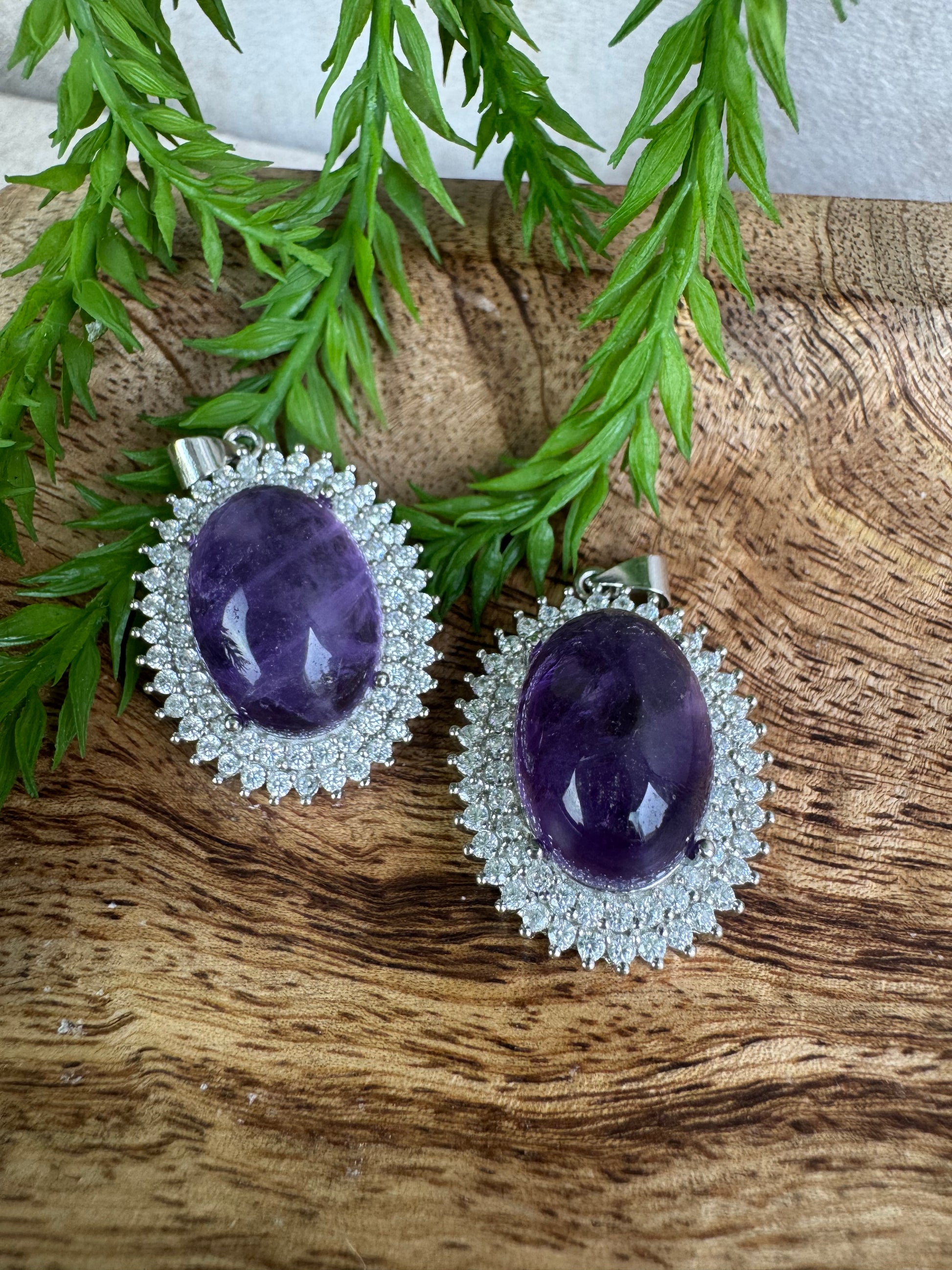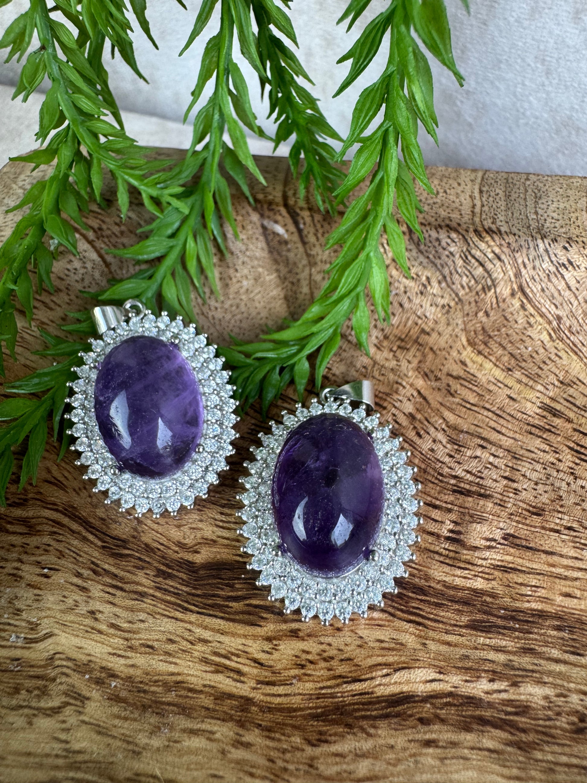 Deze schitterende ovale amethist hanger van 3 x 2 cm is een stijlvolle combinatie van natuurlijke schoonheid en verfijnd vakmanschap. De diepe paarse amethist is gezet in een gedetailleerde sterling zilveren rand (925), versierd met fijne steentjes die de hanger een luxe en sprankelende uitstraling geven.