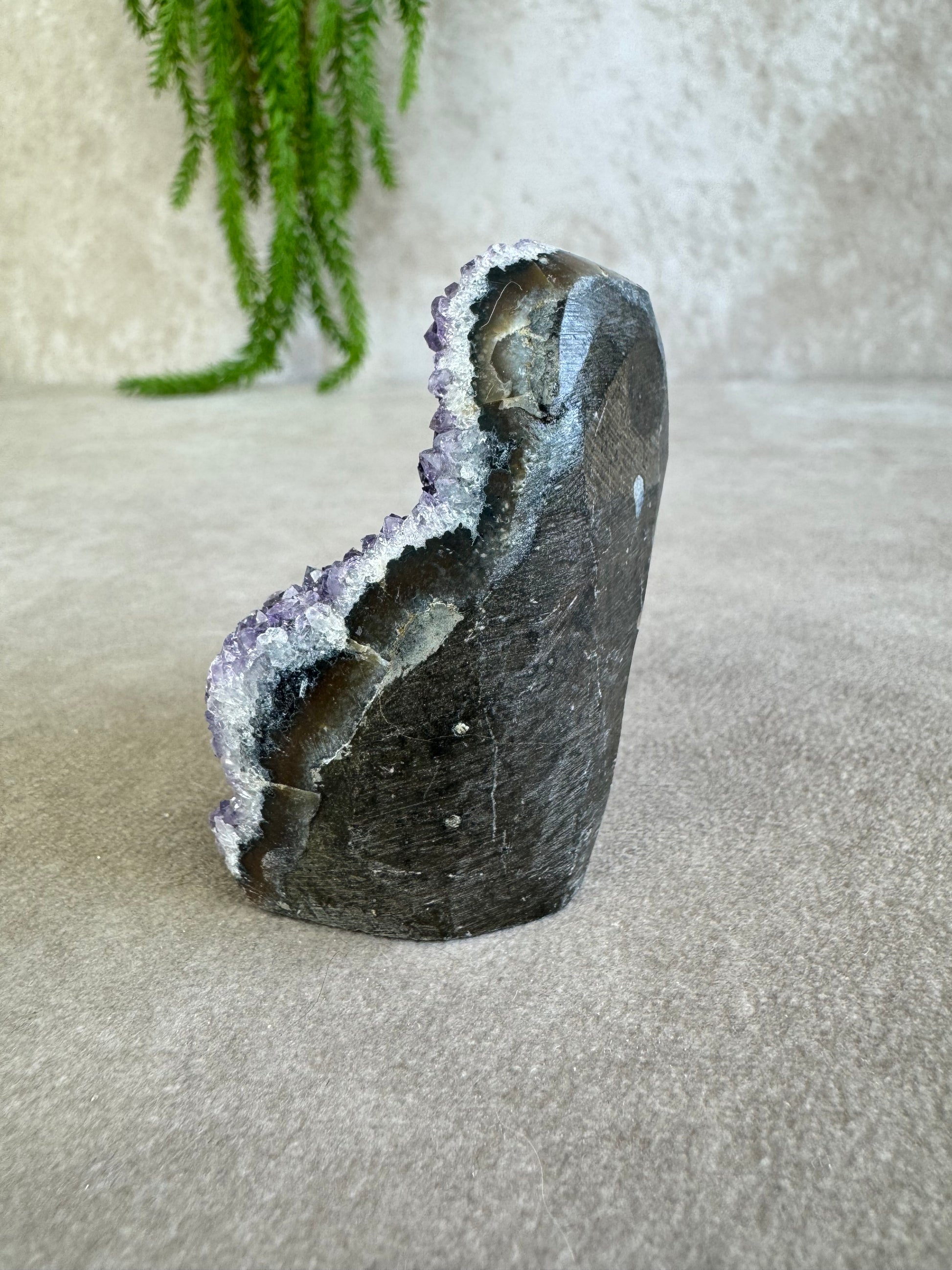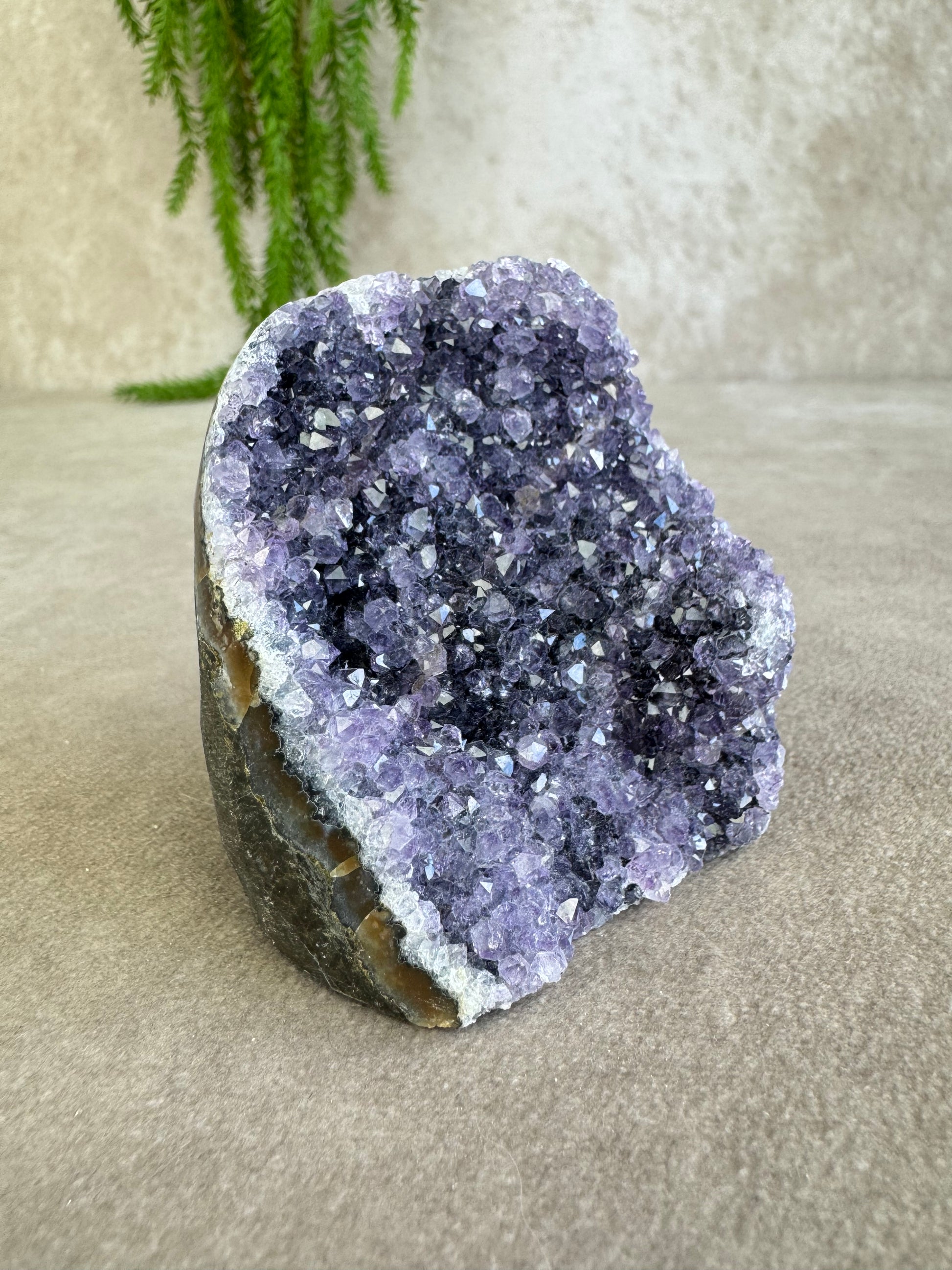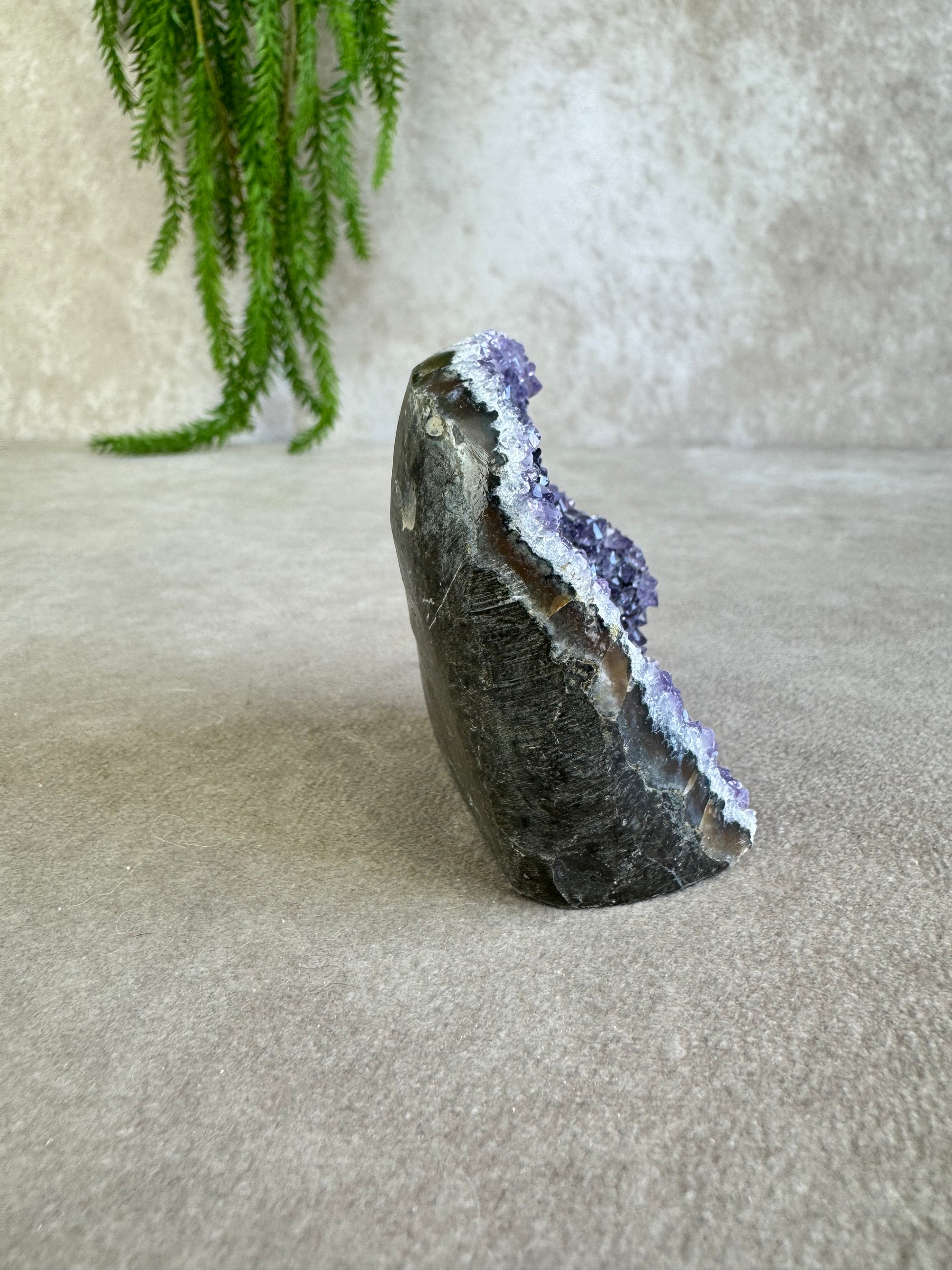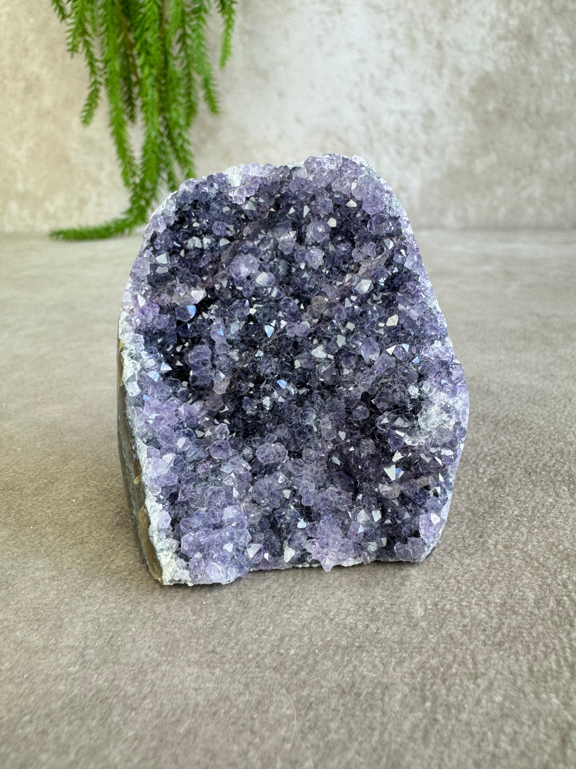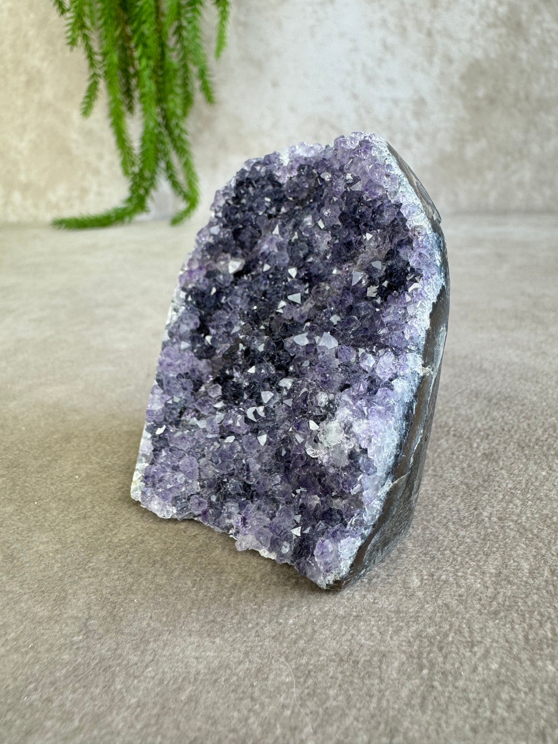 Amethist staat bekend om zijn kalmerende en zuiverende werking, ideaal voor ontspanning, meditatie of als sfeervol decoratiestuk.