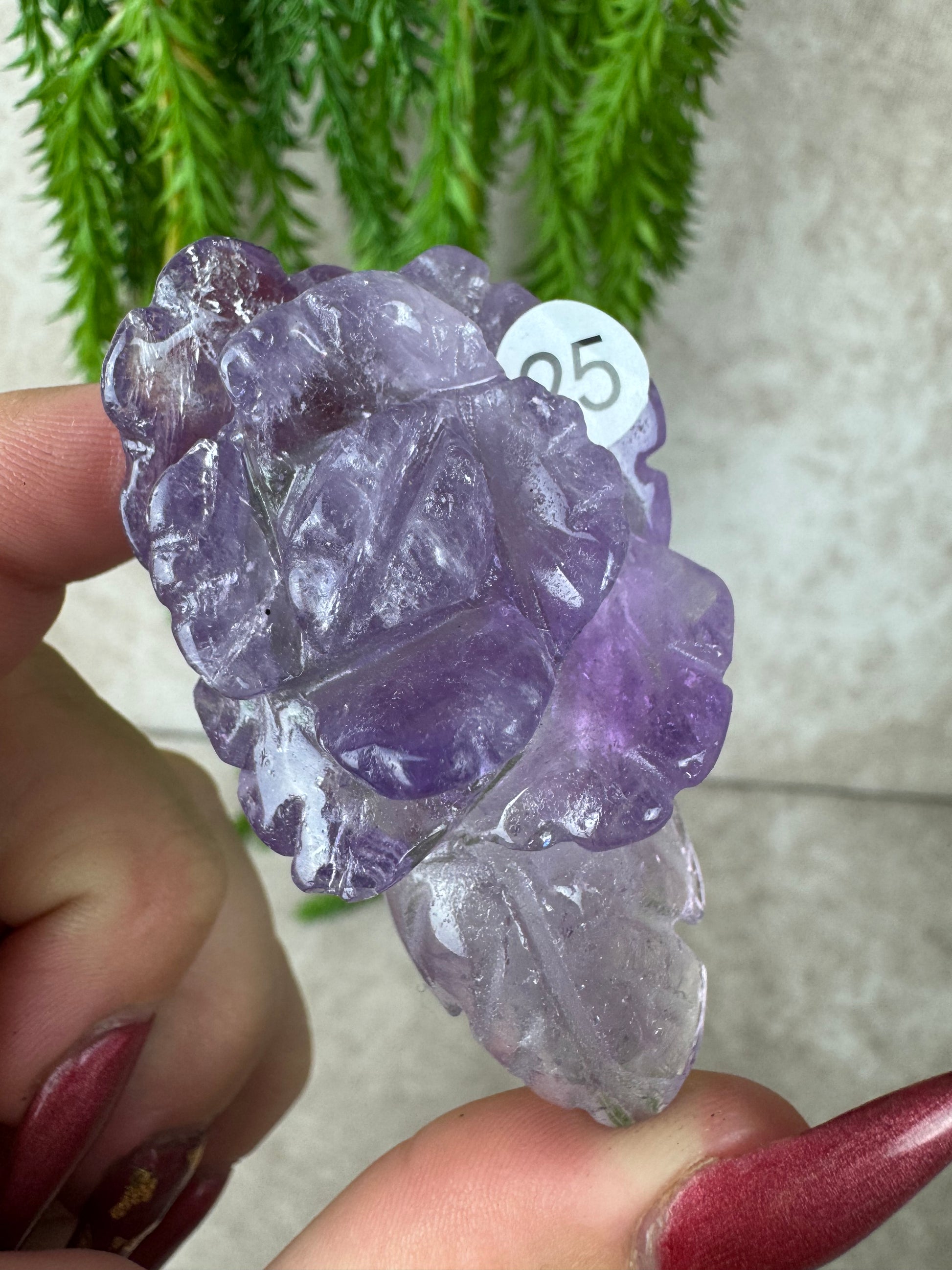 Amethist staat bekend om zijn rustgevende en zuiverende werking. In roosvorm symboliseert dit kristal daarnaast liefde, schoonheid en innerlijke harmonie.