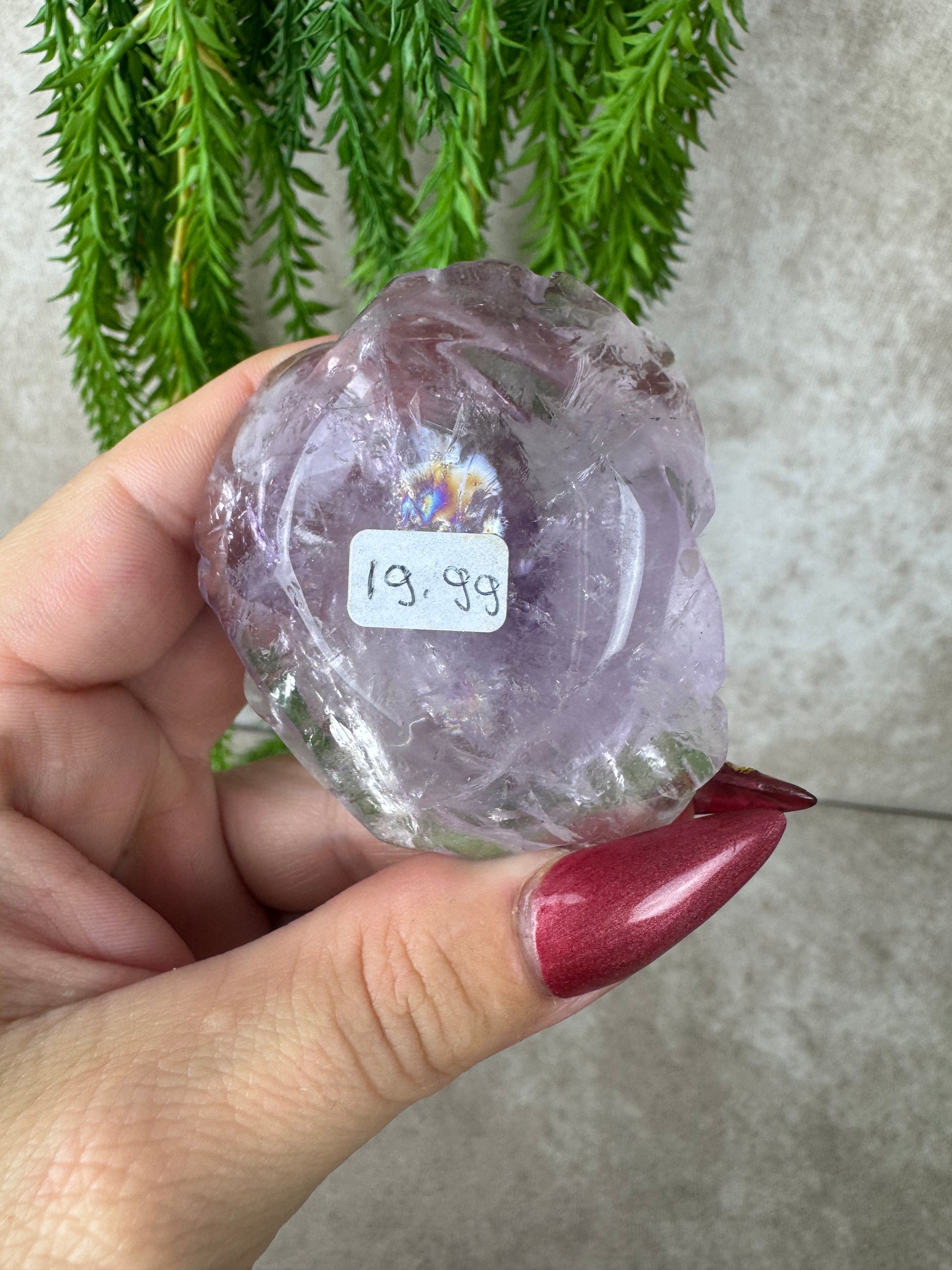 Amethist staat bekend om zijn rustgevende en zuiverende werking. In roosvorm symboliseert dit kristal daarnaast liefde, schoonheid en innerlijke harmonie.