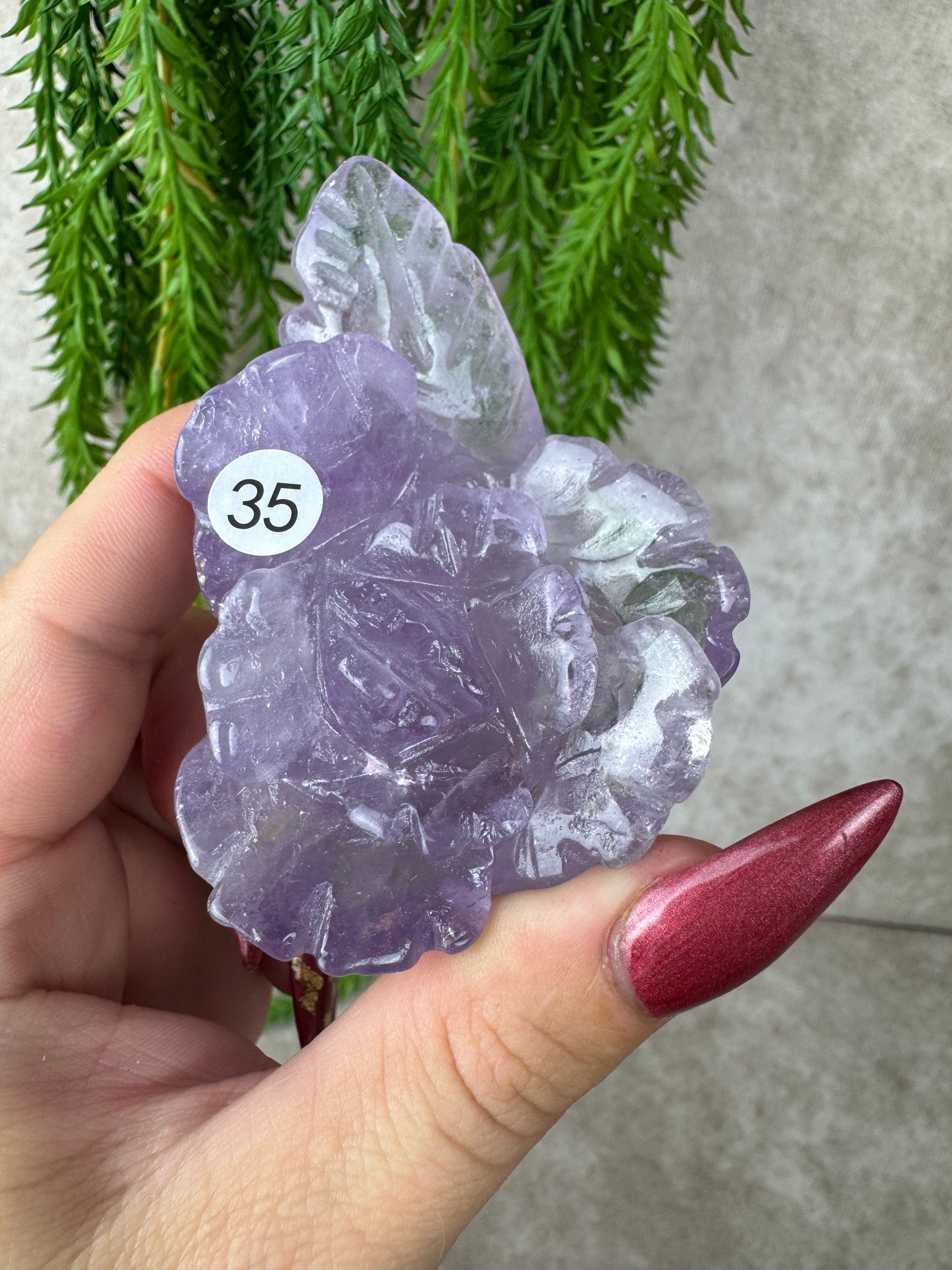 Amethist staat bekend om zijn rustgevende en zuiverende werking. In roosvorm symboliseert dit kristal daarnaast liefde, schoonheid en innerlijke harmonie.