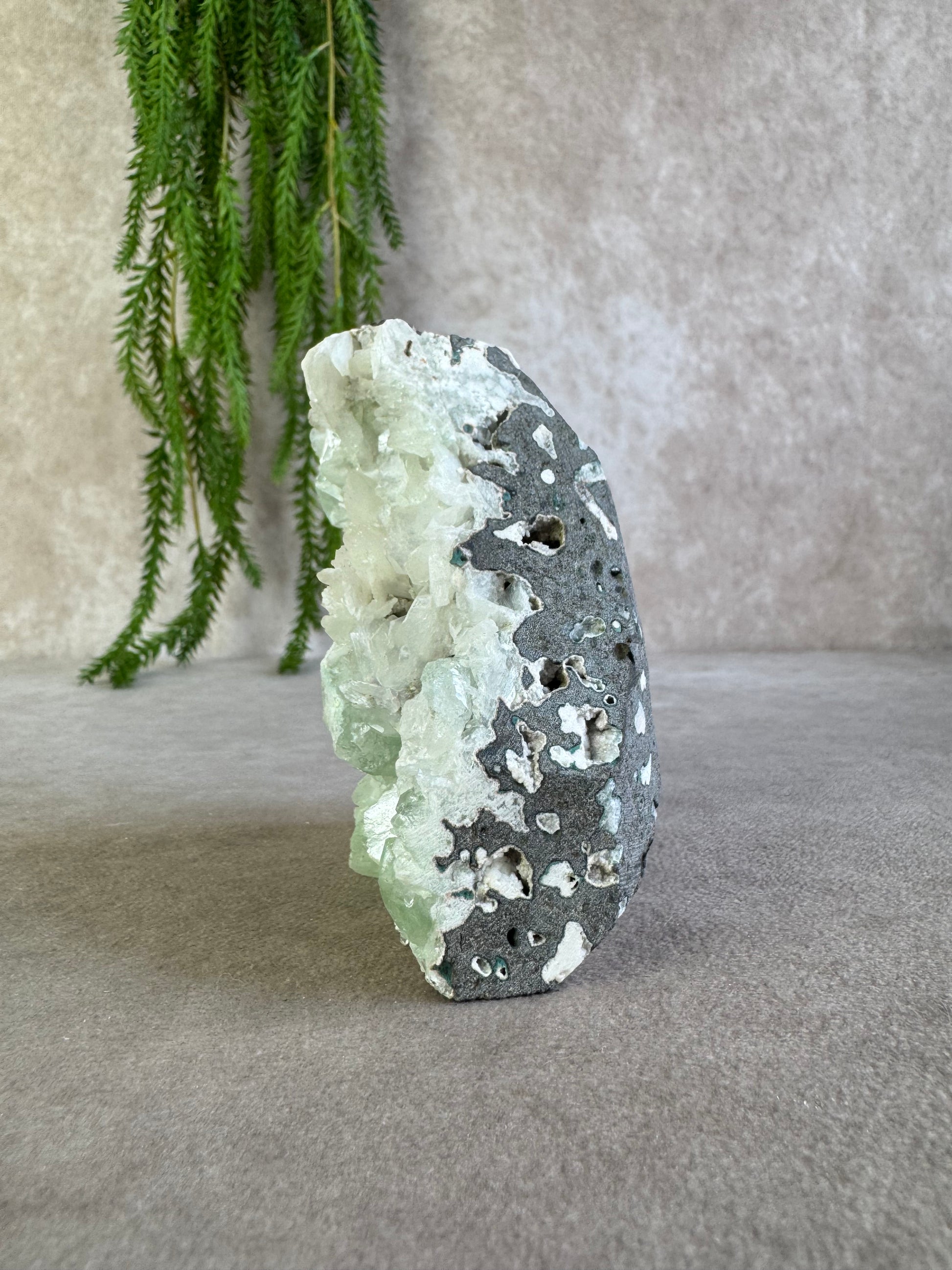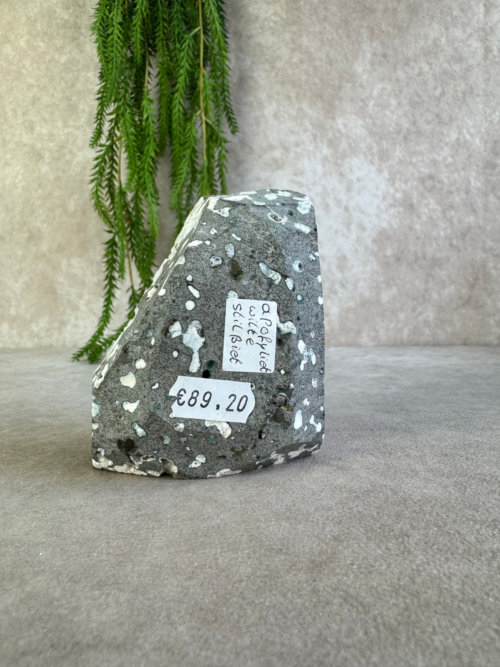 Apofyliet staat bekend om zijn zuiverende en spirituele energie, die helpt bij rust, helderheid en verbinding. Stilbiet voegt daar een zachte en liefdevolle trilling aan toe, die balans en innerlijke rust bevordert.