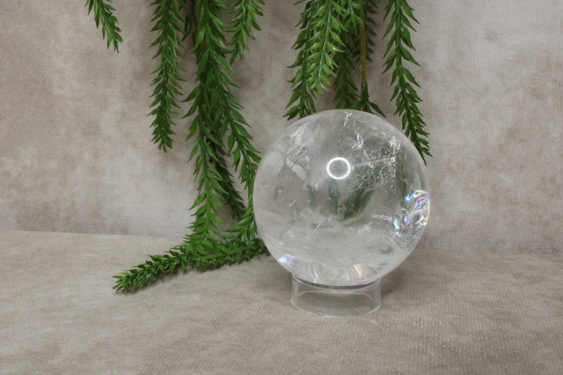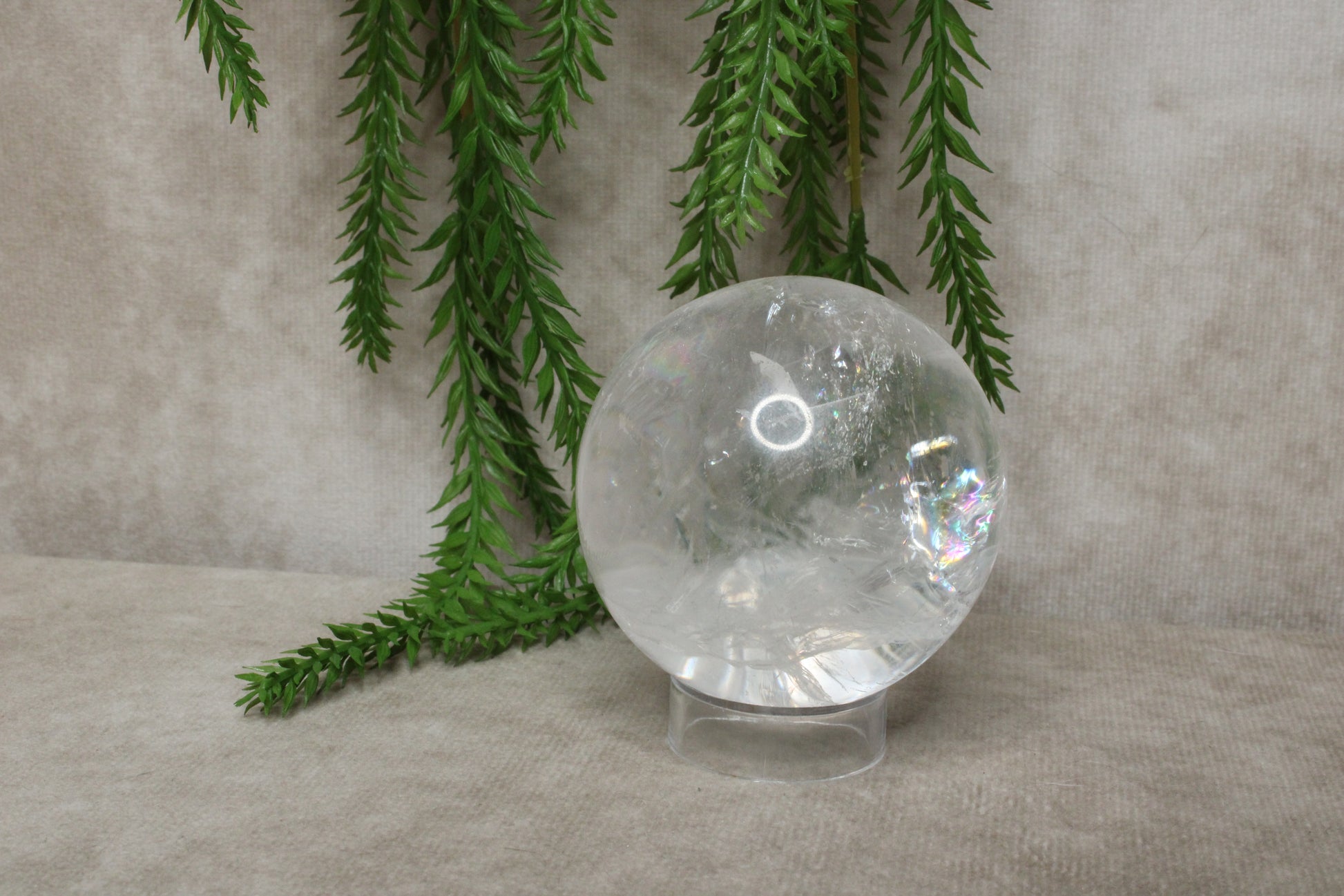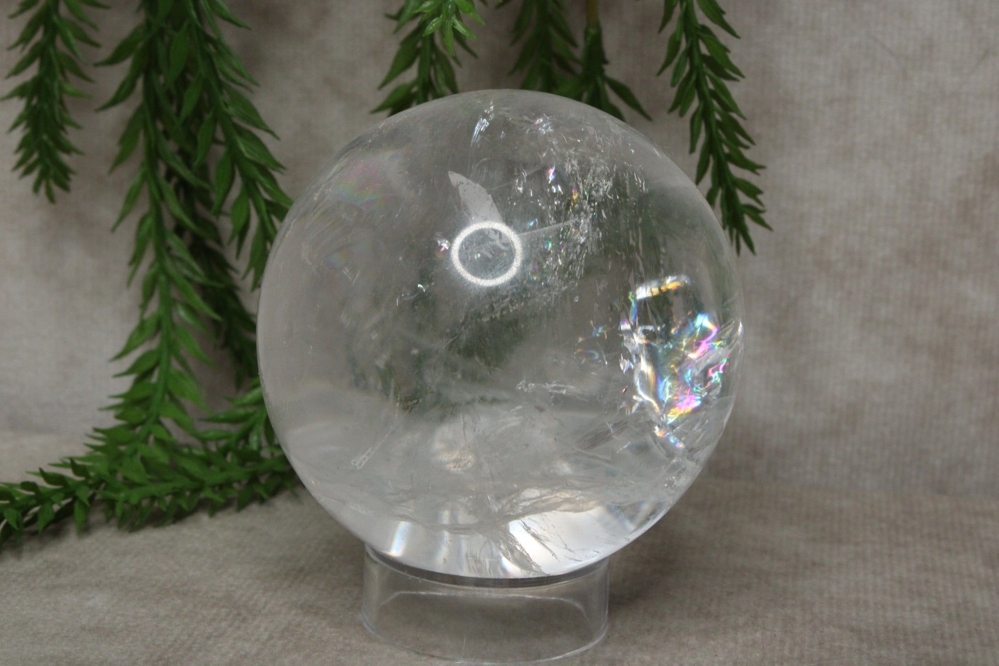 Deze bergkristal bol van hoge kwaliteit is uitzonderlijk helder en zuiver. Met een diameter van 6,2 cm en een gewicht van 326 gram is het een mooi en stevig formaat. De transparantie van de steen zorgt voor een heldere uitstraling en laat het licht prachtig door de bol spelen.