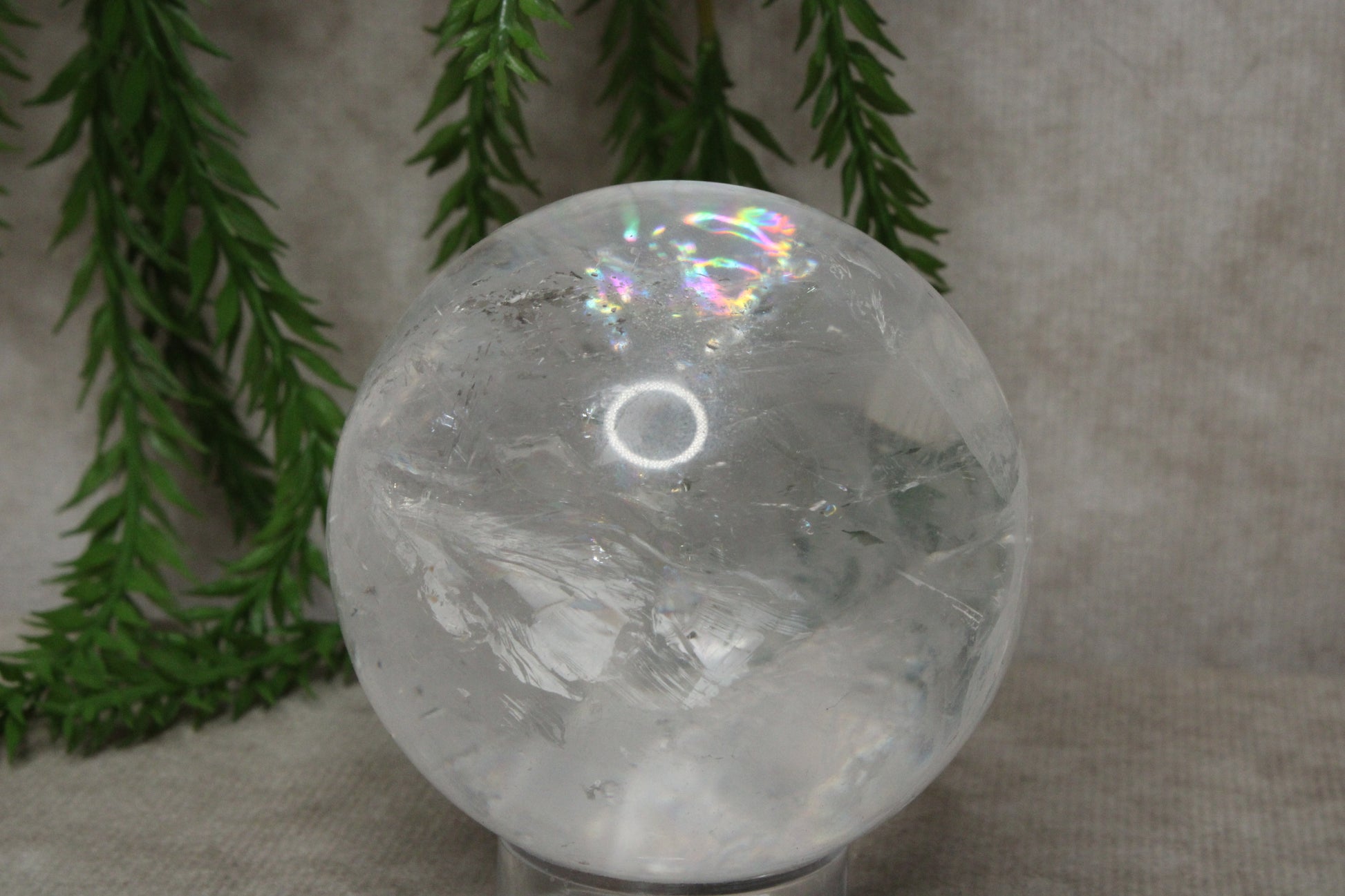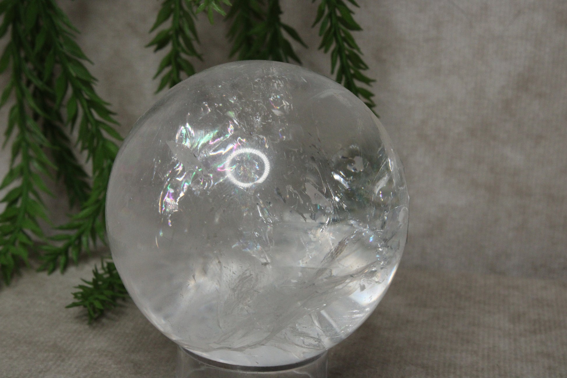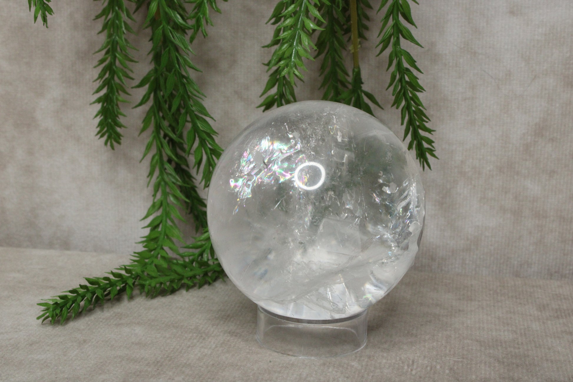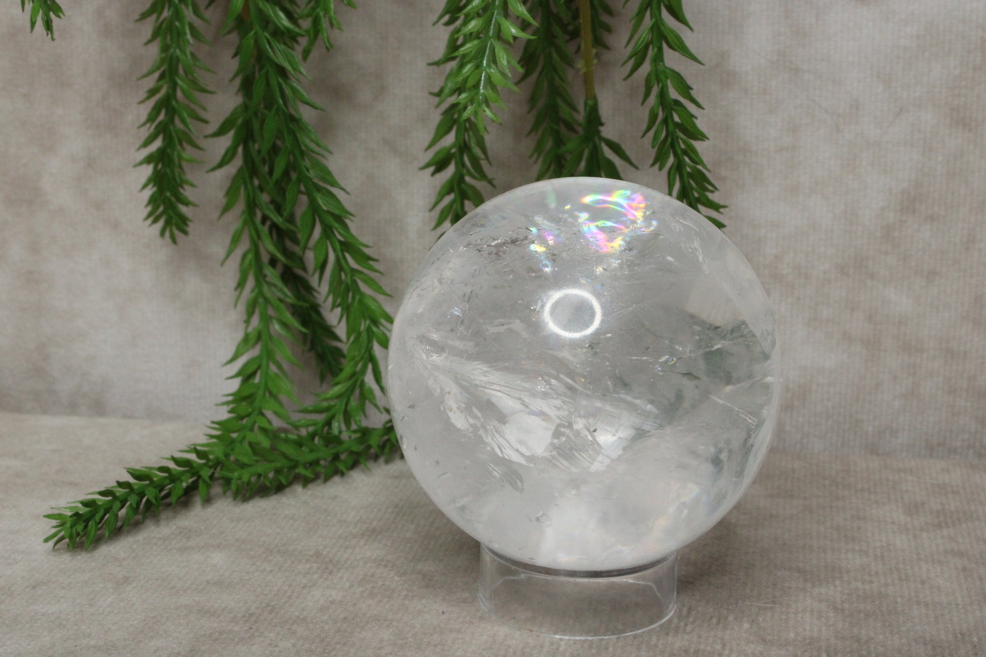 Deze bergkristal bol van hoge kwaliteit is uitzonderlijk helder en zuiver. Met een diameter van 6,2 cm en een gewicht van 326 gram is het een mooi en stevig formaat. De transparantie van de steen zorgt voor een heldere uitstraling en laat het licht prachtig door de bol spelen.