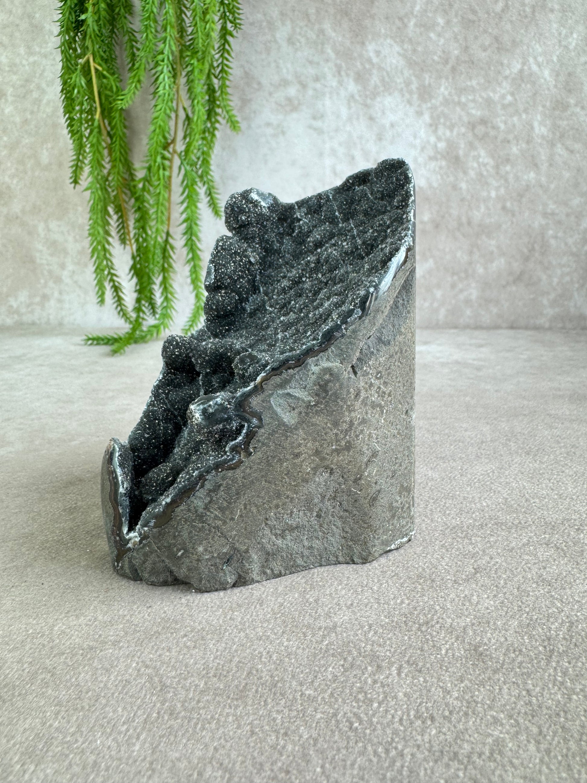 Black amethist combineert de rustgevende en zuiverende werking van gewone amethist met een extra aardende energie door de diepere kleur. Dit maakt het kristal ideaal voor ontspanning, bescherming en het creëren van balans in je ruimte.