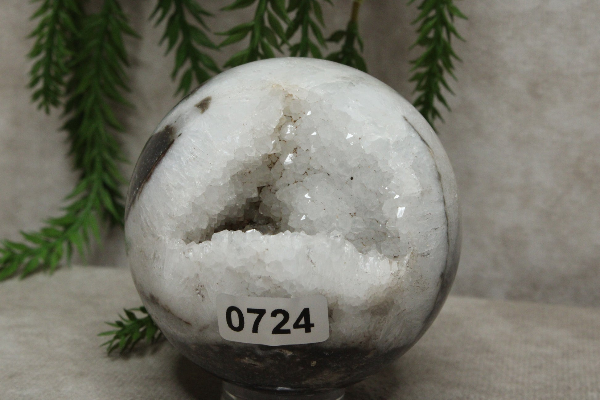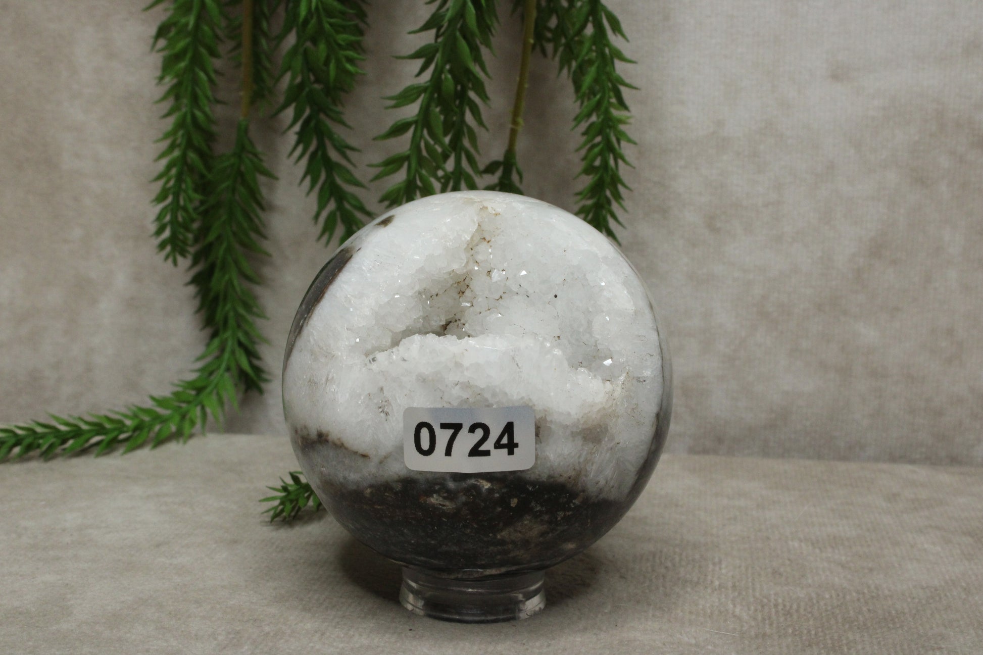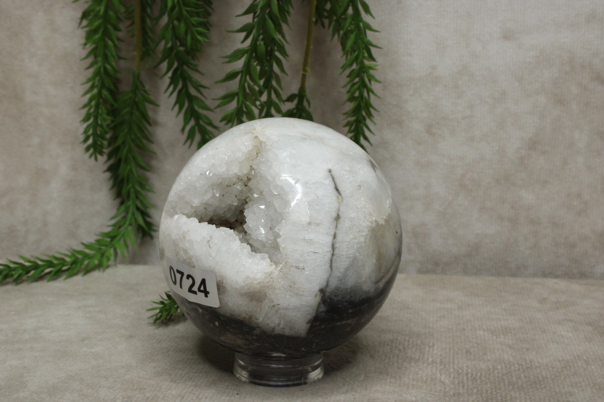 Deze prachtige agaat bol is een echte blikvanger dankzij de rijke druzy die mooi zichtbaar is in de steen. Met een gewicht van 364 gram en een diameter van 6,5 cm is het een fijn en handzaam formaat dat toch direct opvalt. De natuurlijke patronen en glinstering van de druzy geven de bol een levendige en unieke uitstraling.