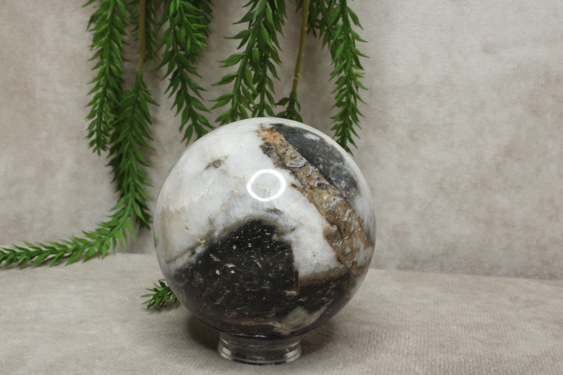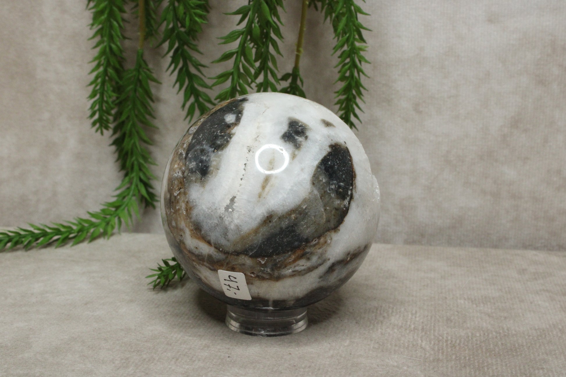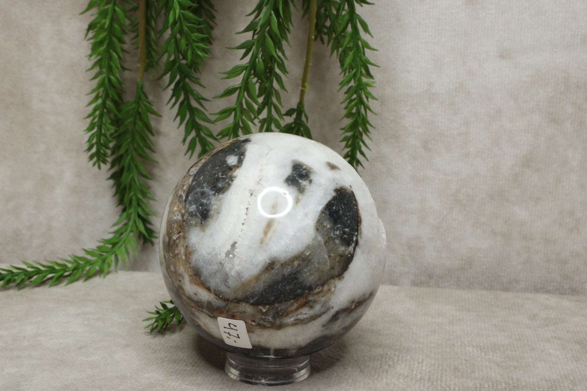 Deze prachtige agaat bol is een echte blikvanger dankzij de rijke druzy die mooi zichtbaar is in de steen. Met een gewicht van 364 gram en een diameter van 6,5 cm is het een fijn en handzaam formaat dat toch direct opvalt. De natuurlijke patronen en glinstering van de druzy geven de bol een levendige en unieke uitstraling.