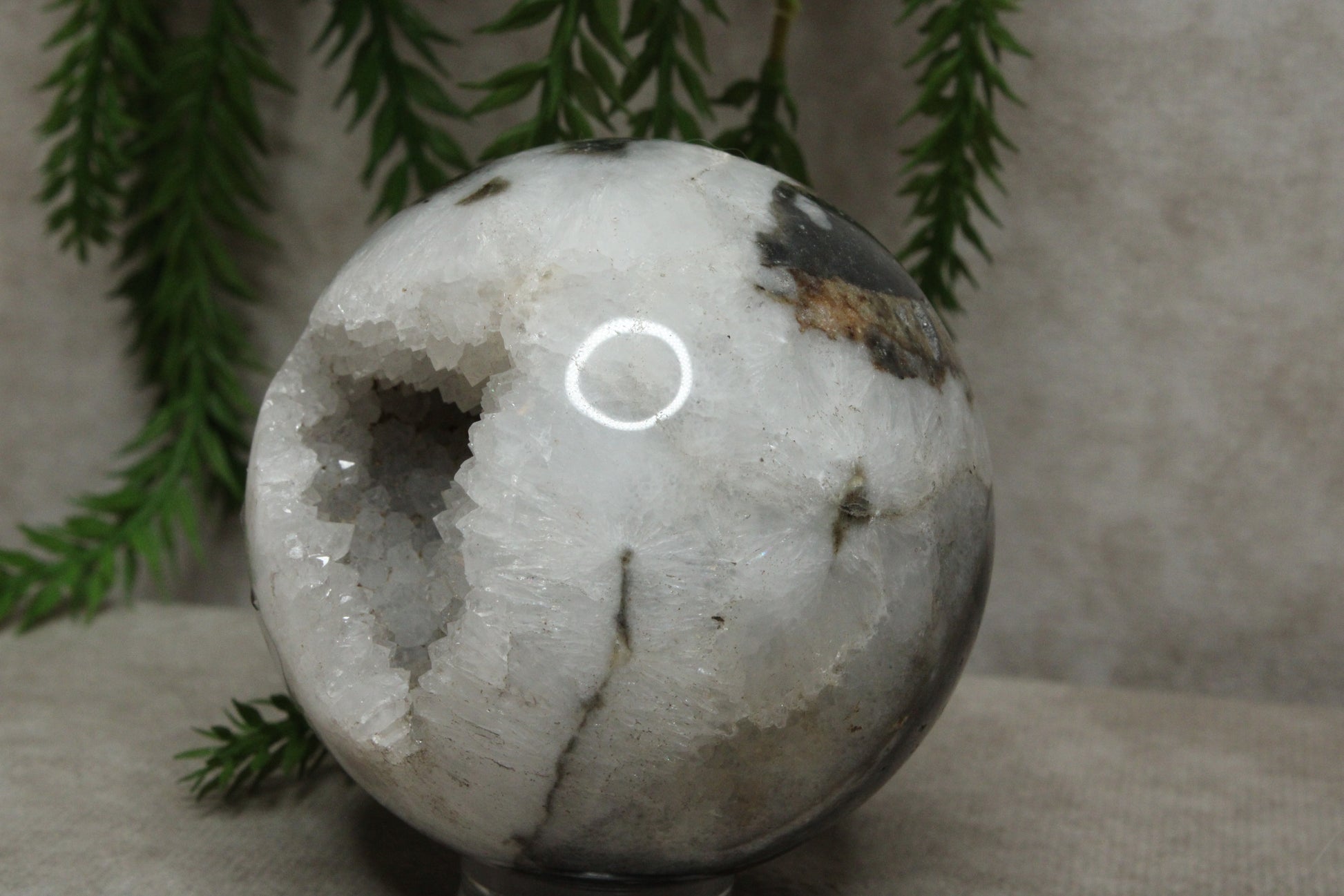 Agaat staat bekend om zijn rustgevende werking en wordt vaak geassocieerd met stabiliteit en bescherming. De druzy voegt een zachte, sprankelende energie toe en maakt deze bol extra bijzonder. Een mooie steen om neer te zetten in huis, op een altaar of als speciaal stuk in een edelstenencollectie.