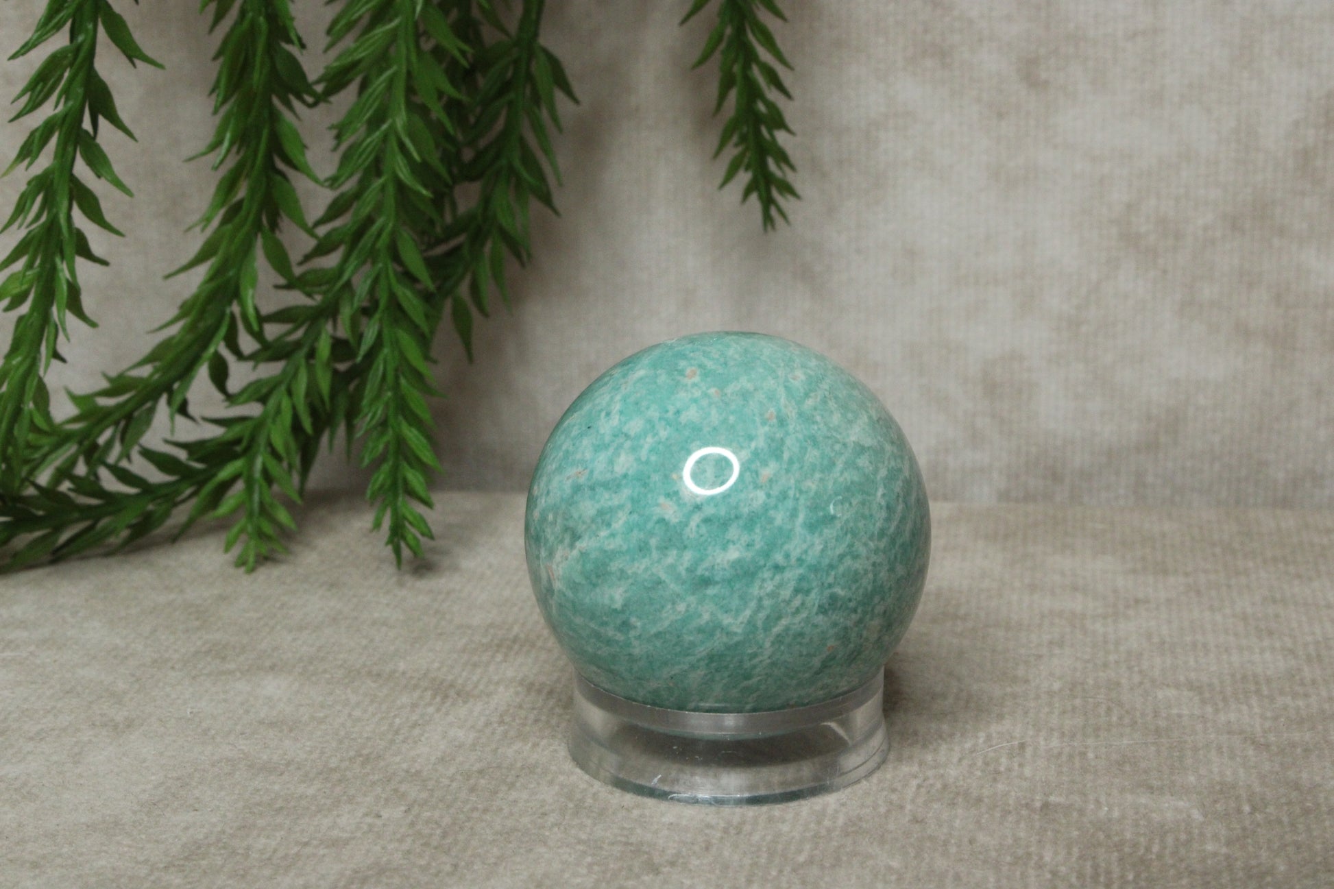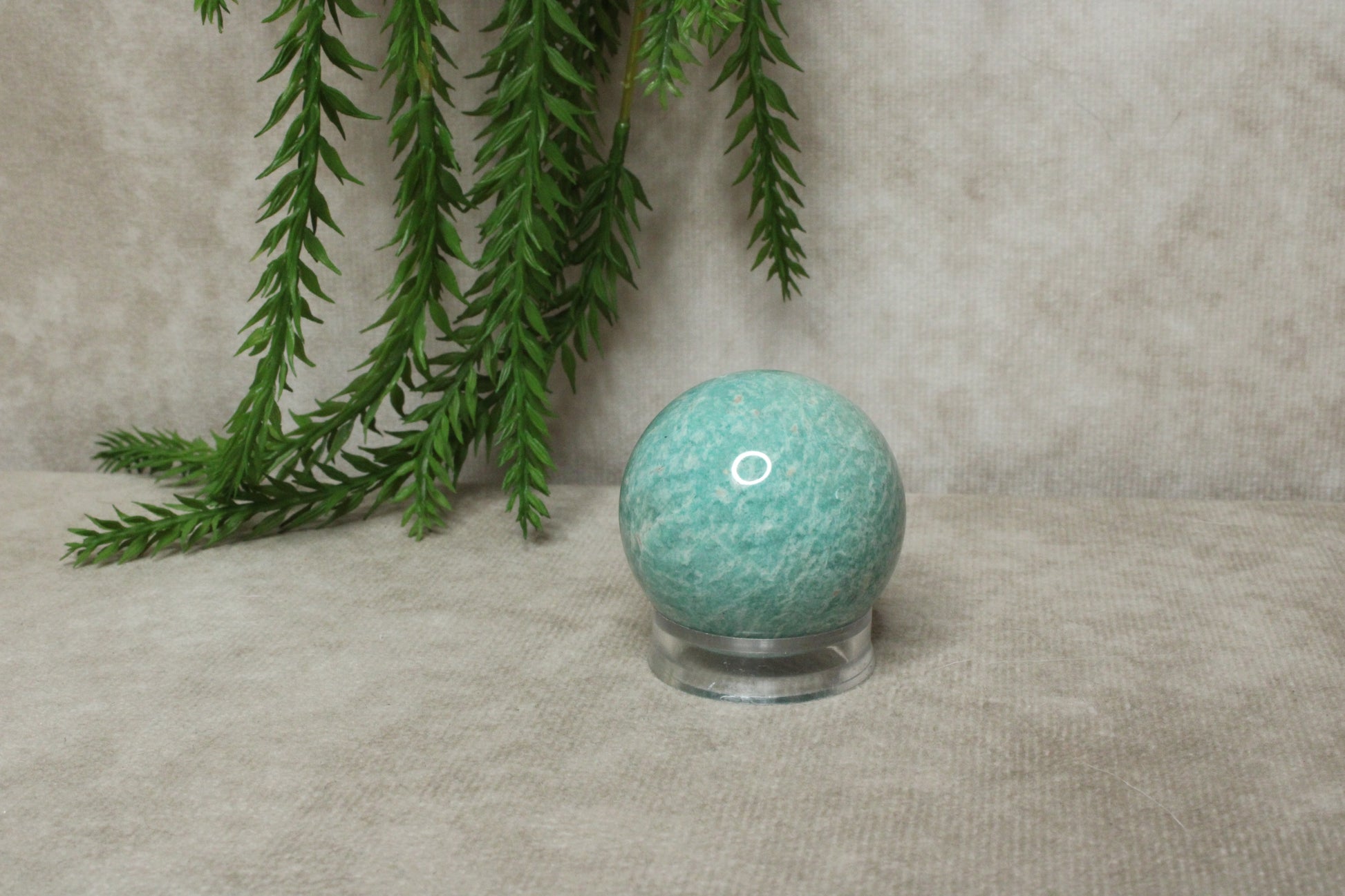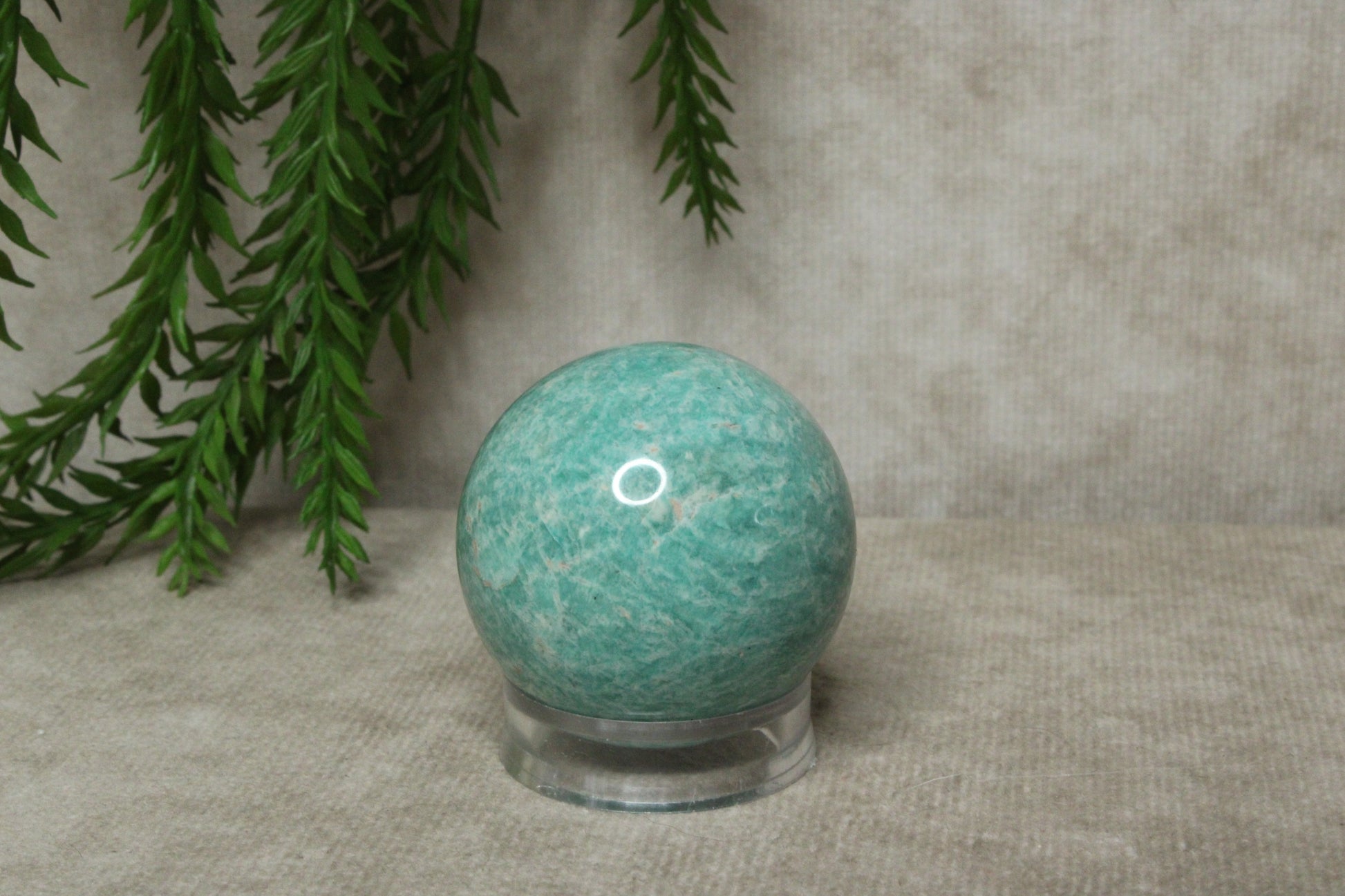 Amazoniet wordt vaak geassocieerd met rust, balans en het uiten van gevoelens. De steen kan helpen om spanning los te laten en een harmonieuze sfeer te creëren. Door de bolvorm wordt de energie gelijkmatig verspreid, wat hem fijn maakt om neer te zetten op een bureau, nachtkastje of meditatieplek.