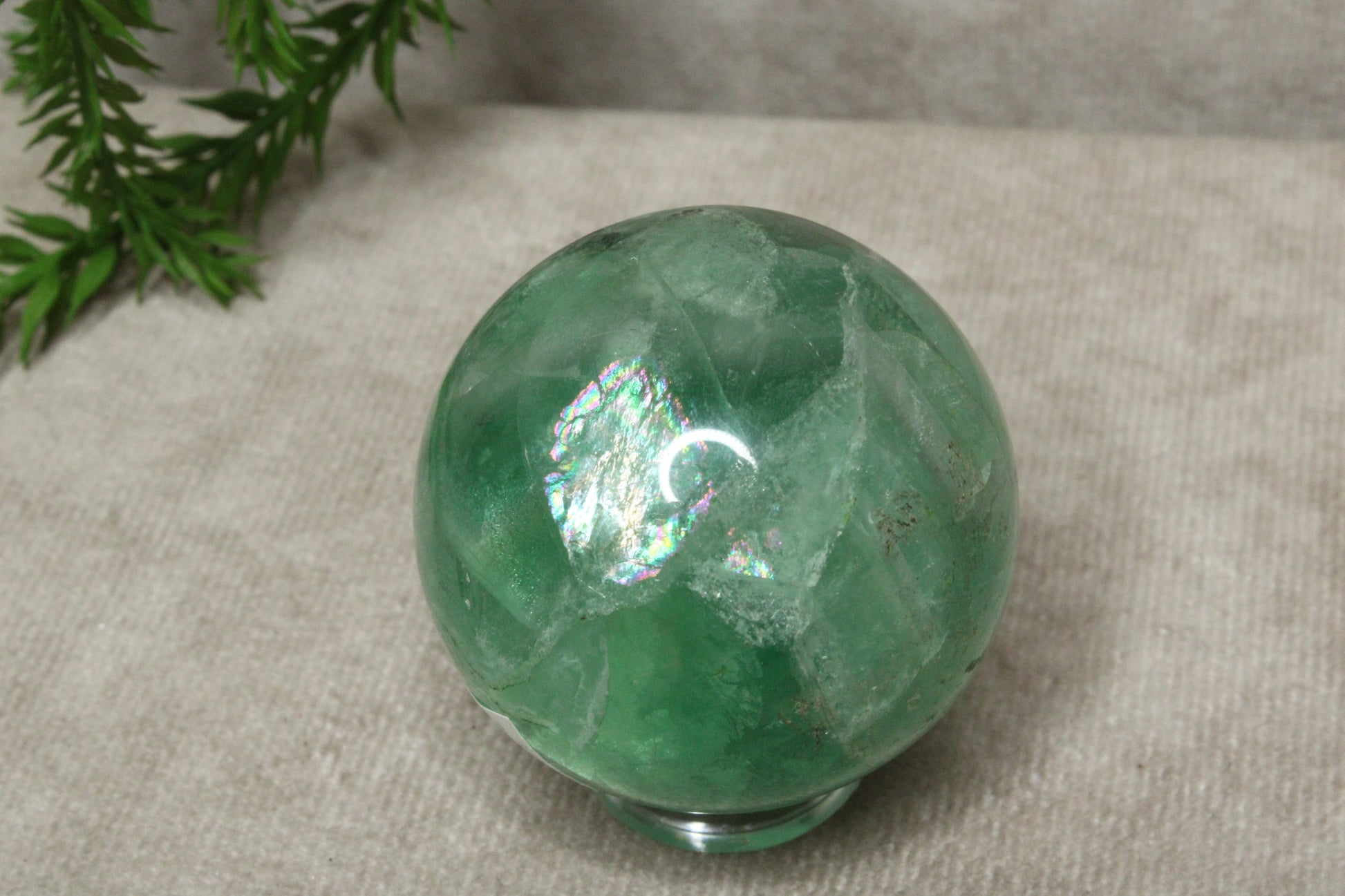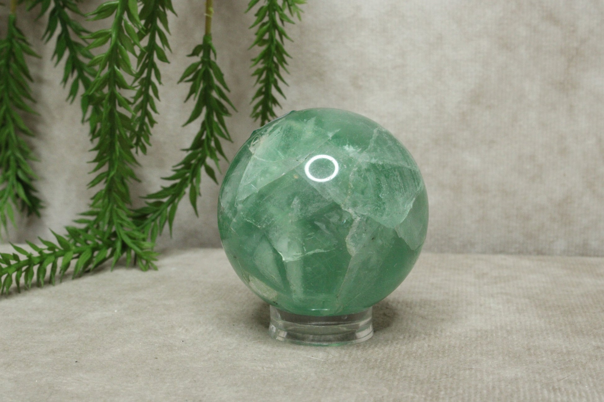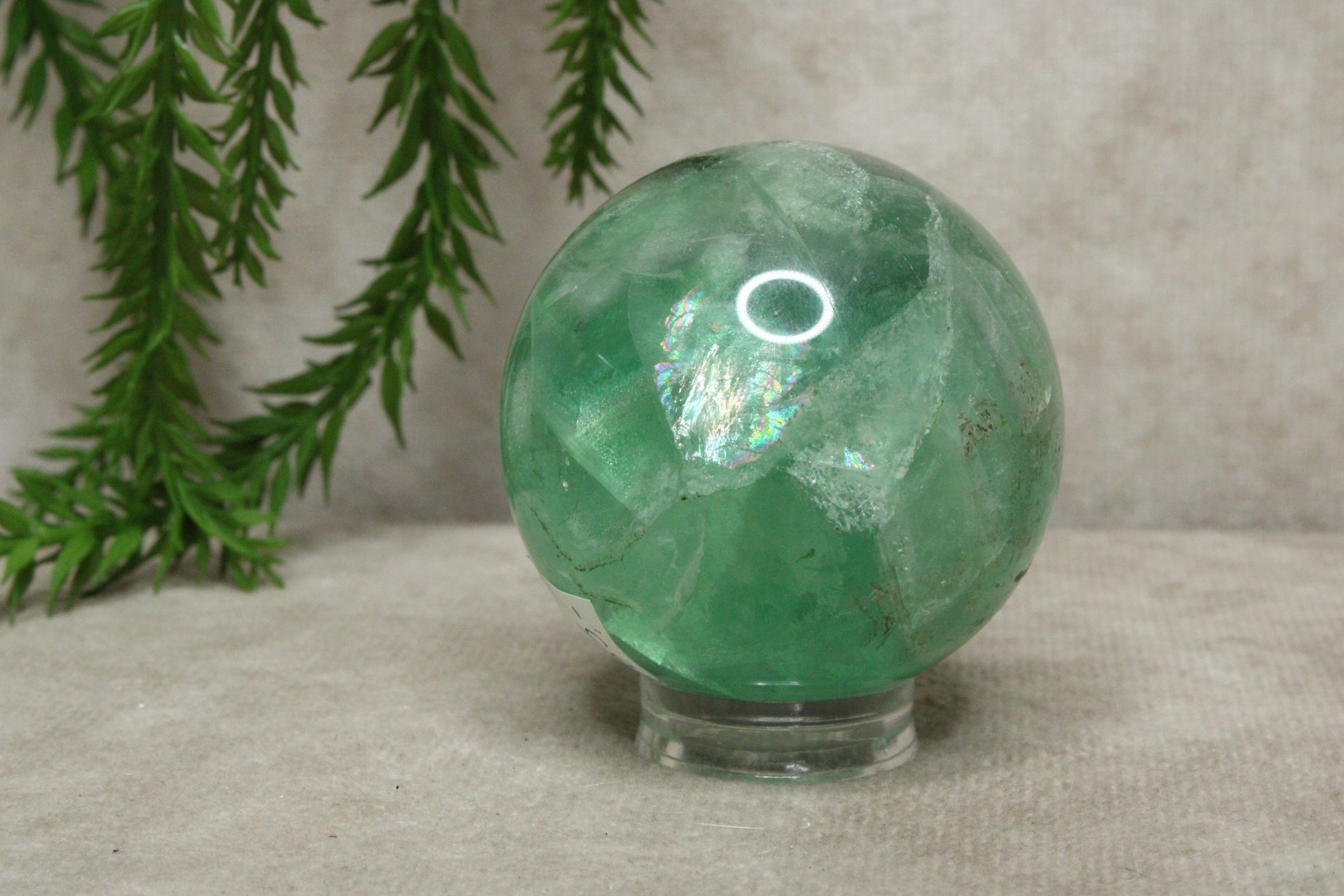 Groene fluoriet wordt vaak geassocieerd met helderheid, focus en rust in het hoofd. De steen kan helpen bij het ordenen van gedachten en het creëren van een rustige sfeer. Deze bol is fijn om neer te zetten op een bureau, studeerplek of een plek waar je wat extra concentratie kunt gebruiken.
