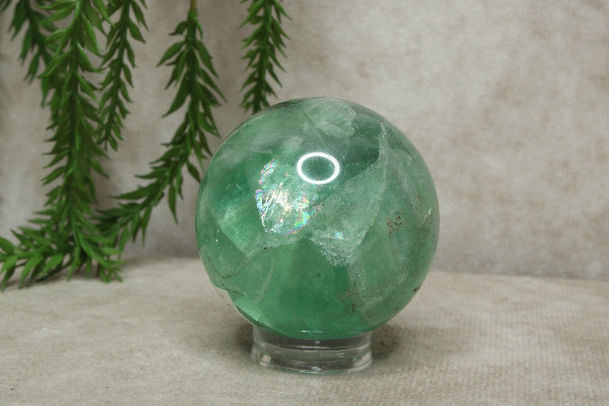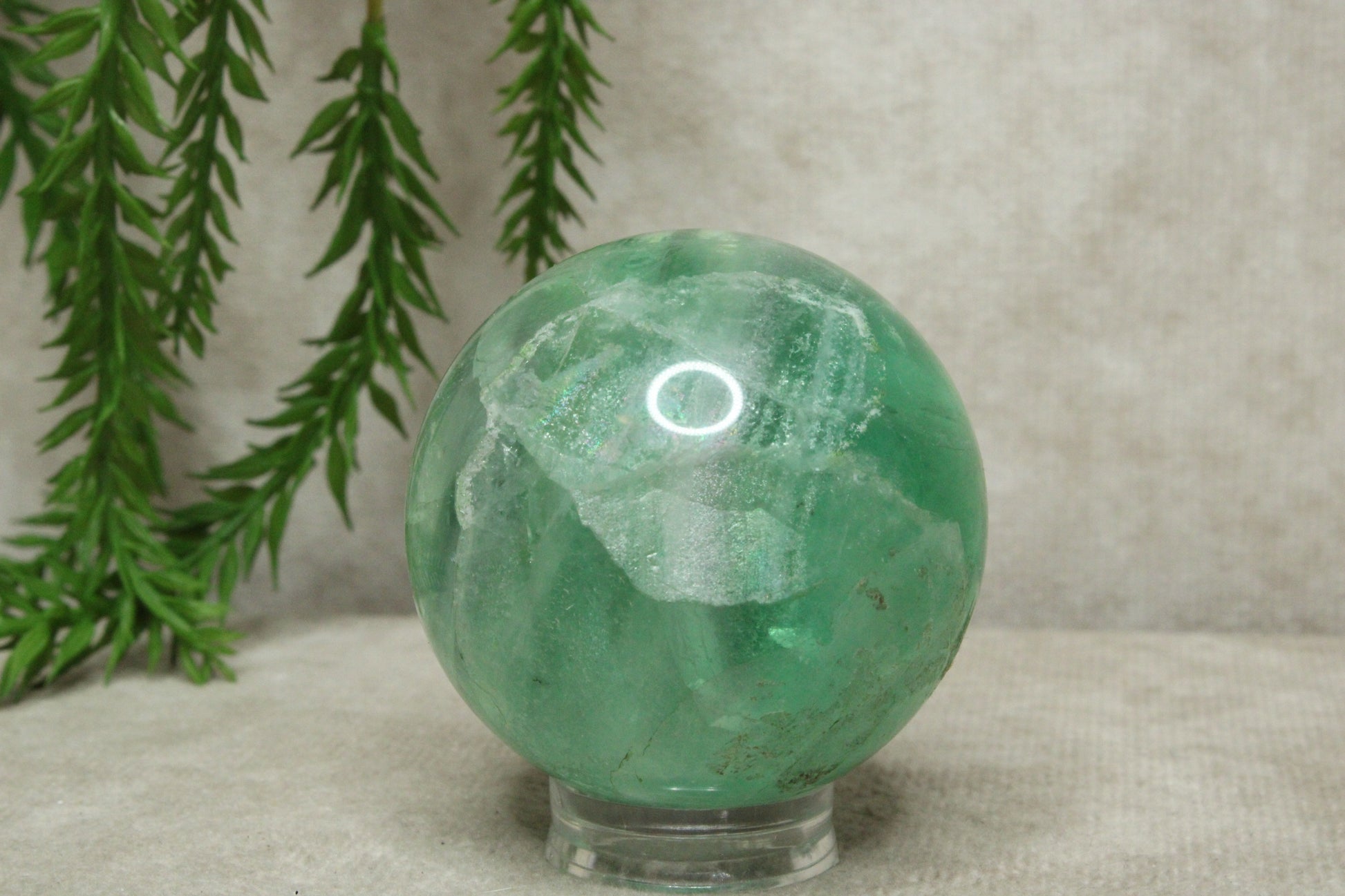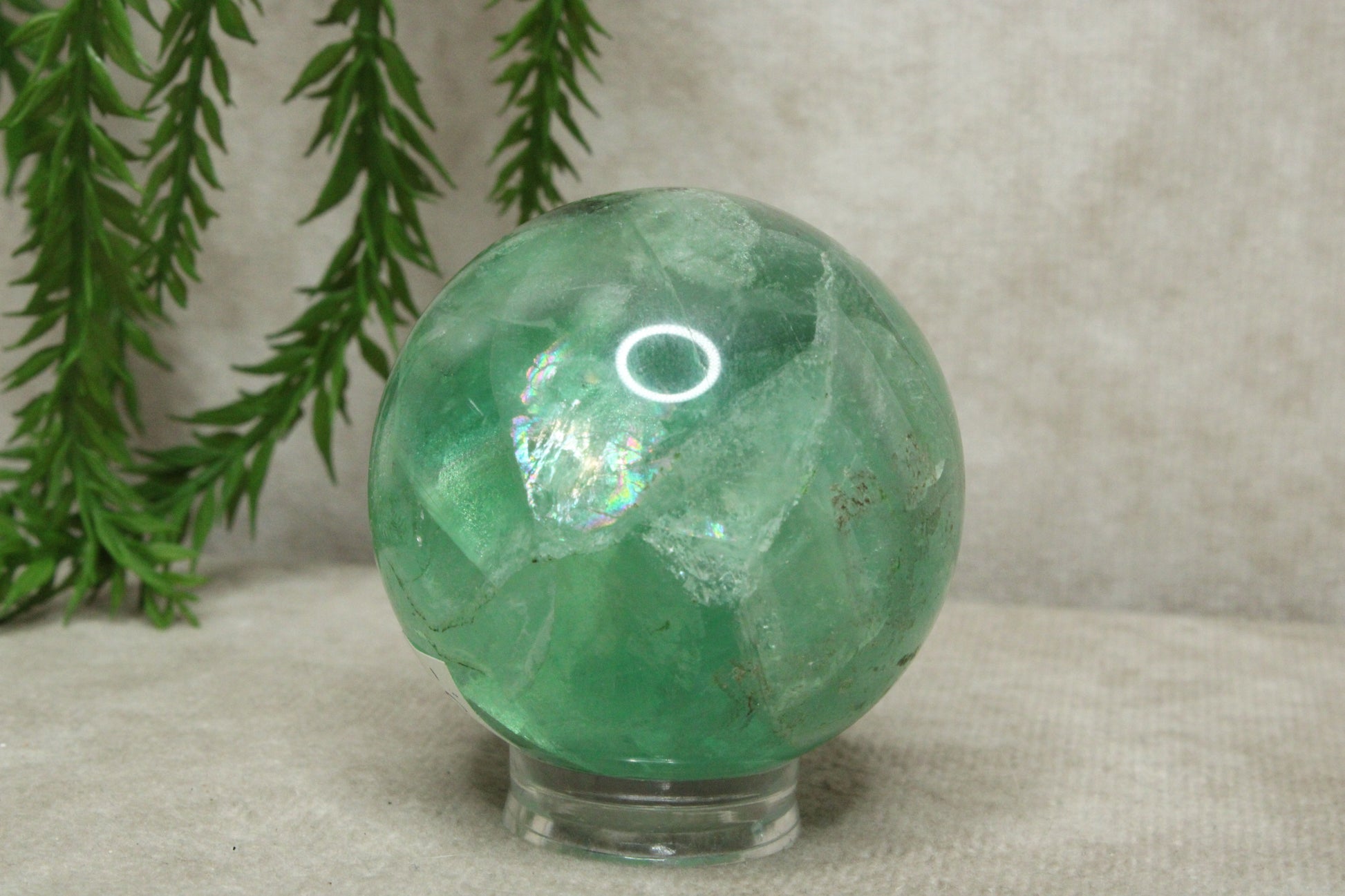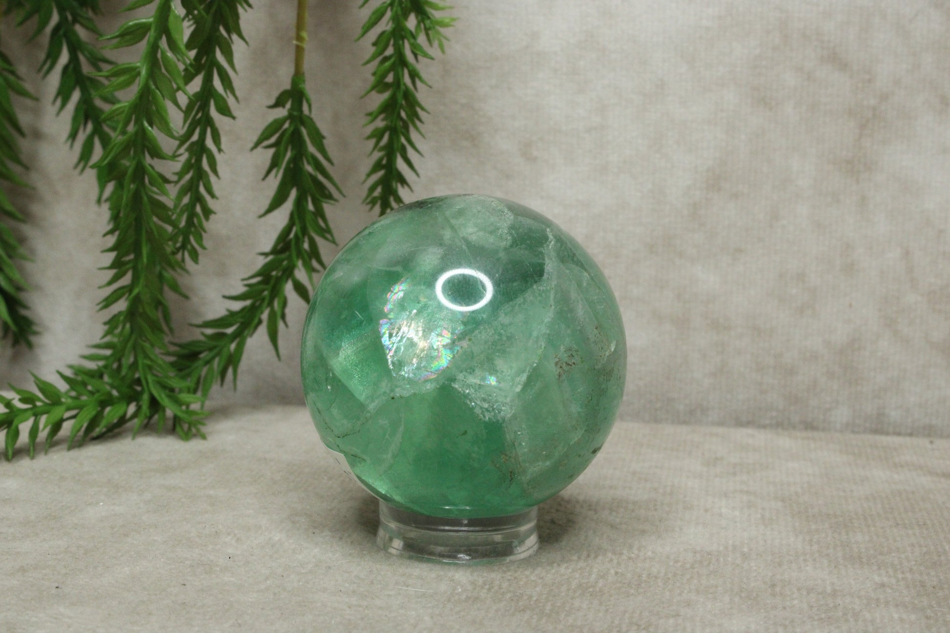 Groene fluoriet wordt vaak geassocieerd met helderheid, focus en rust in het hoofd. De steen kan helpen bij het ordenen van gedachten en het creëren van een rustige sfeer. Deze bol is fijn om neer te zetten op een bureau, studeerplek of een plek waar je wat extra concentratie kunt gebruiken.