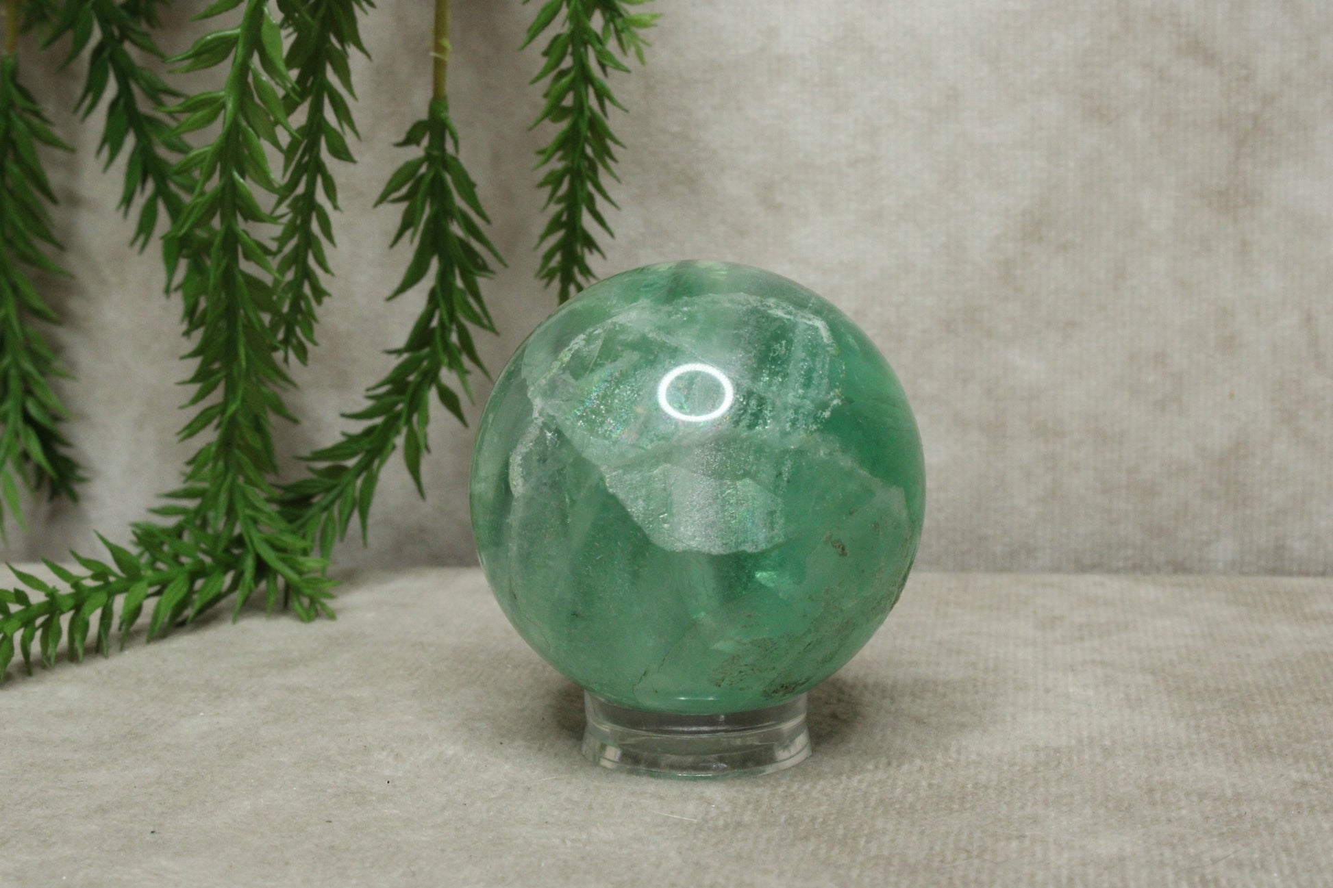 Deze groene fluoriet bol heeft een frisse en heldere uitstraling. Met een gewicht van 208 gram en een diameter van 5 cm is het een compact en licht formaat dat gemakkelijk een plek vindt in huis. De groene kleur geeft de bol een kalme en natuurlijke uitstraling.