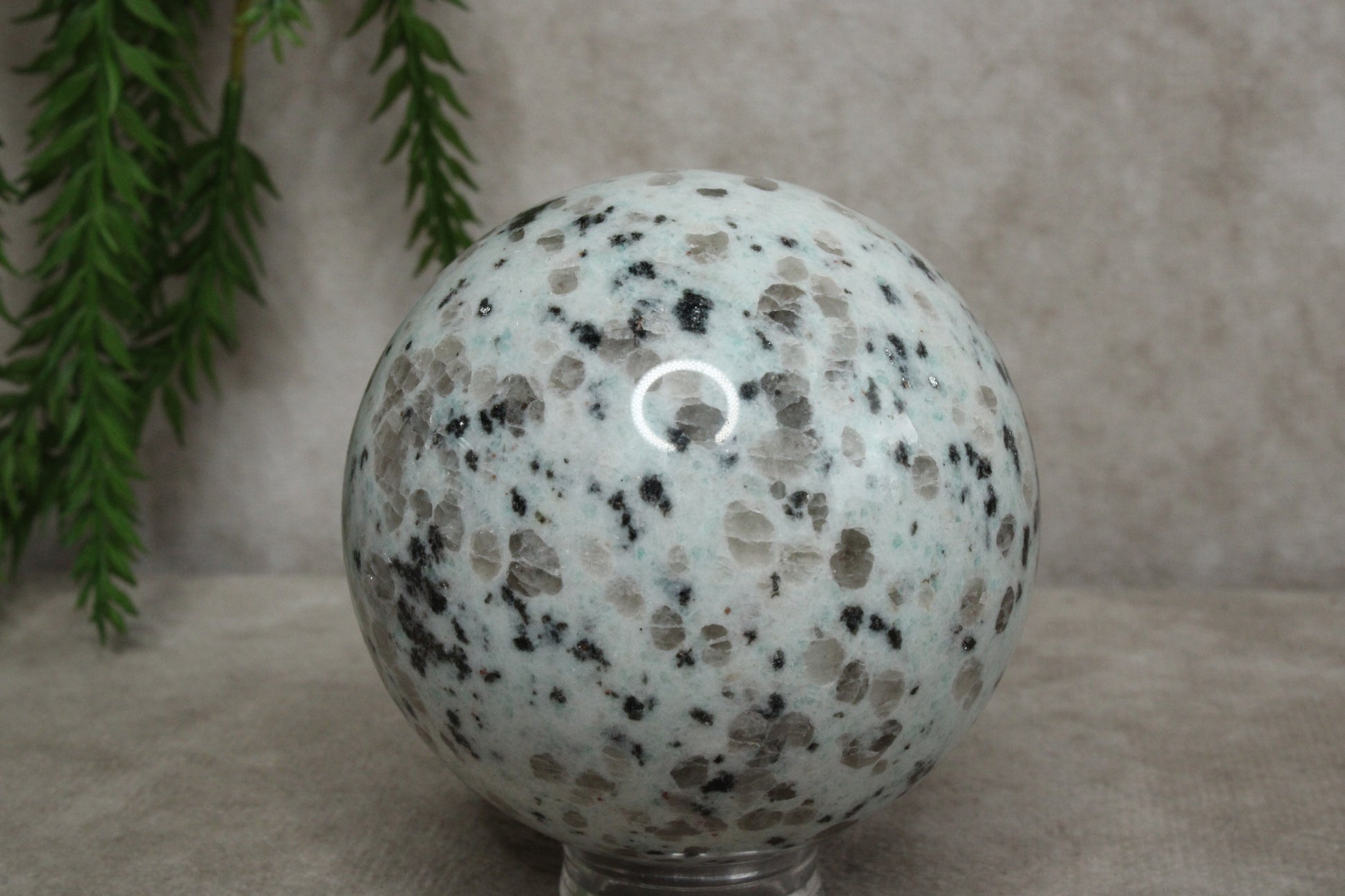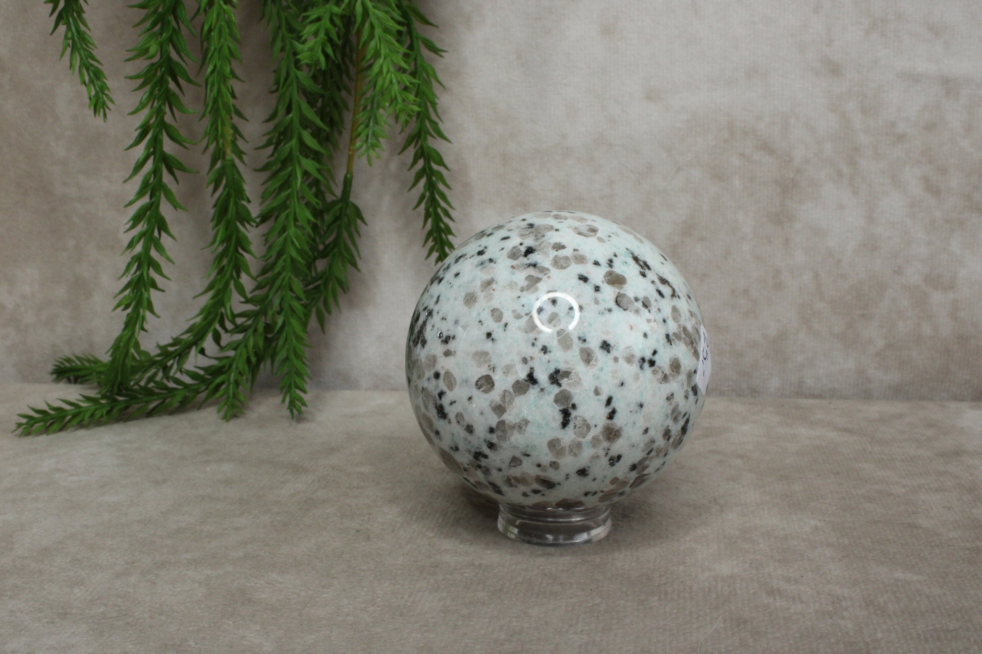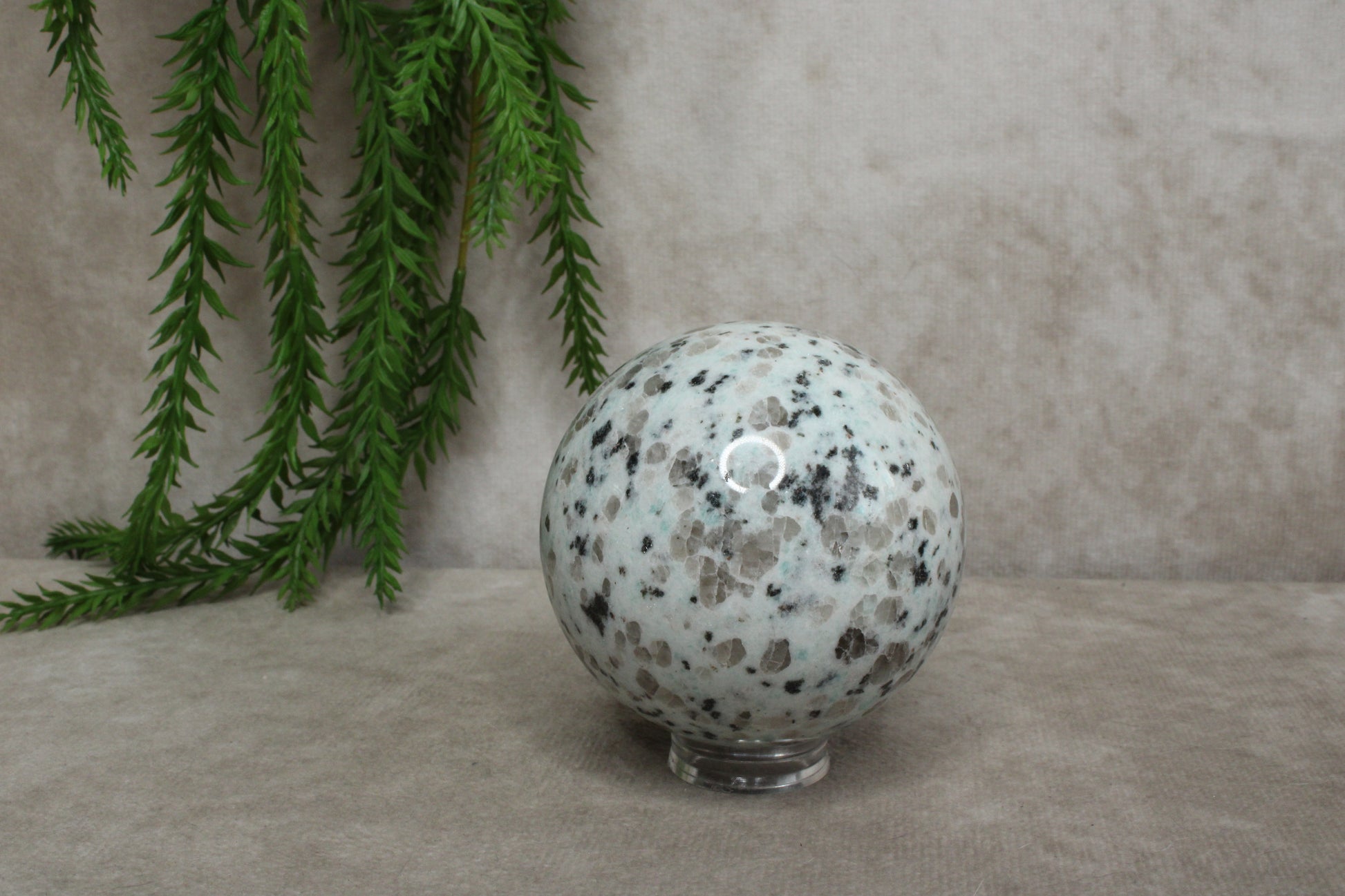 Deze kiwi jaspis bol heeft een zachte en frisse uitstraling. Met een gewicht van 372 gram en een diameter van 6,5 cmis het een mooi en stevig formaat. De lichtgroene tint met donkere spikkels geeft de bol een natuurlijke en rustige uitstraling.
