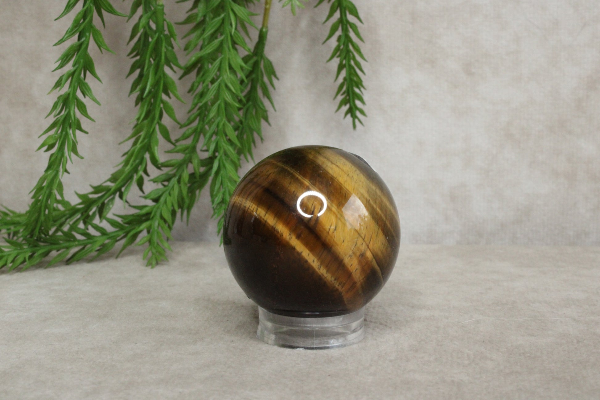 Tijgeroog wordt vaak geassocieerd met kracht, zelfvertrouwen en bescherming. De steen kan helpen bij het maken van keuzes en geeft ondersteuning in situaties waarin je wat extra moed of focus nodig hebt. Door de bolvorm wordt de energie gelijkmatig verspreid, wat hem fijn maakt om in huis neer te zetten of te gebruiken bij meditatie.