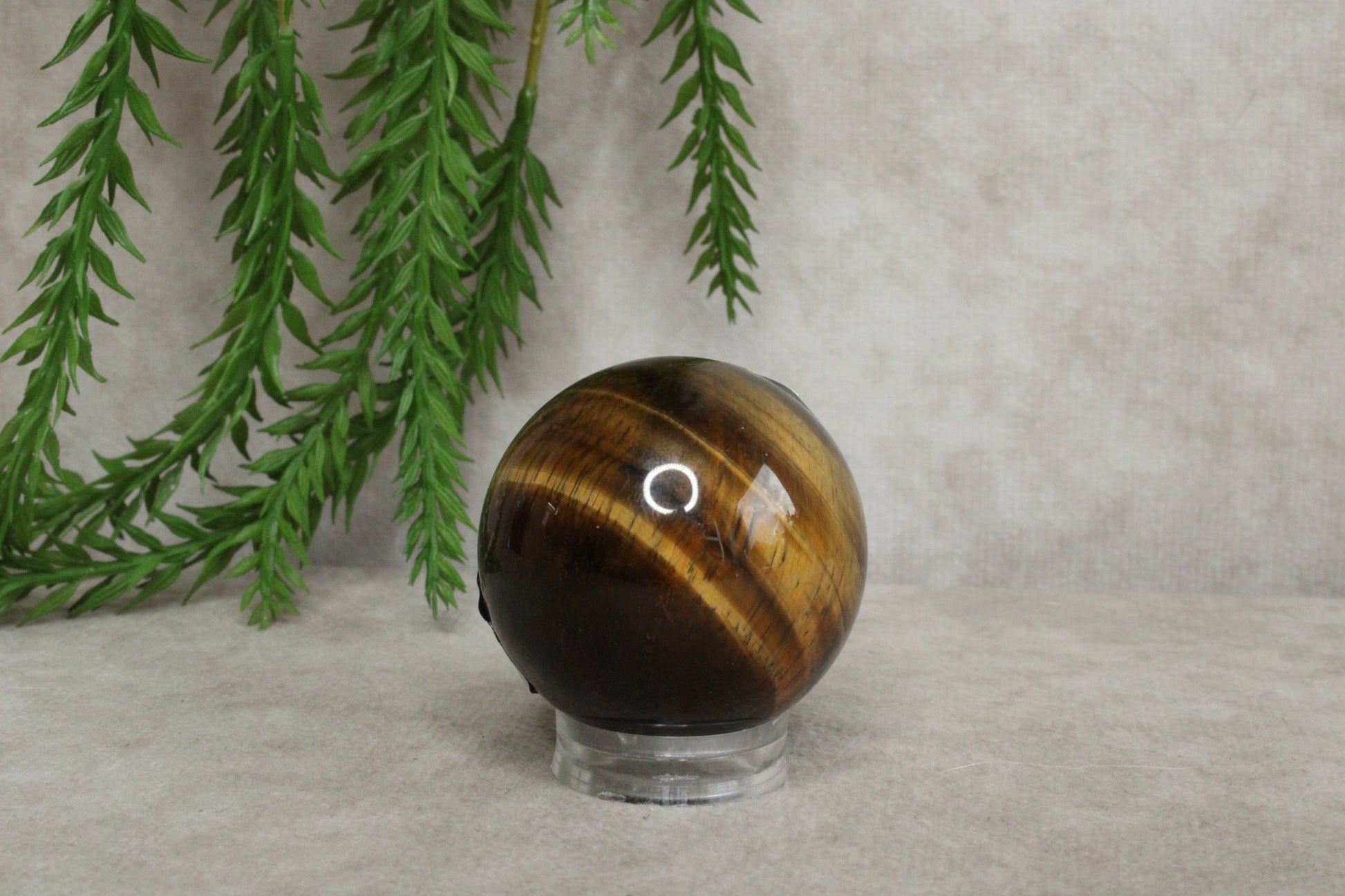 Deze tijgeroog bol heeft een warme en krachtige uitstraling. Met een diameter van 4 cm en een gewicht van 96 gram is het een compact en handzaam formaat. De goudbruine glans en natuurlijke strepen geven de steen een levendig en karaktervol uiterlijk.