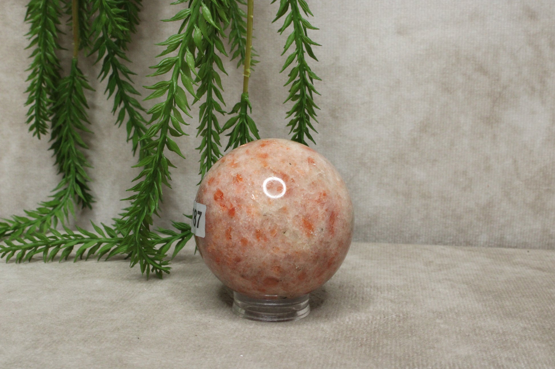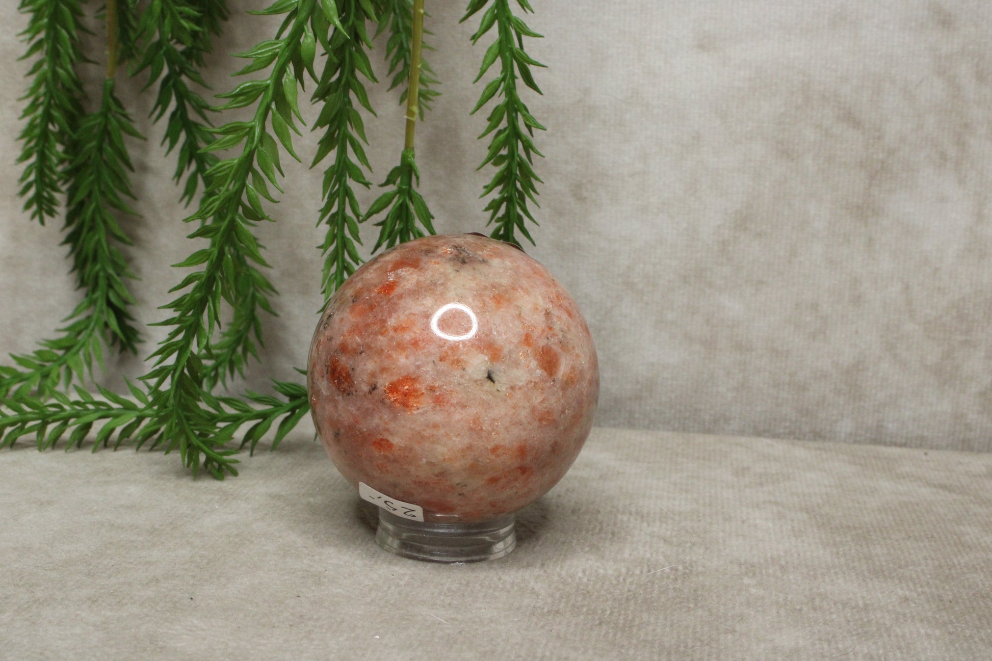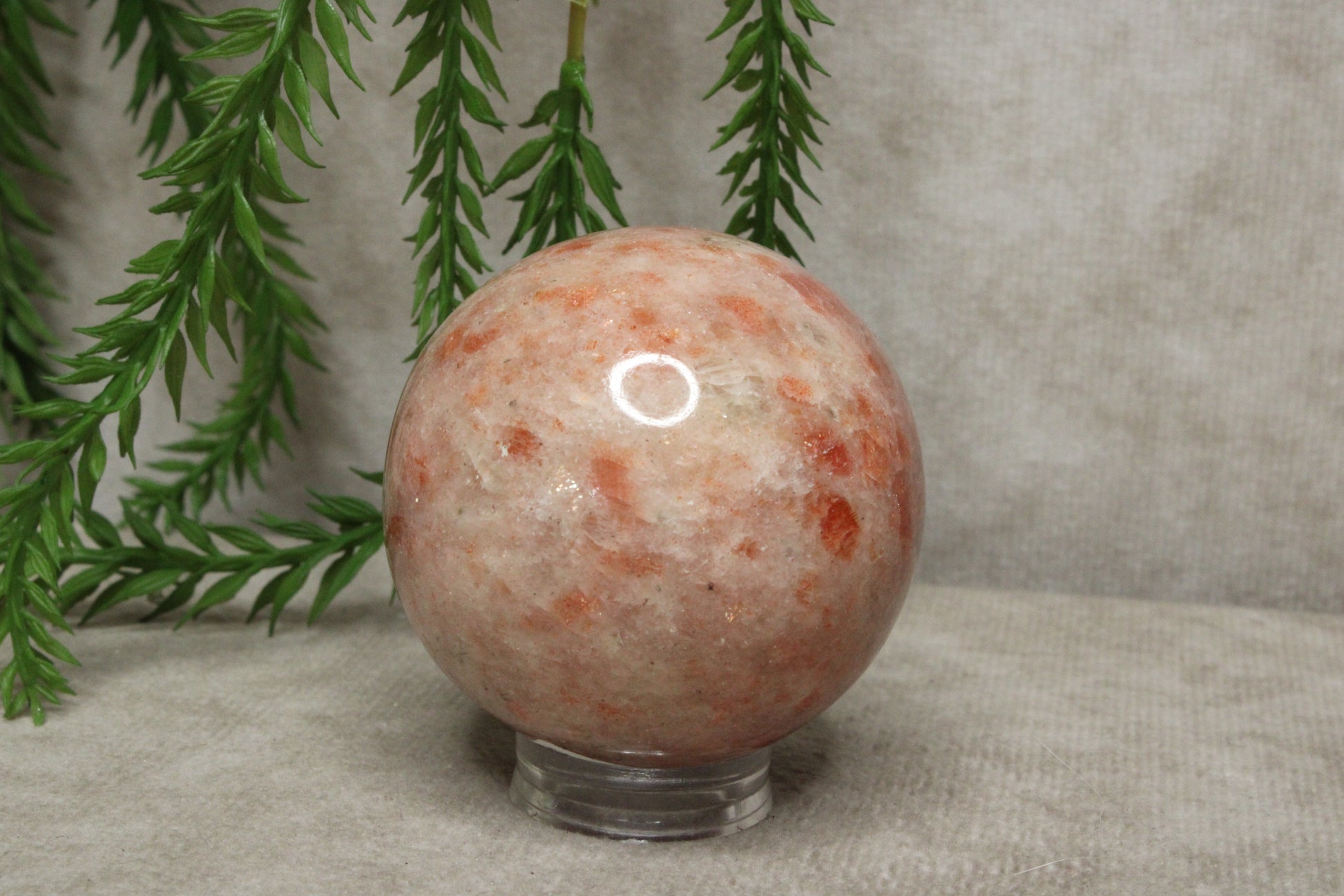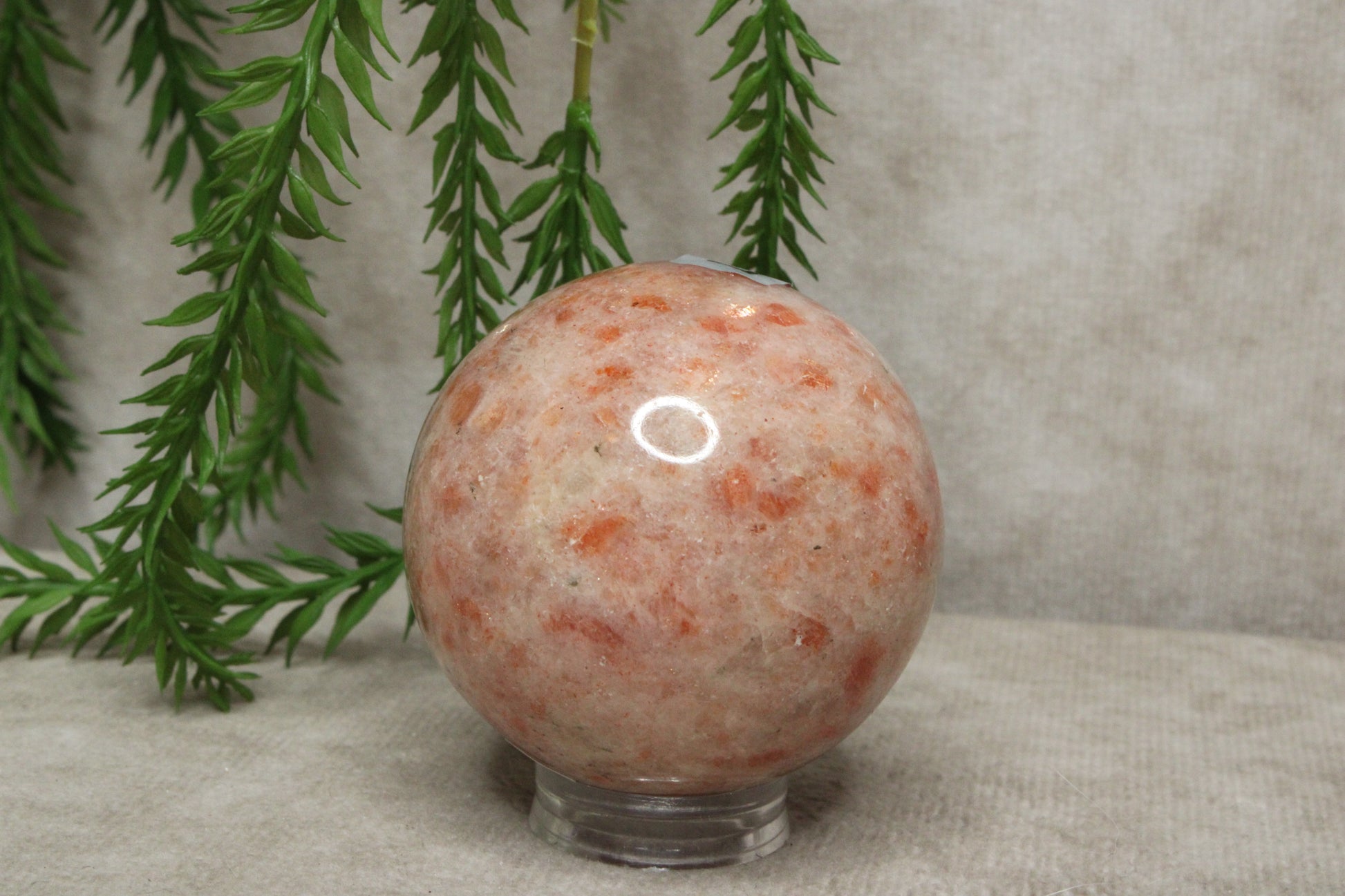 Deze zonnesteen bol heeft een warme en vrolijke uitstraling. Met een diameter van 6,2 cm en een gewicht van 188 gram is het een licht en handzaam formaat dat gemakkelijk een plek vindt in huis. De zachte glans en warme tinten geven de steen een levendig en positief karakter.