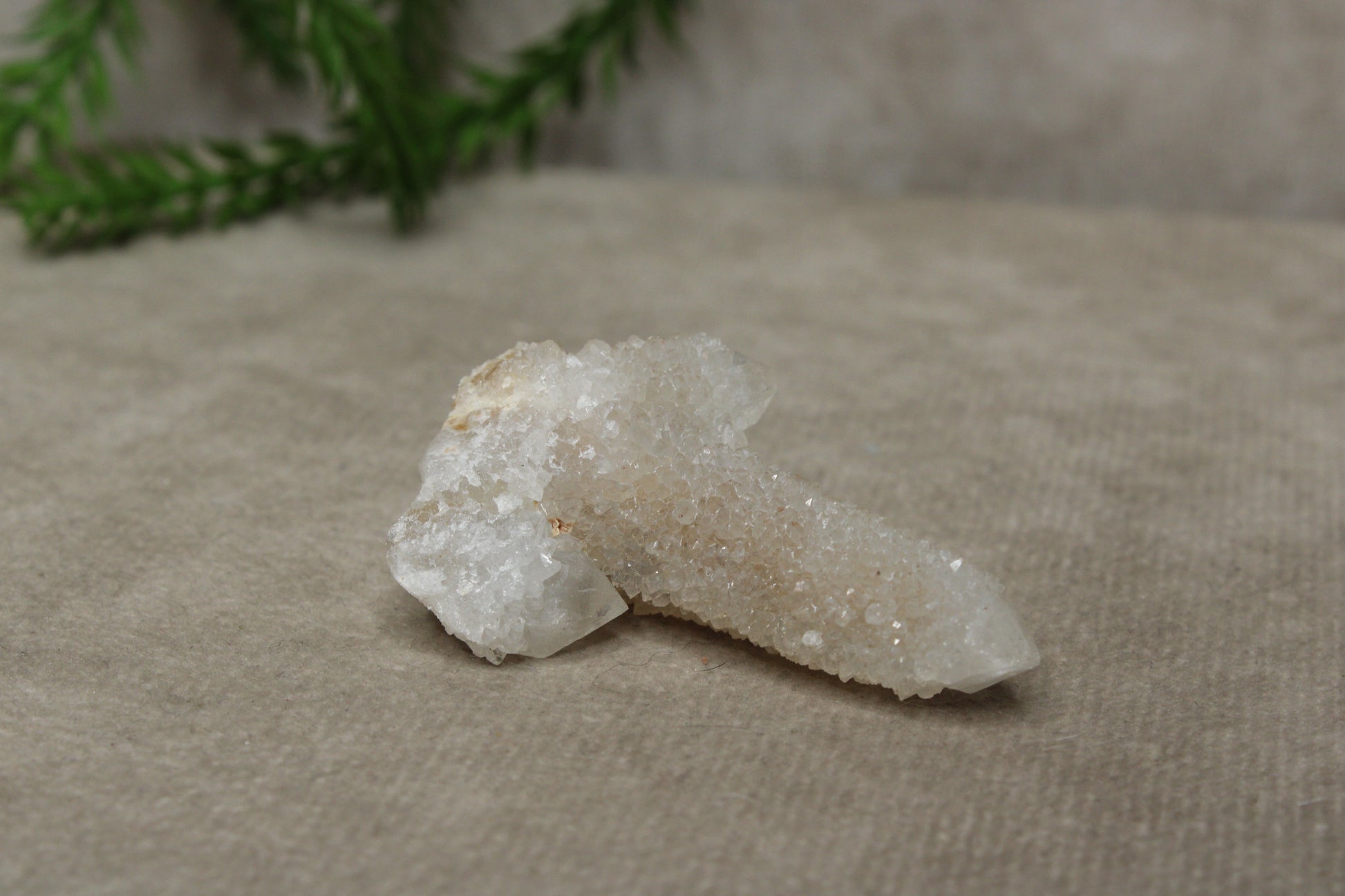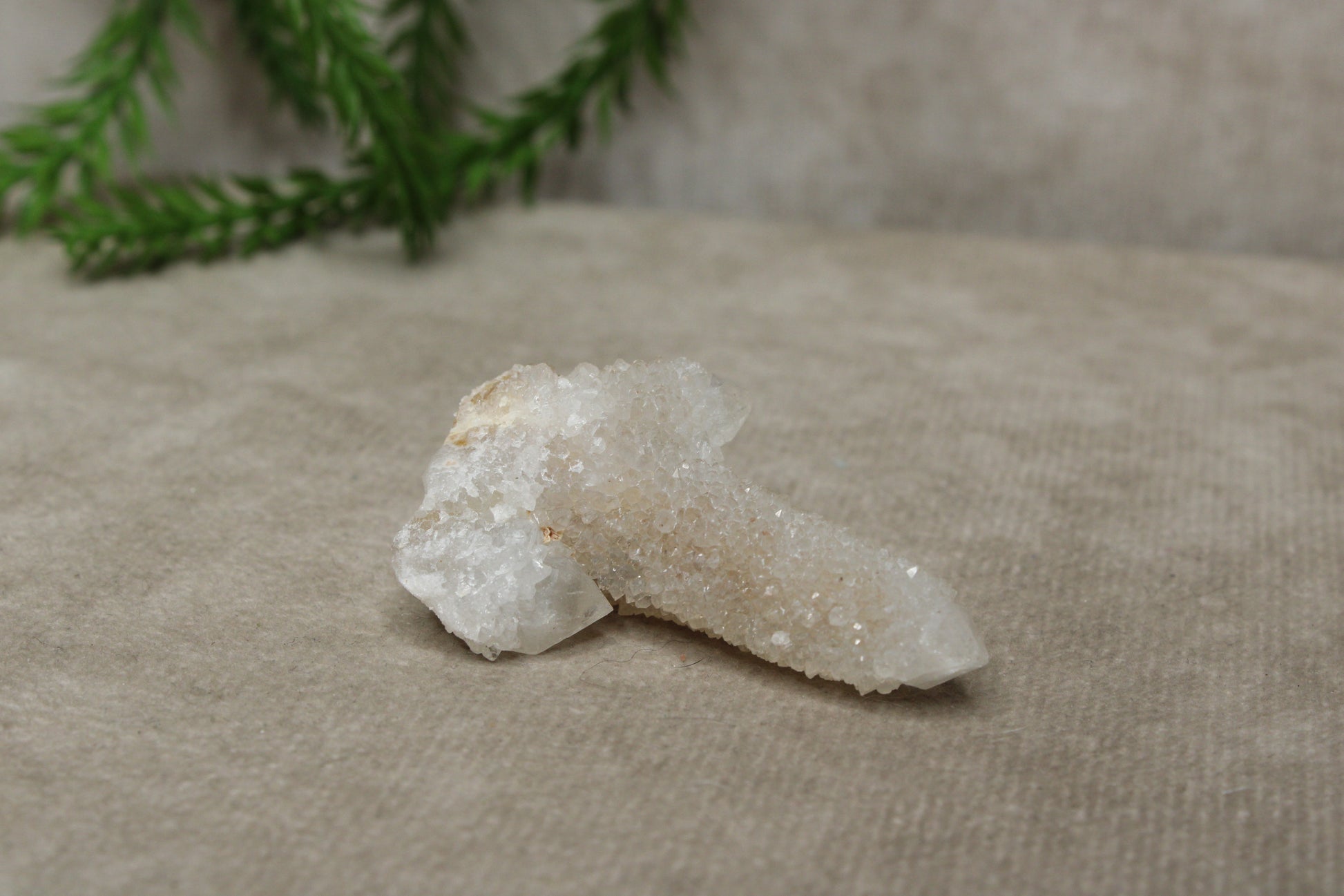 Dit cluster van cactus kwarts, ook wel spirit kwarts genoemd, is een bijzonder en verfijnd natuurstuk. Met een breedte van 4,9 cm is het een compact maar opvallend cluster. De vele kleine kristallen geven het stuk een sprankelende en unieke uitstraling.