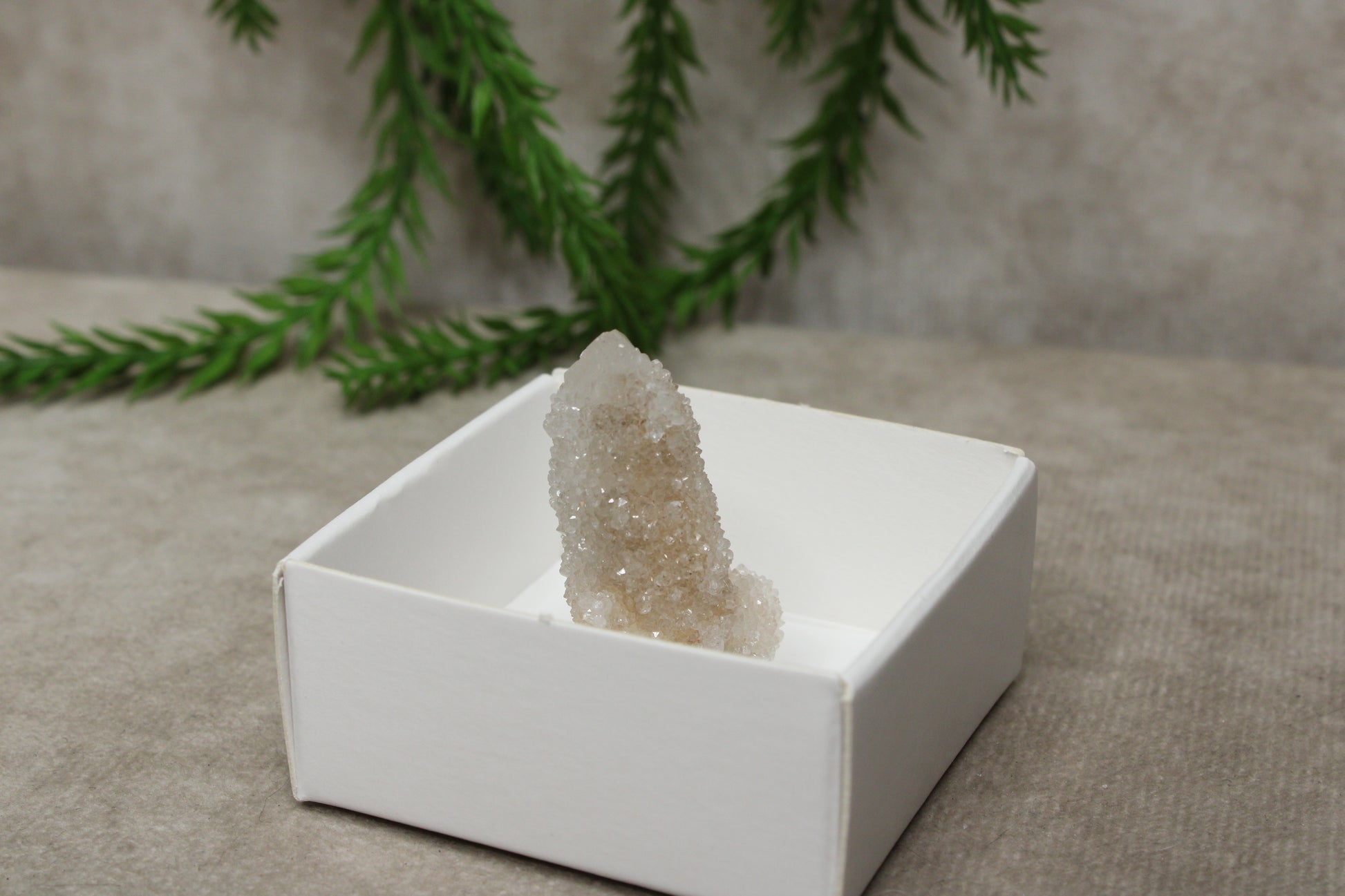 Cactus kwarts wordt vaak geassocieerd met bescherming, harmonie en positieve energie. De steen kan helpen om rust te brengen en een fijne sfeer te creëren. Dit cluster is mooi om neer te zetten in huis, op een altaar of als speciaal stuk in een kristalcollectie.