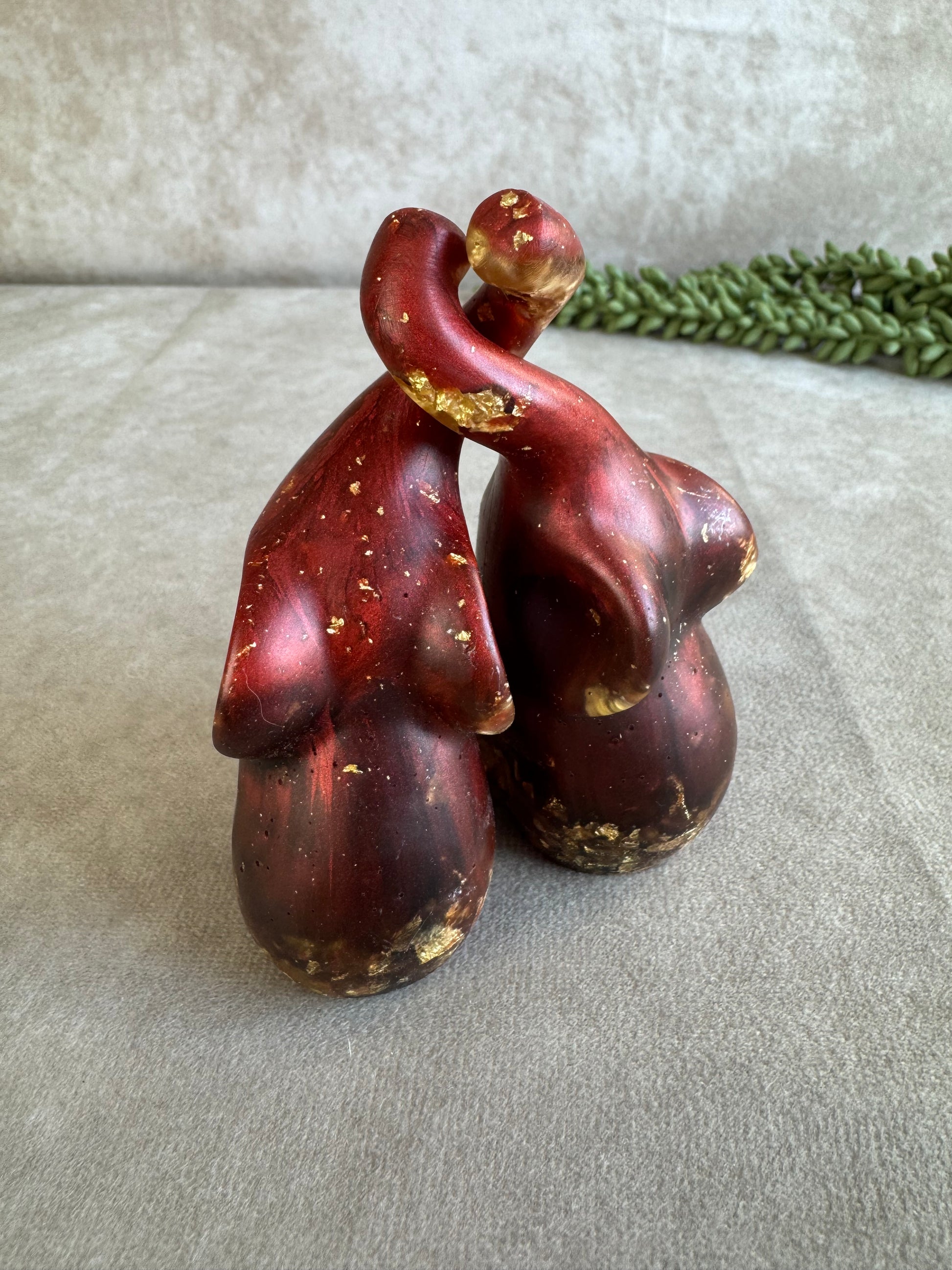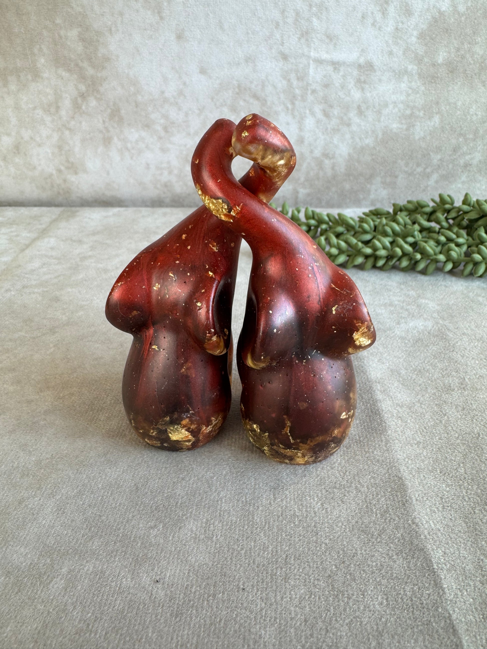 Deze prachtige set olifanten in het rood zwart en bladgoud is direct klaar voor verzending.