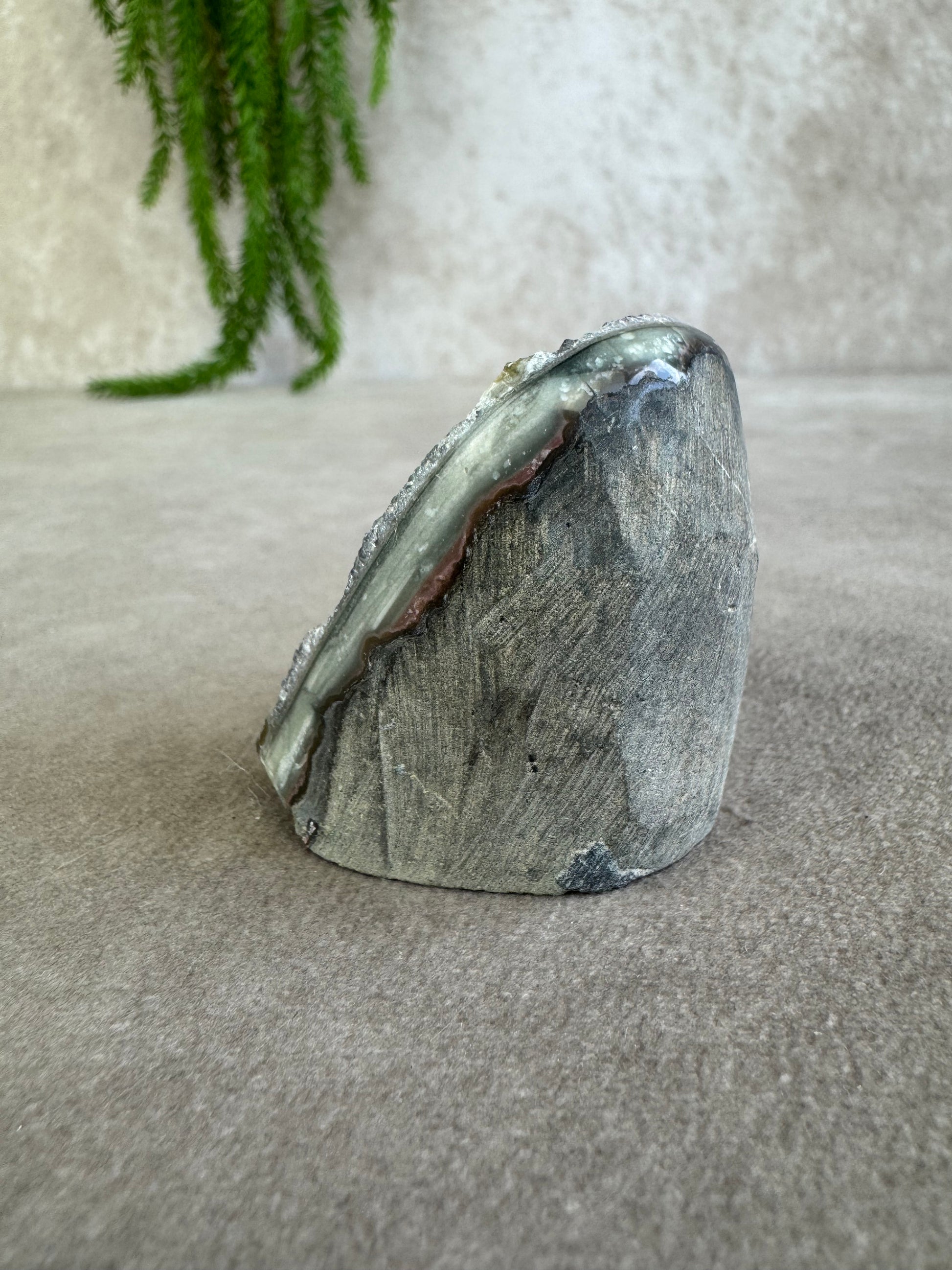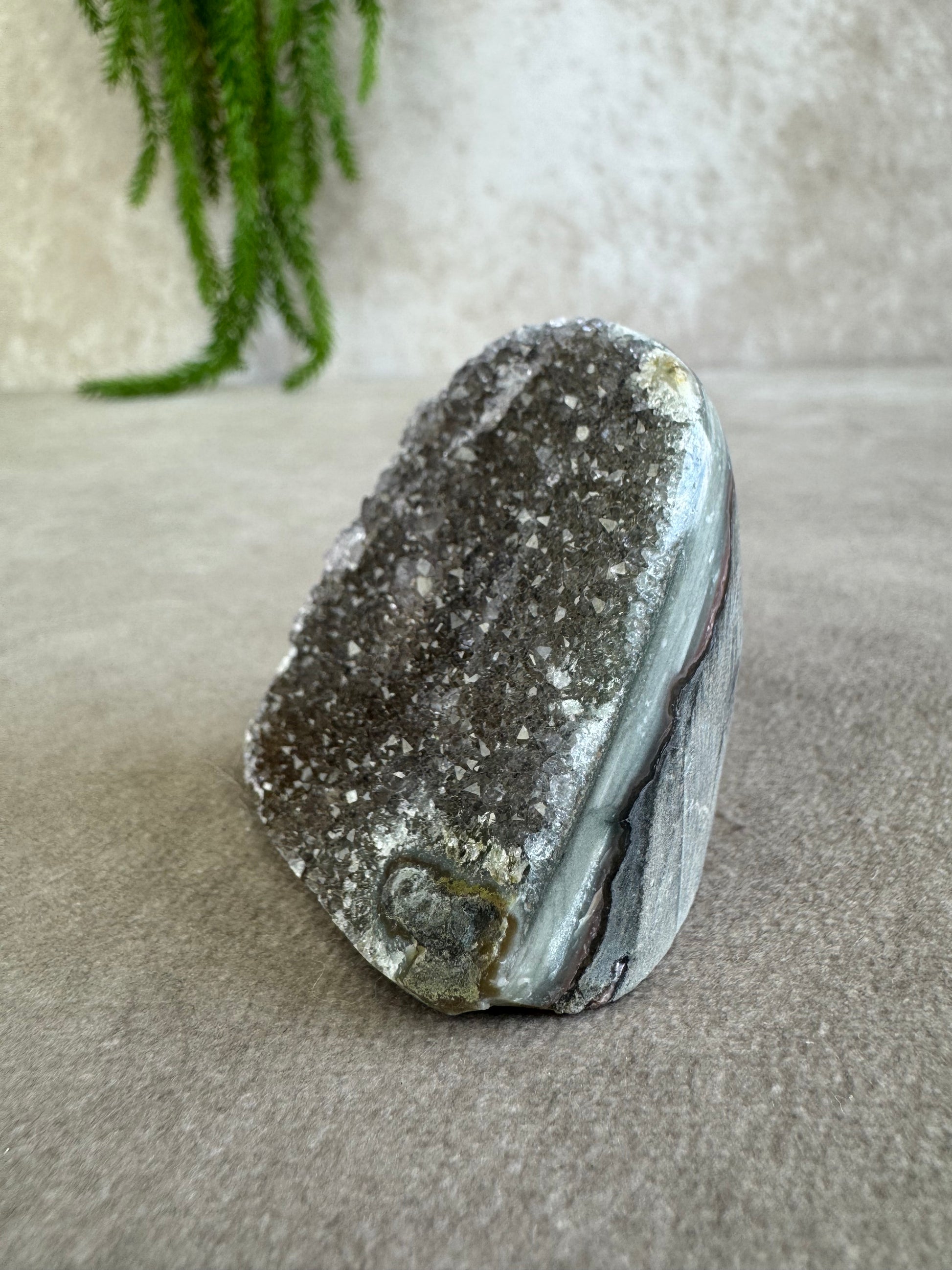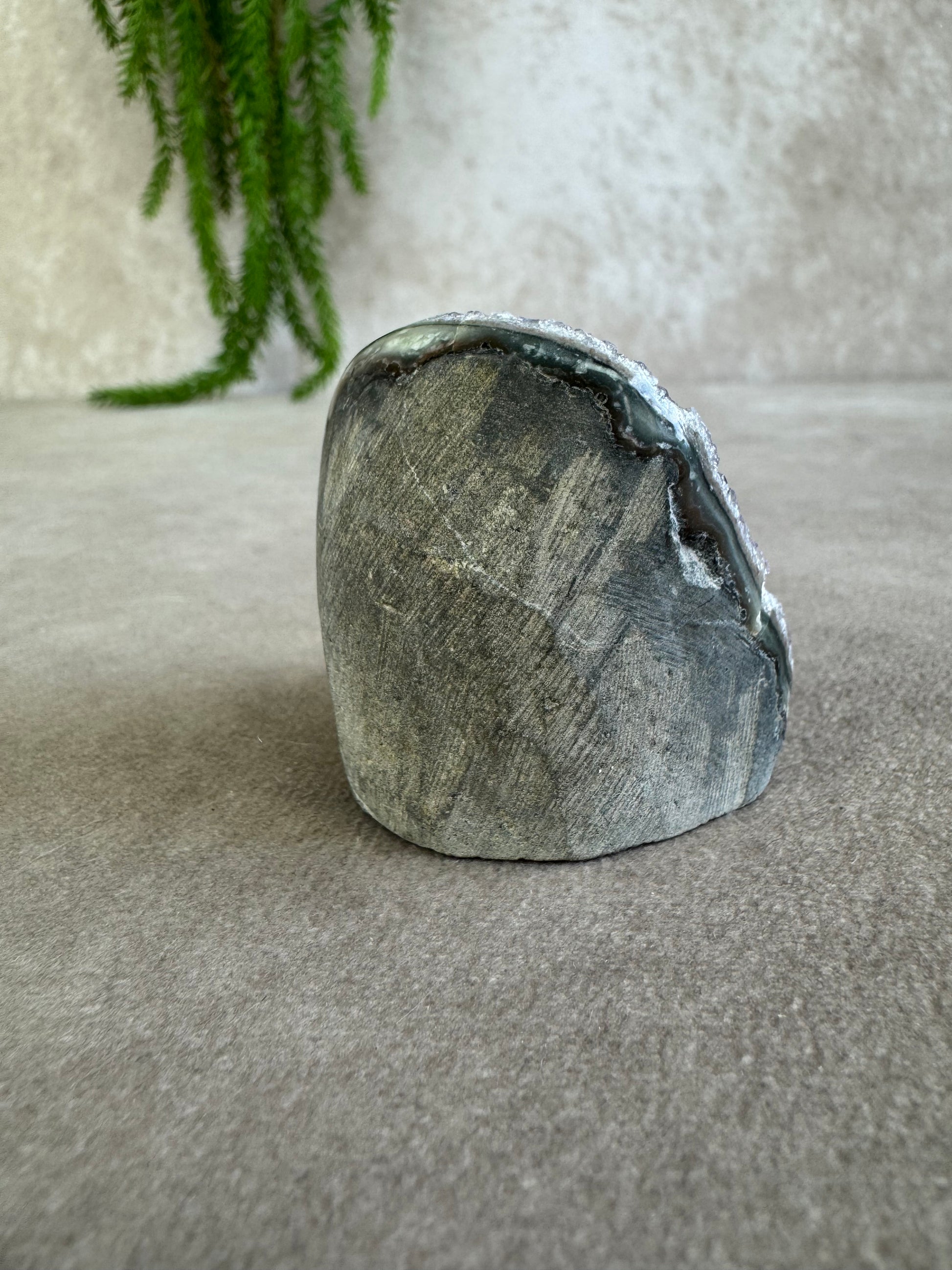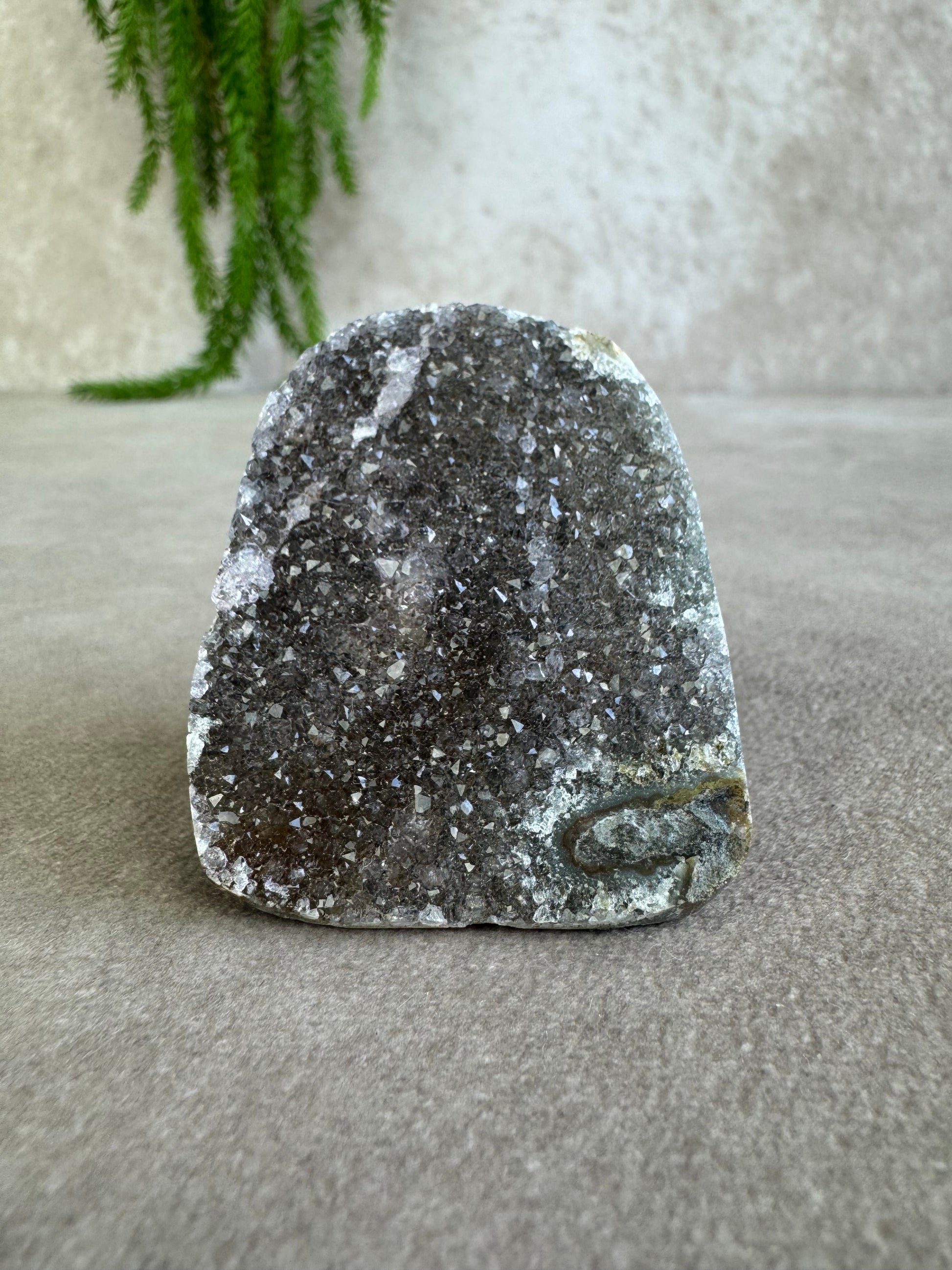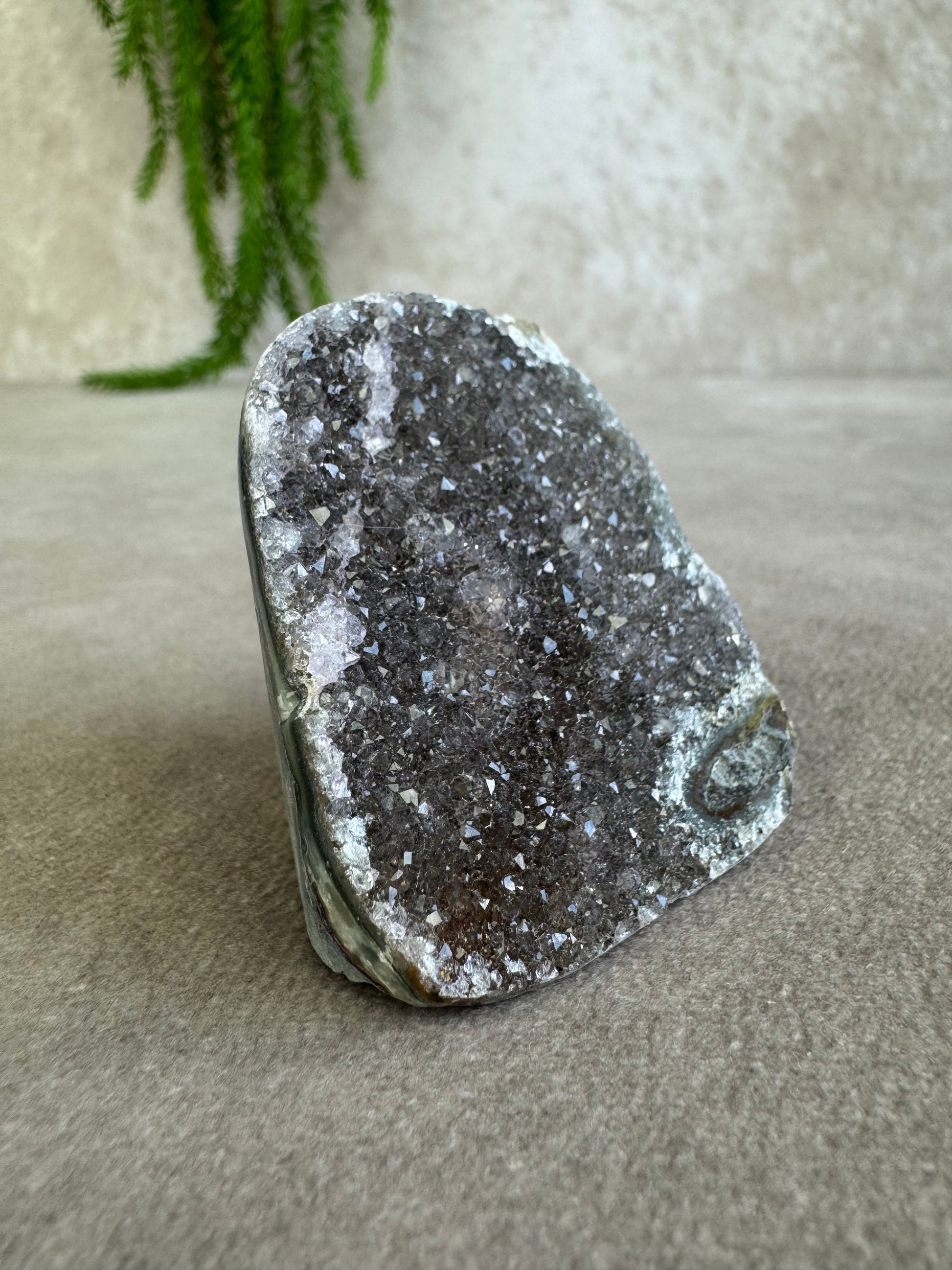 De combinatie van sprankeling en rijke kleur geeft dit stuk een magische uitstraling. Amethist staat bekend om zijn rustgevende en zuiverende energie, ideaal om een kalme sfeer te creëren en helderheid te bevorderen.