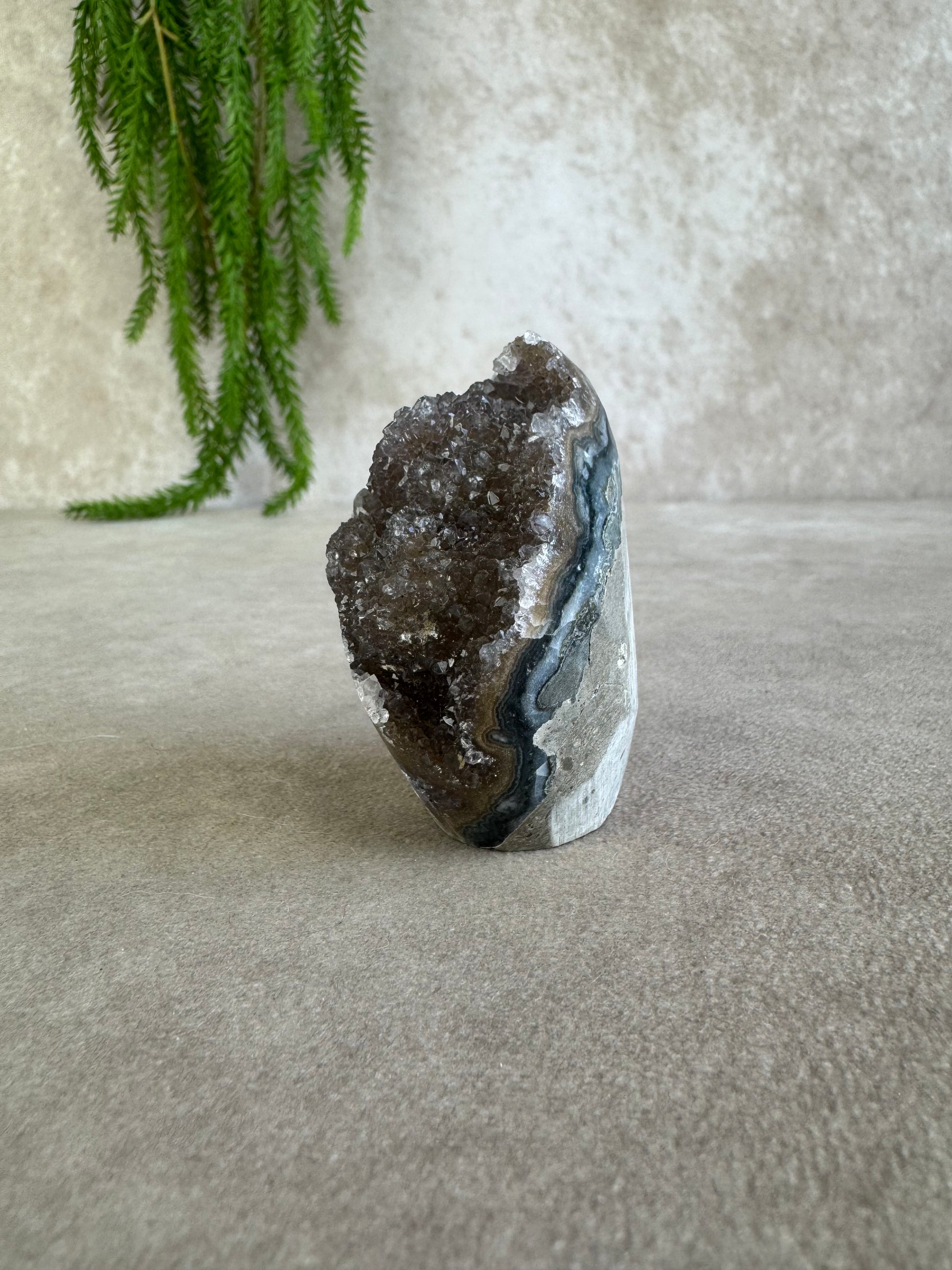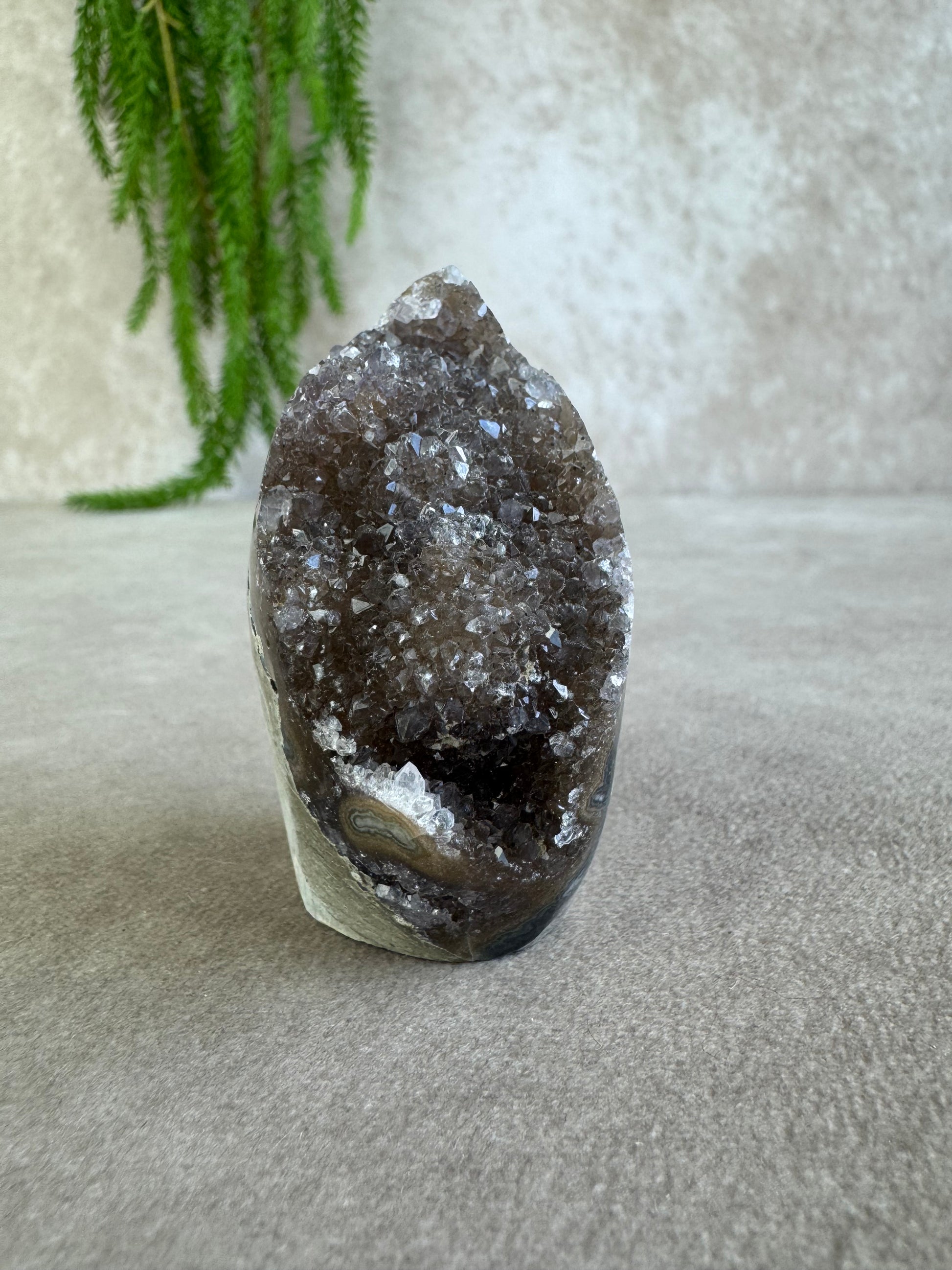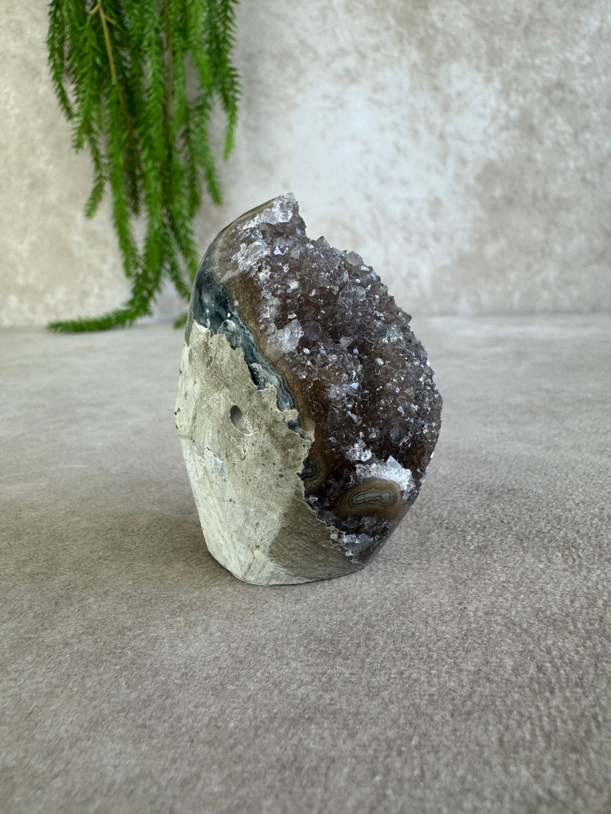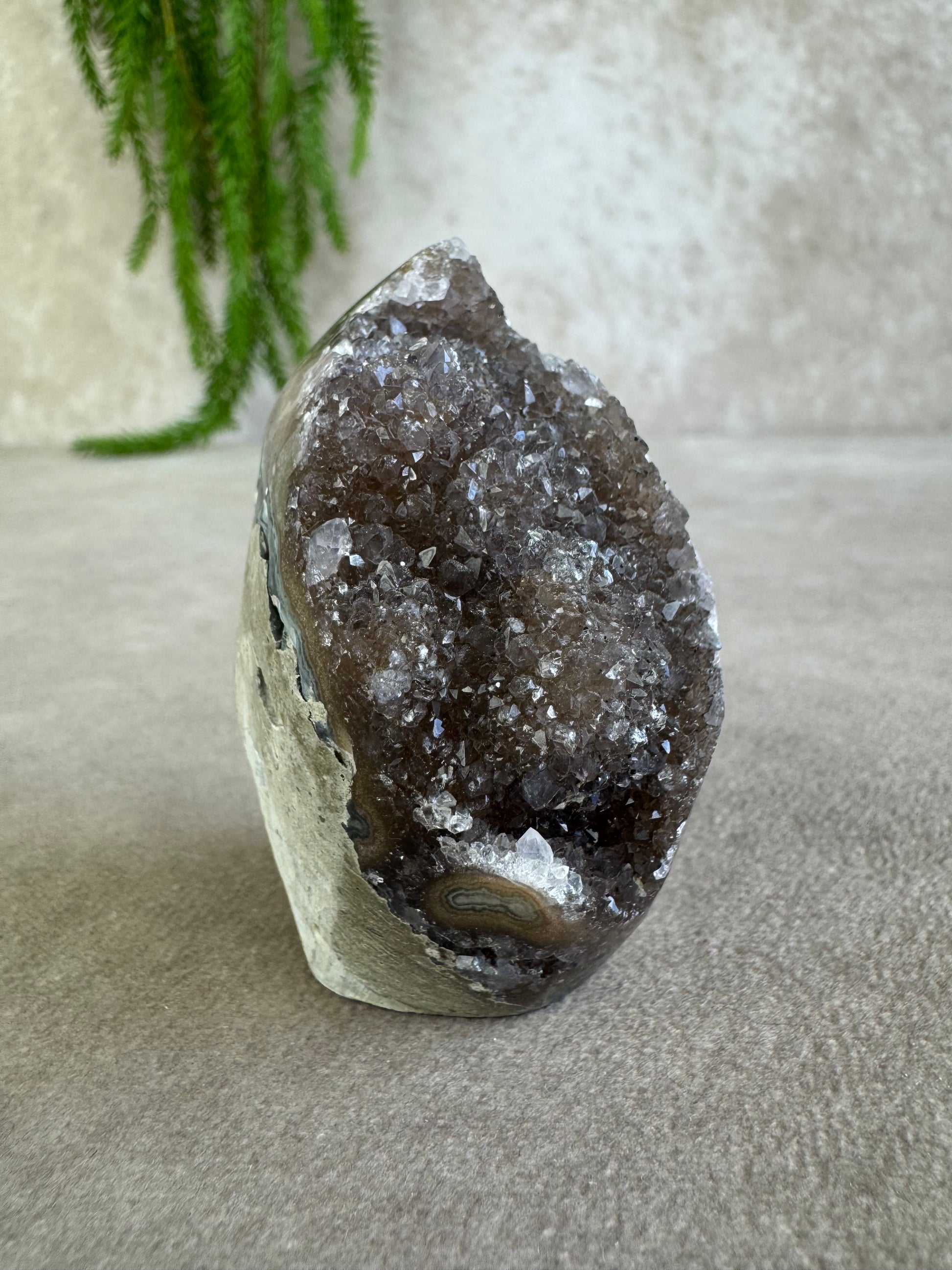 De combinatie van sprankeling en rijke kleur geeft dit stuk een magische uitstraling. Amethist staat bekend om zijn rustgevende en zuiverende energie, ideaal om een kalme sfeer te creëren en helderheid te bevorderen.