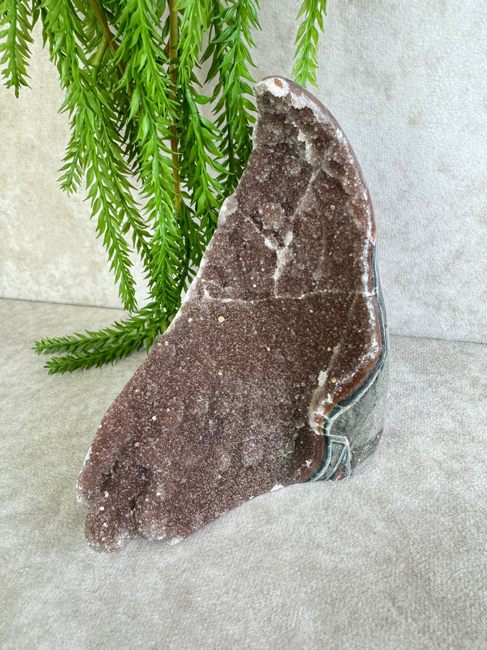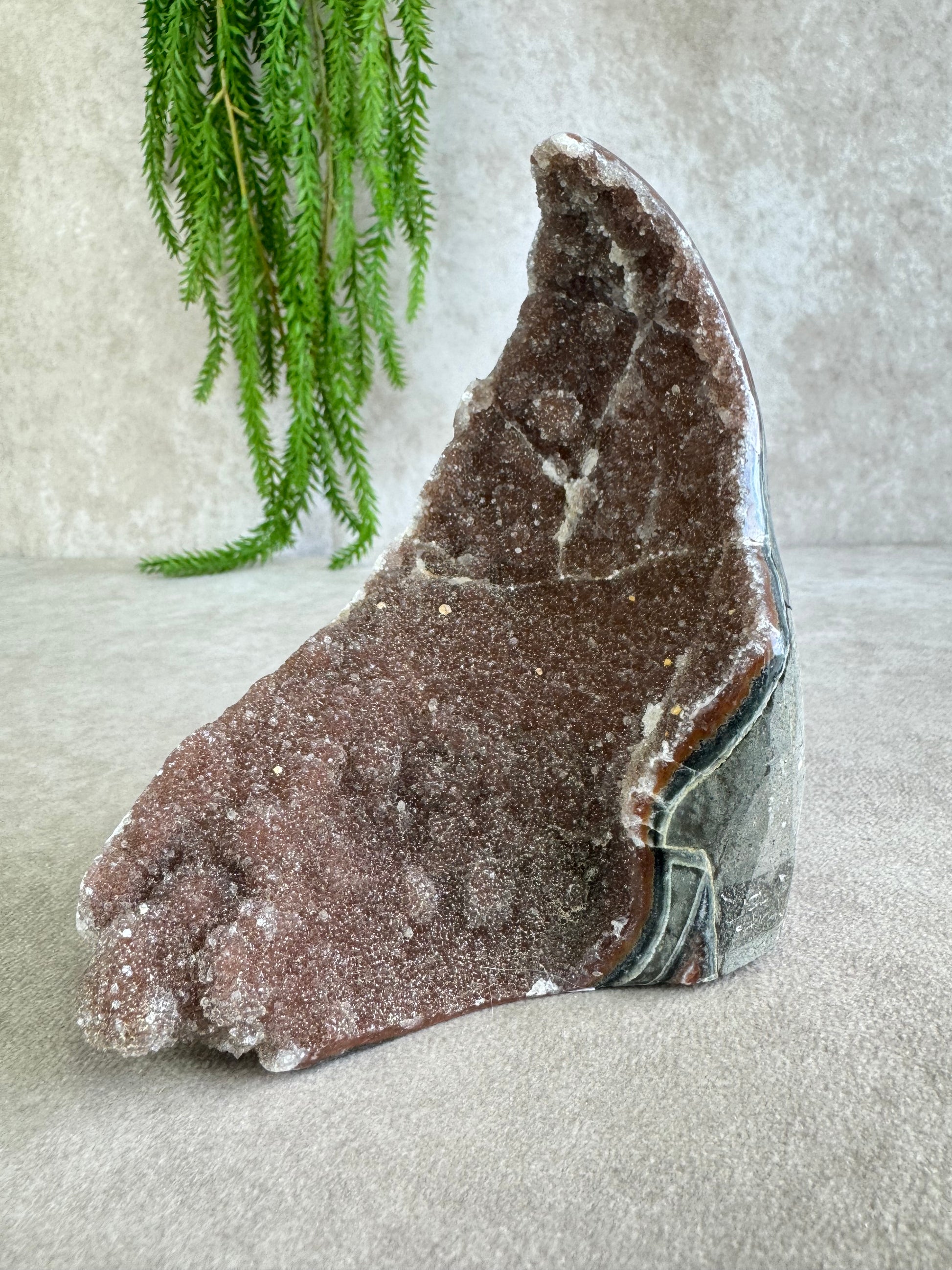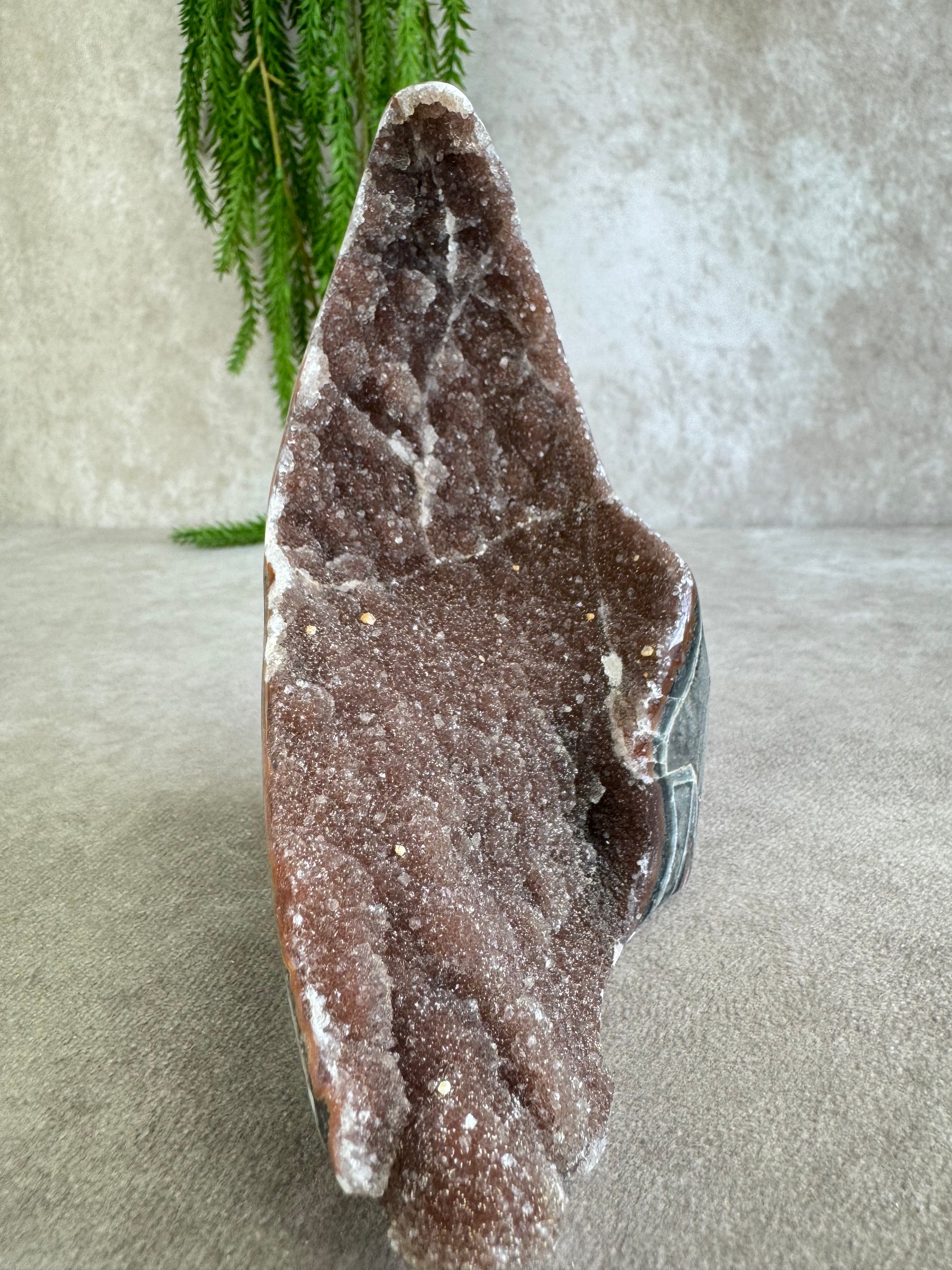 De combinatie van sprankeling en rijke kleur geeft dit stuk een magische uitstraling. Amethist staat bekend om zijn rustgevende en zuiverende energie, ideaal om een kalme sfeer te creëren en helderheid te bevorderen.