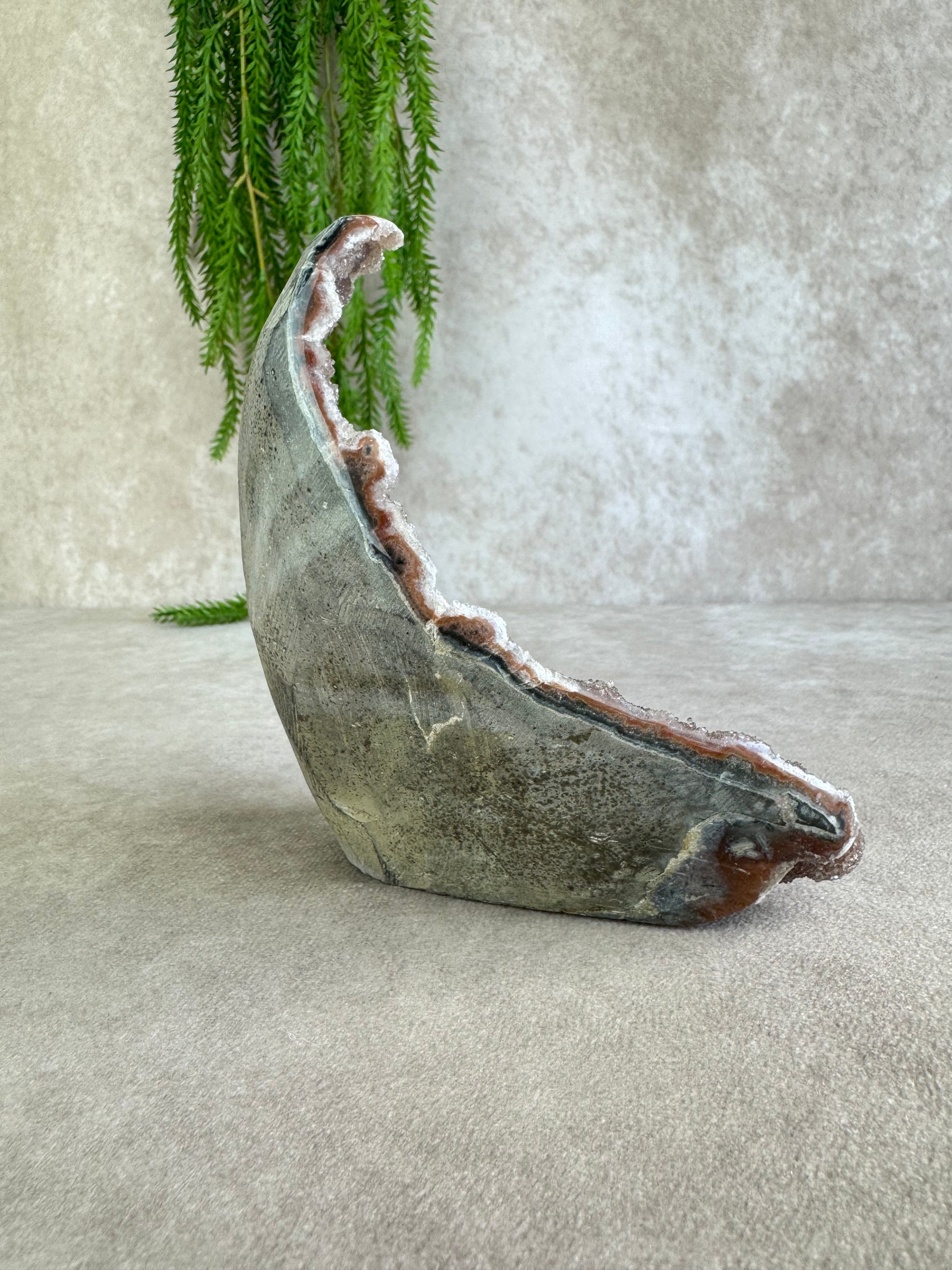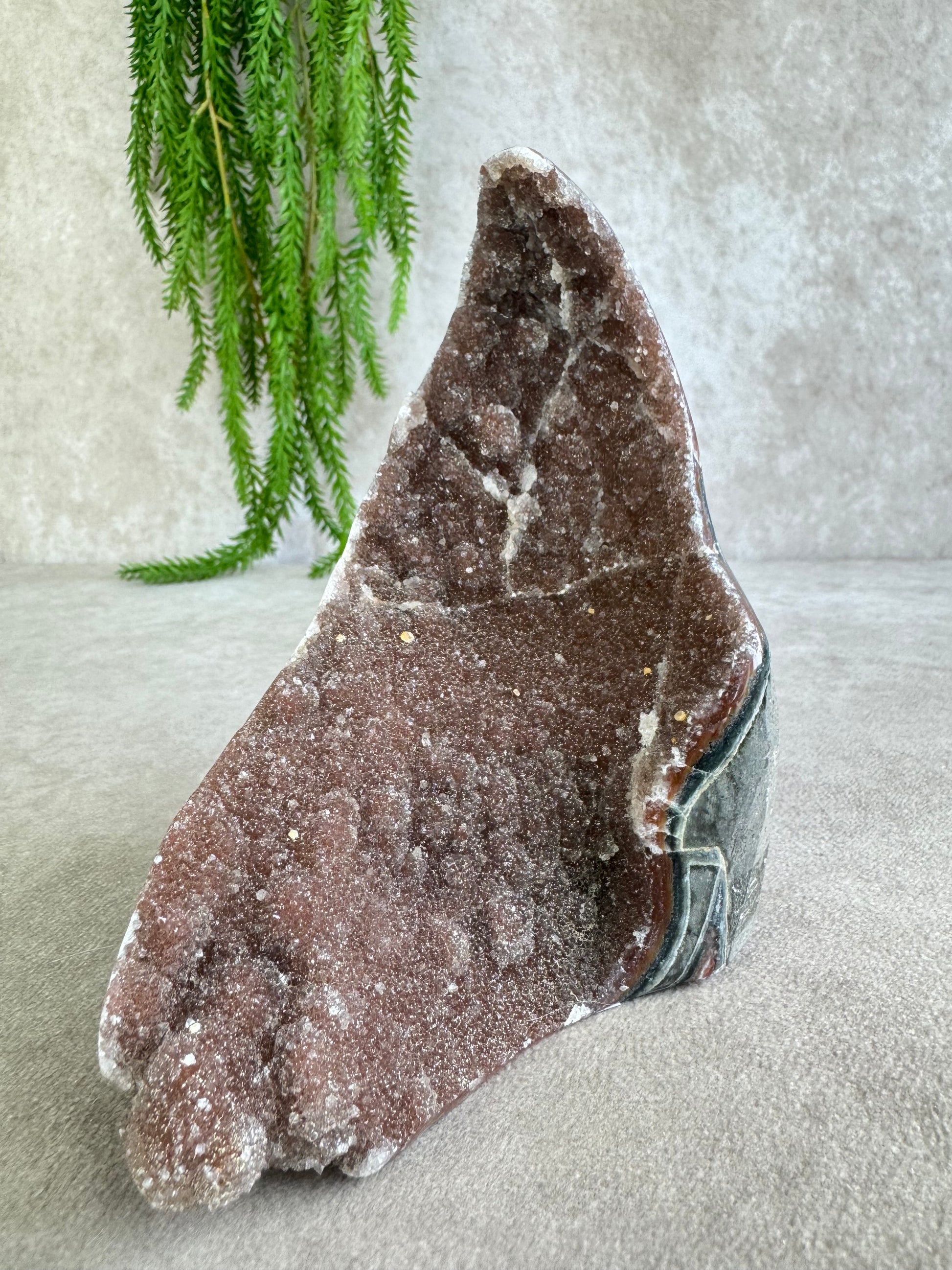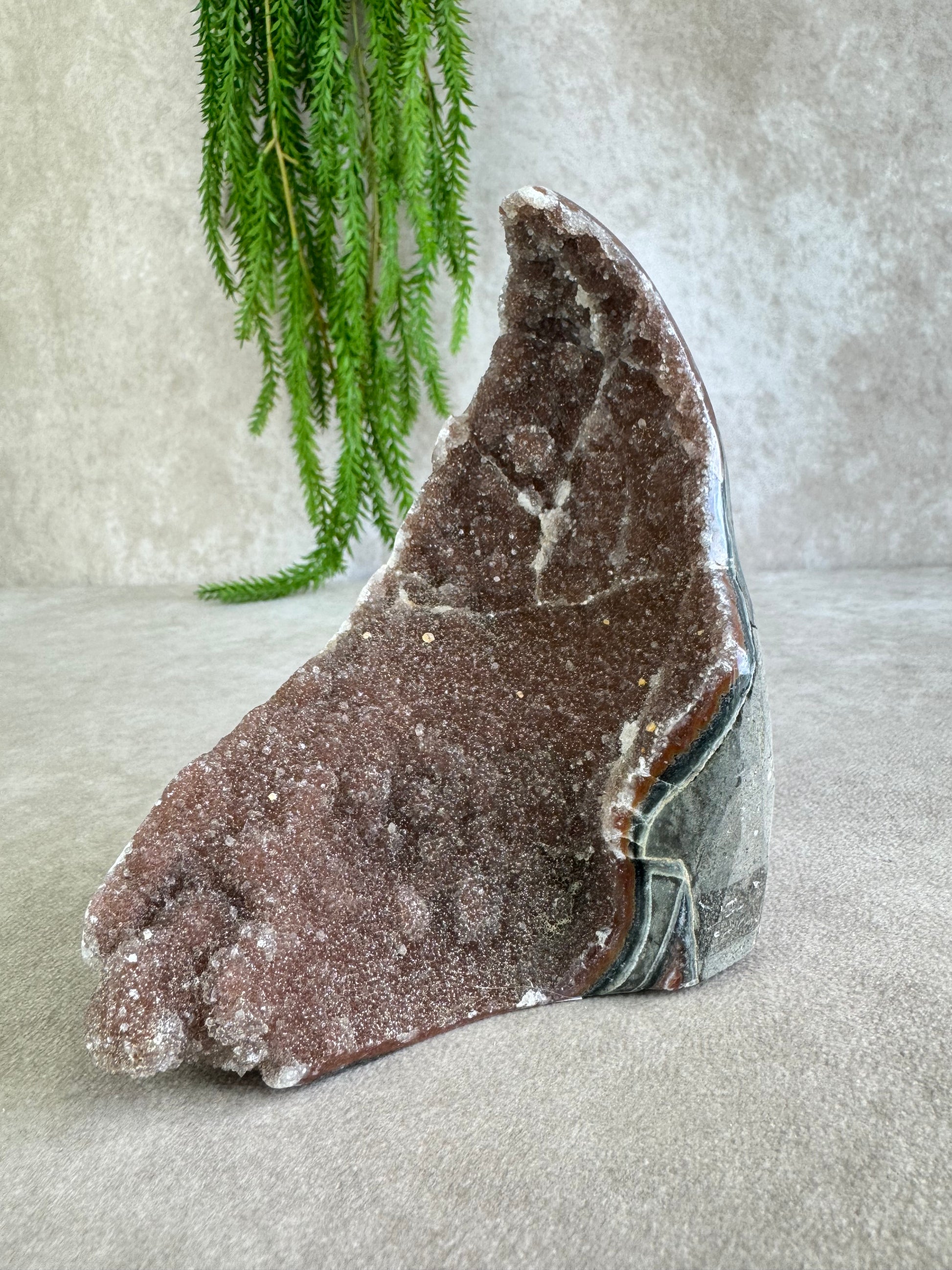 De combinatie van sprankeling en rijke kleur geeft dit stuk een magische uitstraling. Amethist staat bekend om zijn rustgevende en zuiverende energie, ideaal om een kalme sfeer te creëren en helderheid te bevorderen.