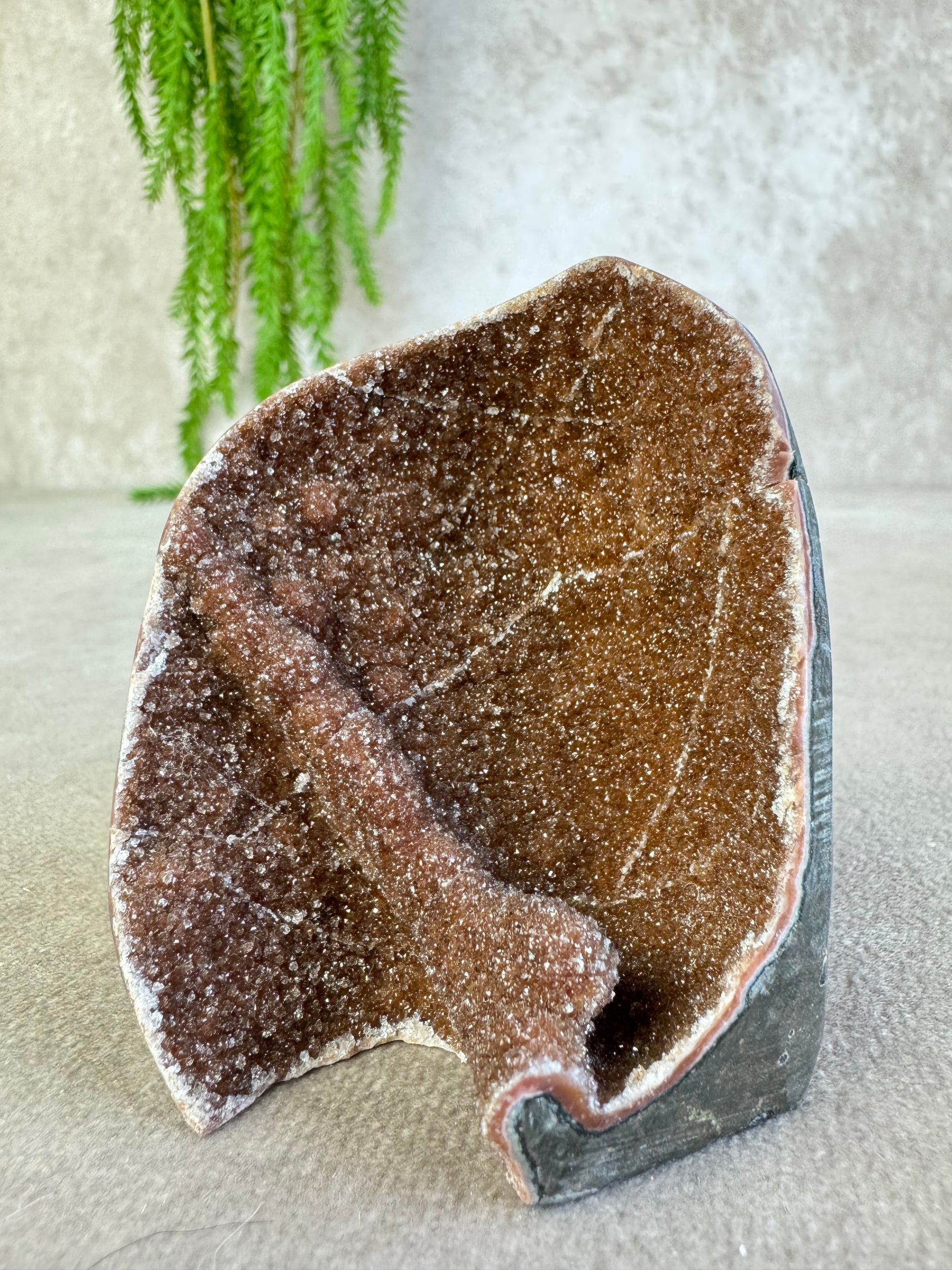 Amethist staat bekend om zijn rustgevende en zuiverende energie. De rode kleur geeft dit kristal een extra dimensie van kracht, vitaliteit en bescherming. Samen maakt dit het een uniek en energiek natuurstuk.